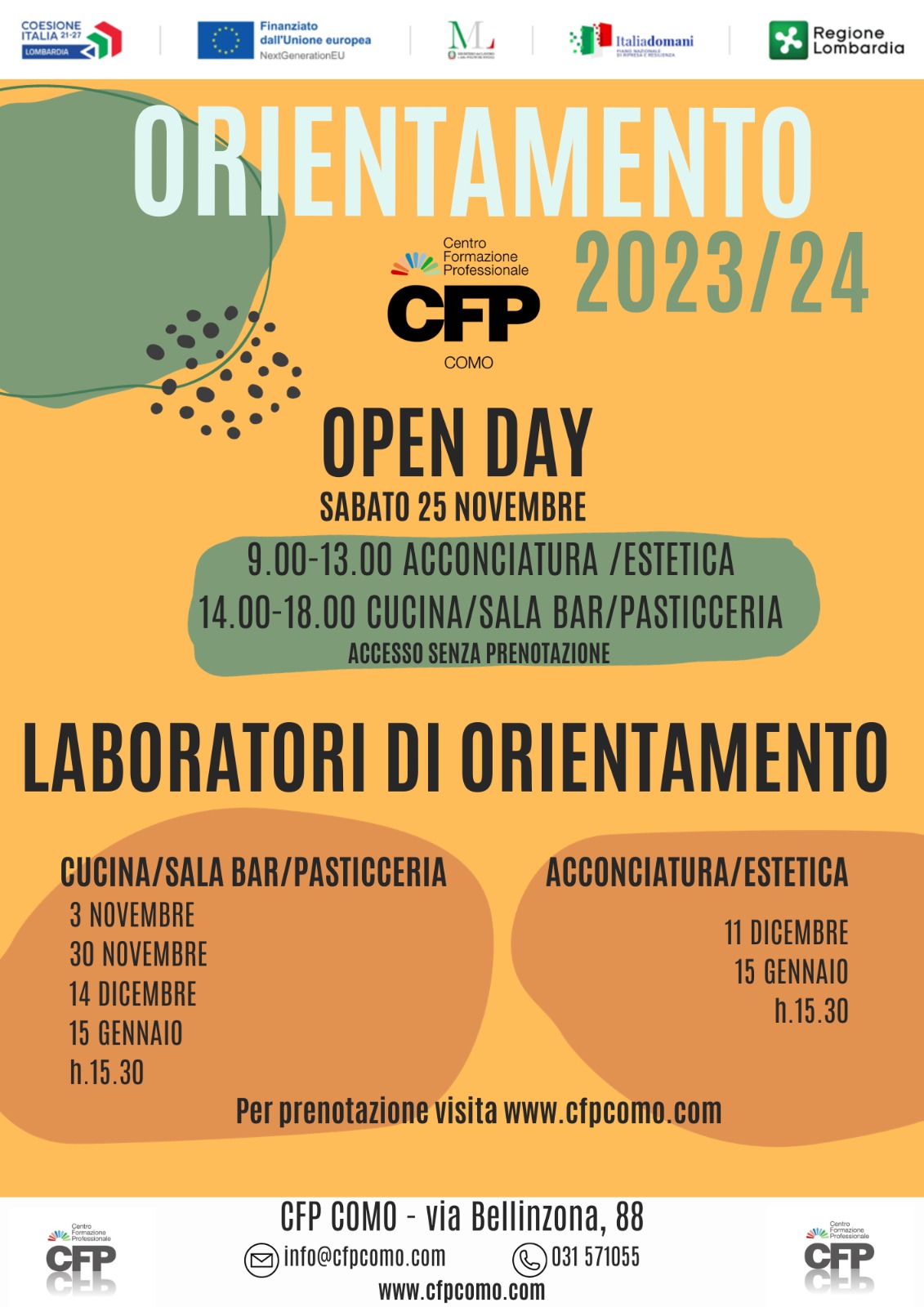 News & Events Breadcrumb Home News & Events News & Eventi Content type - Any - Evento News 28/11/2024 OPEN DAY E ORIENTAMENTO 2024/25 Di seguito le iniziative di orientamento rivolte a famiglie e Allievi della scuola secondaria di primo grado.VI ASPETTIAMO NUMEROSI!OPEN DAY … 06/11/2024 GRANDI CHEF AL CFP: EDIZIONE primavera 2025 Pubblichiamo la Brochure "GRANDI CHEF AL CFP edizione primavera 2025"Esperienze uniche con i maestri della cucina del territorio e importanti… 05/11/2024 ERASMUS+ 2024/2025 - ELENCO DEGLI AMMESSI ALLE MOBILITA' BREVI Viene pubblicato in allegato l’elenco dei candidati ammessi a partecipare alle mobilità Erasmus+ per allievi previste per il periodo 24 marzo 2025 al… 29/10/2024 CRITERI DI SELEZIONE DESTINATARI DOTE 24/25 E MODALITA' ORGANIZZAZIONE DEL SERVIZIO DI SOSTEGNO 25-26 In allegato le seguenti documentazioni:Criteri di selezione dei destinatari delle doti AF 2024-25Modalità di organizzazione del servizio di sostegno… 12/09/2024 ERASMUS+ 2024/2025: AVVISO ALLIEVI CLASSE QUARTE Si pubblica in allegato l'avviso per la partecipazione alle mobilità Erasmus+ rivolto agli allievi di tutte le classi quarte. Le domande di… 10/09/2024 AVVISO IMPORTANTE Buongiorno,Si comunica che i telefoni del CFP sono momentaneamente fuori uso a causa di problemi tecnici che coinvolgono tutto il quartiere di Monte… 02/08/2024 CHIUSURA ESTIVA Si informano i gentili utenti che il CFP rimarrà chiuso dal 3 al 25 agosto. Distinti Saluti La Direzione 29/07/2024 ERASMUS+ DIPLOMATI 2024/2025: ESITI DELLE SELEZIONI Viene pubblicata in allegato la Graduatoria dei candidati AMMESSI per le mobilità di lungo periodo realizzabili grazie ai progetti… 19/07/2024 AVVIO ANNO FORMATIVO 2024/2025 Si allega comunicazione avvio anno formativo 2024/2025. 02/07/2024 VINCITORI CONCORSO LETTERARIO "GIOVANI TALENTI AL CFP" II EDIZIONE SI PUBBLICANO DI SEGUITO I RISULTATI DEL CONCORSO LETTERARIO "GIOVANI TALENTI AL CFP" II EDIZIONEPremesso che:- sono stati presentati 22 racconti-… 12/06/2024 ERASMUS+ 2024/205: AVVISO PER LE MOBILITA' DI LUNGO PERIODO Si pubblica in allegato l'Avviso relativo alle mobilità di lungo periodo per l'anno formativo 2024/2025 rivolto ai Diplomati di Quarto anno e dei… 12/04/2024 CRITERI DI PRECEDENZA IV ANNUALITA’ A.F. 24-25 Con la presente si pubblicano “CRITERI PRECEDENZA IV ANNUALITA’ A.F. 24-25” 01/03/2024 SECONDA EDIZIONE CONCORSO LETTERARIO “GIOVANI TALENTI AL CFP” PREMESSA“3001: ODISSEA AL CFP”. È indetta la seconda edizione del Concorso Letterario “Giovani Talenti al Cfp”, che prevede l’apertura di … 24/11/2023 CRITERI DI PRECEDENZA Si pubblicano qui in allegato CRITERI DI PRECEDENZA A.F. 2024/2025 16/11/2023 COMUNICAZIONE IMPORTANTE ALLE FAMIGLIE Con la presente si comunica che domani 17 novembre 2023 causa sciopero potrebbero verificarsi disagi nell'erogazione dell'attività formativa.f.to La… 07/11/2023 OPEN DAY E ORIENTAMENTO 2023/24 ORIENTAMENTO 23/24Di seguito le iniziative di orientamento rivolte a famiglie e allievi della scuola secondaria di primo grado.VI ASPETTIAMO NUMEROSI… 06/11/2023 ERASMUS ALLIEVI: ELENCO DEI CANDIDATI AMMESSI Si pubblica in allegato l'elenco dei candidati ammessi alla partecipazione alle mobilità di breve periodo. Gli allievi ammessi sono invitati a… 16/10/2023 ERASMUS: CALENDARIO COLLOQUI DI SELEZIONE ALLIEVI QUARTI ANNI Si pubblicano in allegato i calendari dei colloqui di selezione per gli allievi per la partecipazione alle mobilità Erasmus+ nell'anno formativo 2023… 13/10/2023 CRITERI DI SELEZIONE DEI DESTINATARI DOTE 23/24 In allegato comunicazione in merito a "CRITERI DI SELEZIONE DEI DESTINATARI DOTE"La Direzione 22/09/2023 AVVISO ERASMUS+ ALLIEVI 2023/2024 Si pubblica in allegato l'Avviso per le mobilità Erasmus+ degli allievi di quarte annualità per l'anno formativo 2023/2024. Le candidature… Load More