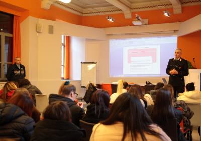 News & Eventi Home News & Eventi A LEZIONE CON L’ISPETTORATO DEL LAVORO DI COMO 24/01/2020 A LEZIONE CON L’ISPETTORATO DEL LAVORO DI COMO Martedì 21 gennaio 2020, presso l’Aula Magna del Centro di Formazione, si è tenuto il primo di un ciclo di incontri formativi rivolti agli Allievi delle Quarte Annualità, con interlocutori che, a vario titolo, saranno per loro, futuri lavoratori o imprenditori, importanti punti di riferimento. L’intervento, che si completerà martedì 4 febbraio, è stato realizzato da alcuni rappresentati dell’Ispettorato del Lavoro, il Comandante Maresciallo Vincenzo Tiralongo, il Brigadiere Vincenzo Giudice e l’appuntato Maurizio Davanzo, che hanno presentato l’istituzione, le sue funzioni e finalità, l’attività ispettiva di controllo, focalizzando inoltre l’attenzione sugli aspetti amministrativi di un contratto di assunzione. Di seguito, alcune foto dell’incontro: Torna indietro Condividi Su E-mailFacebookTwitterLinkedIn Gallery