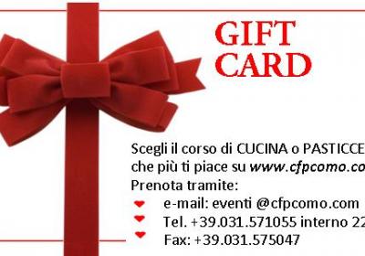 Il Centro di Formazione Professionale ti offre l'opportunità di regalare una GIFT CARD da €.50 spendibile in un corso sia di CUCINA che di PASTICCERIA presso la nostra sede a Como - Via Bellinzona 88.