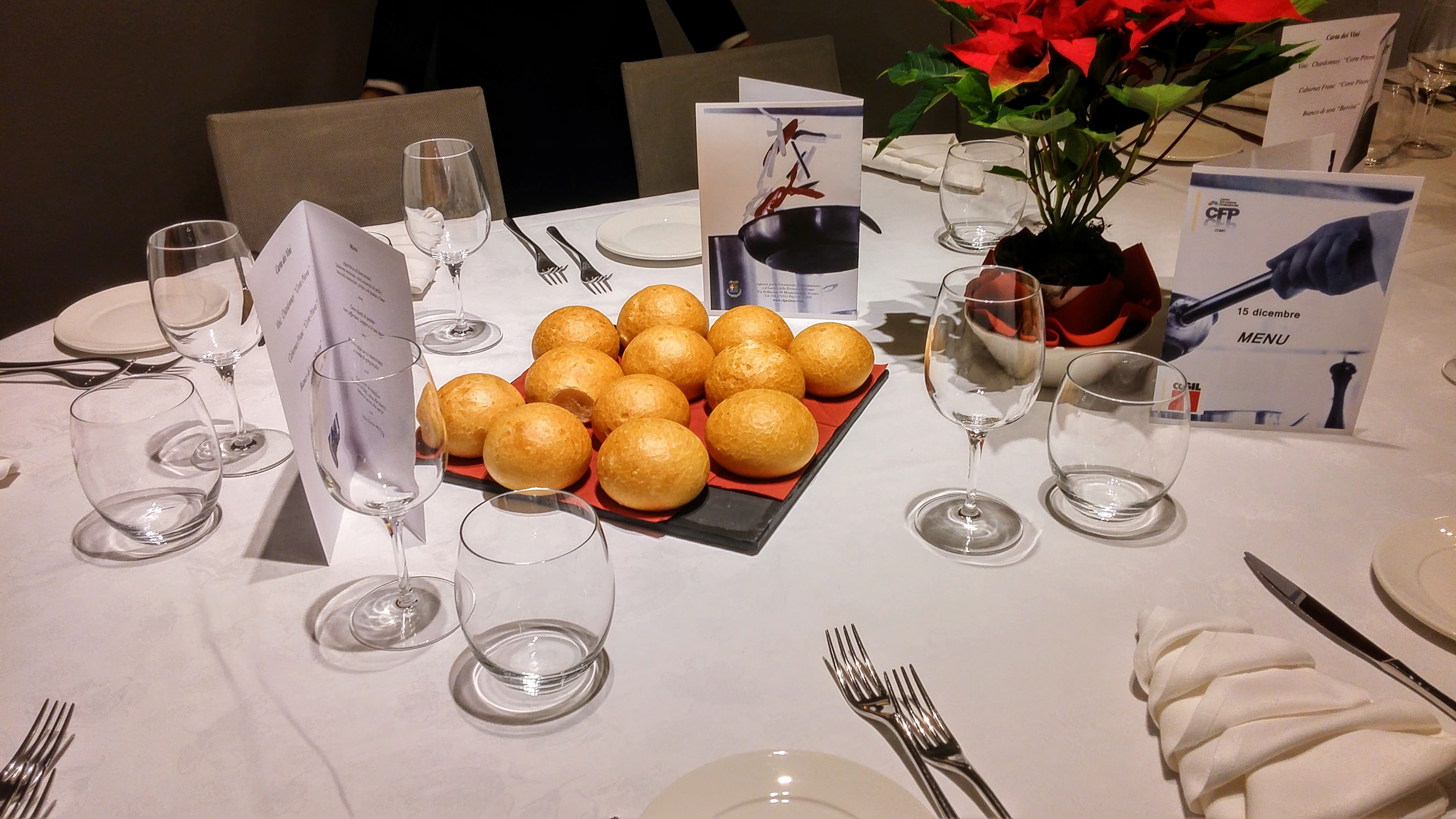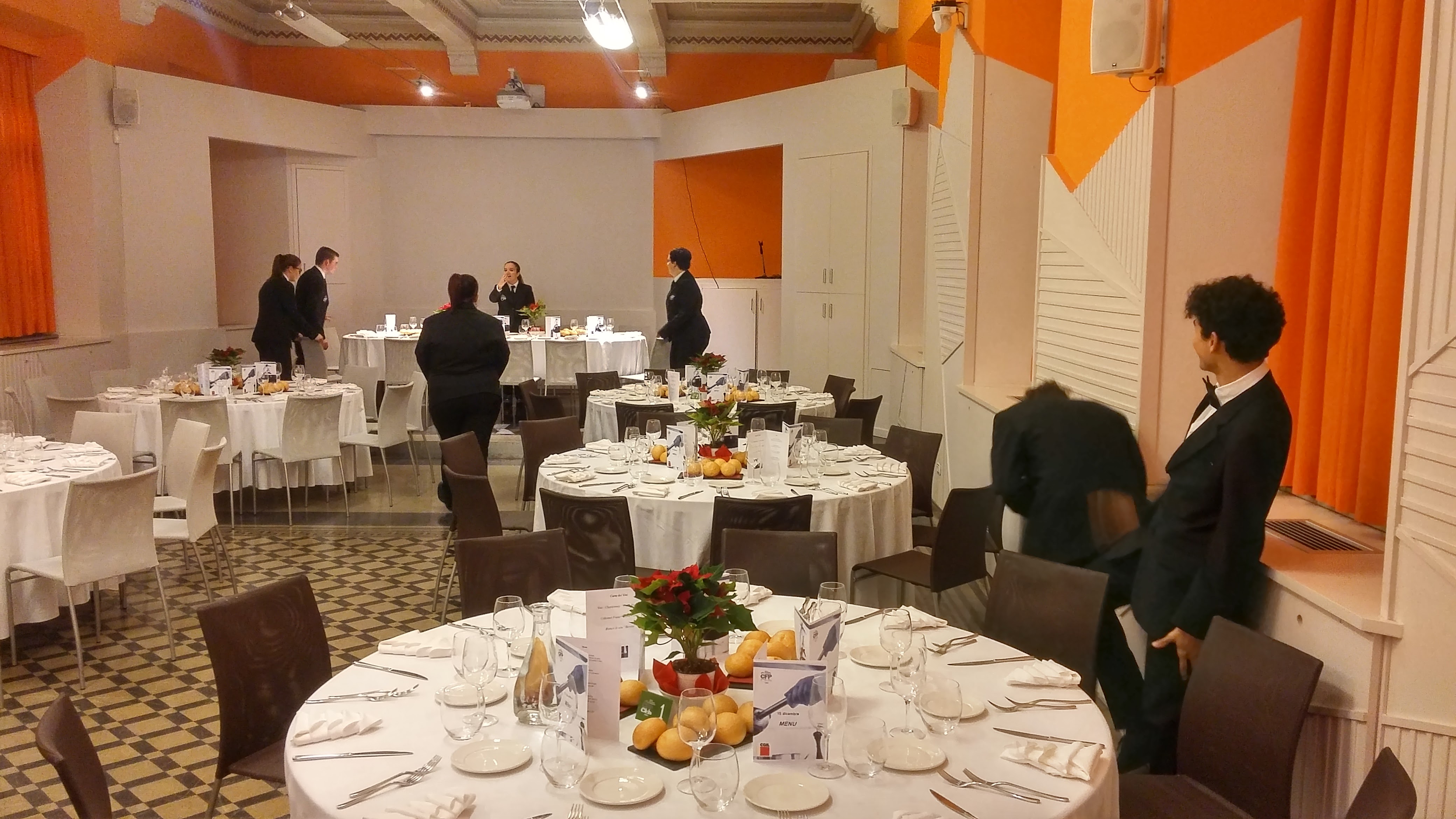 Photo Gallery Home Photo Gallery CENA CGIL e BUFFET VILLA OLMO CENA CGIL e BUFFET VILLA OLMO In occasione dei numerosi Eventi/Manifestazioni che annualmente coinvolgono gli allievi del CFP e che rappresentano occasioni per provare sul campo gli apprendimenti e le competenze tecnico-professionali, nel dicembre le classi quarte di cucina, sala e pasticceria hanno svolto n. 2 eventi importanti destinati agli associati della CGIL di COMO. Il primo è stato un buffet rinforzato presso Villa Olmo, con un variegato e ricco Menu curato dagli Chef e daglin allievi del CFP. Nella stessa settimana, in data 15 dicembre 2016, è stato organizzata una cena curata direttamente dagli Allievi del Settore Alberghiero del CFP per commemorare l'8^ edizione della Riunione degli Stati Generali della CGIL. Qui di seguito alcune foto degli Eventi. Torna indietro Condividi Su E-mailFacebookTwitterLinkedIn Gallery