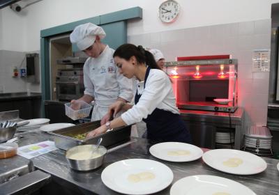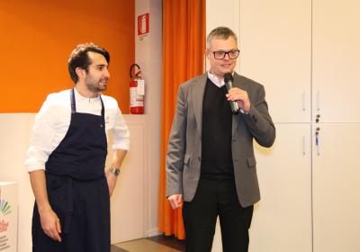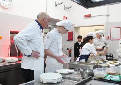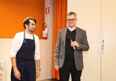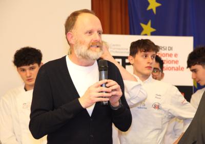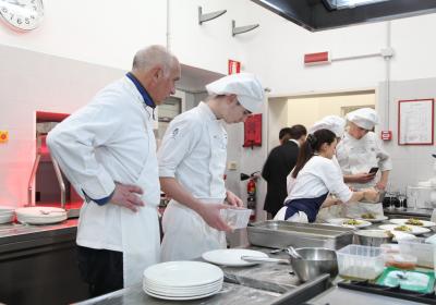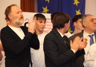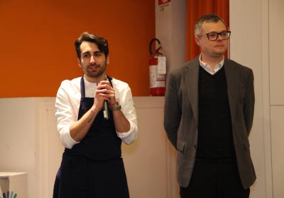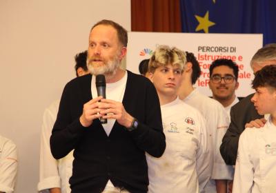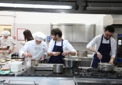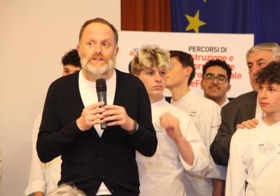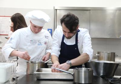 I ragazzi della 3ª A hanno affiancato lo chef nelle preparazioni, lavorando con entusiasmo e motivazione . È stato emozionante vederli osservare i gesti di chi, solo pochi anni fa, sedeva tra i loro stessi banchi e che oggi rappresenta l'eccellenza della ristorazione.