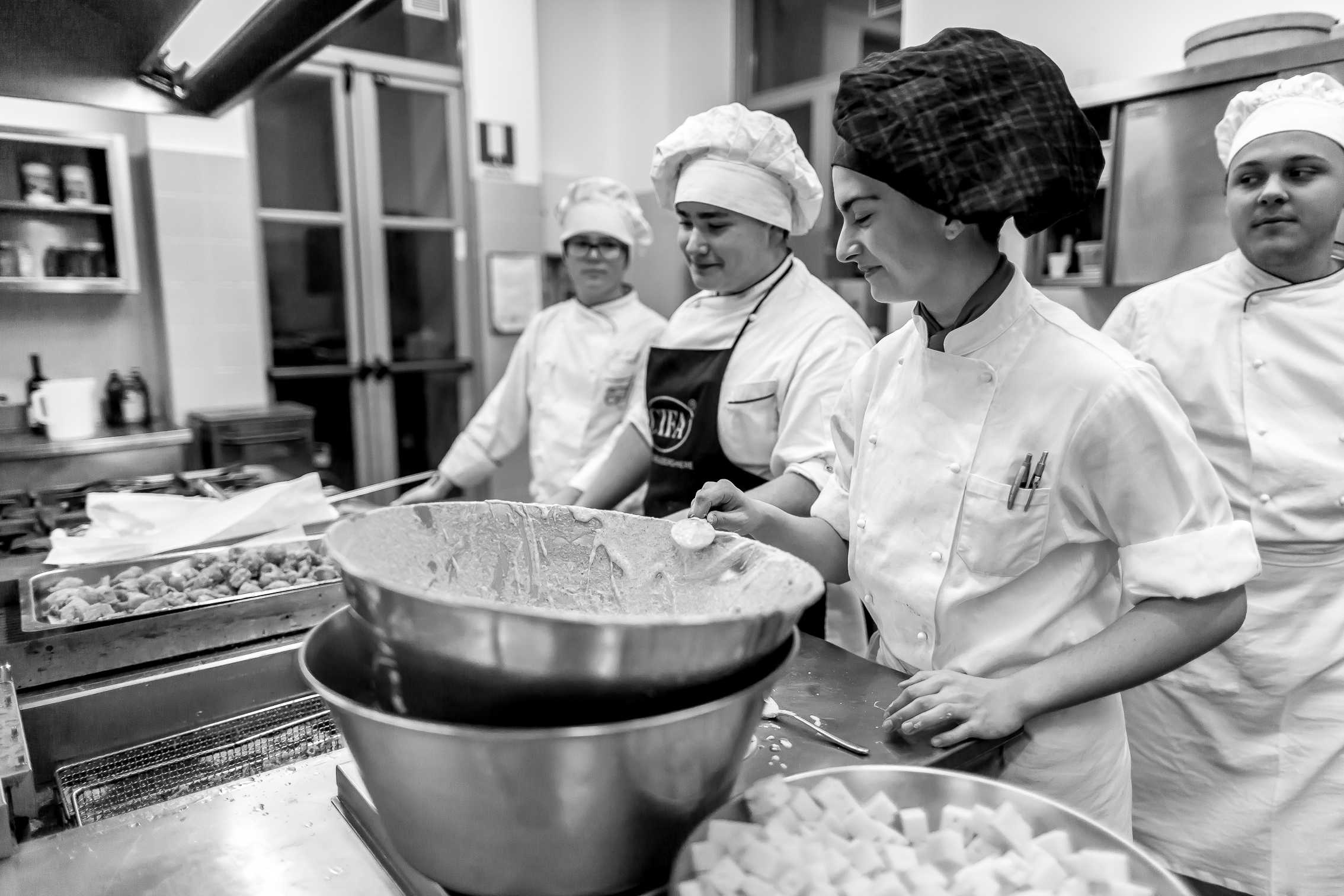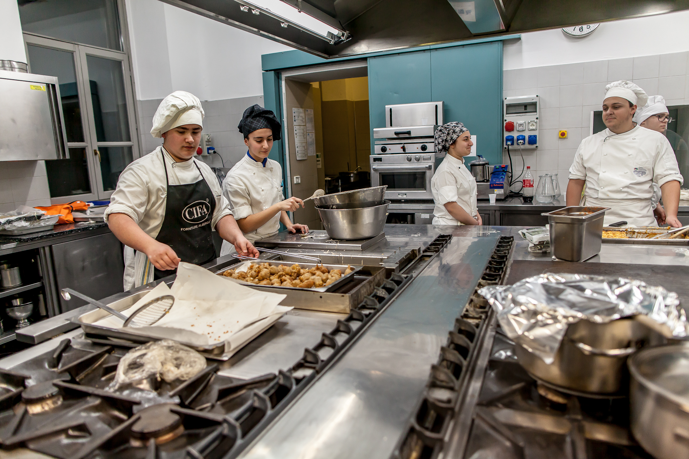 Photo Gallery Home Photo Gallery CENA VALTELLINESE AL CFP CENA VALTELLINESE AL CFP In data 4 marzo 2016, presso il CFP di Como, si è svolta una serata dal tema "La Cucina Valtellinese", curata dallo Chef Buoso Leonardo, docente del CFP. La serata ha visto impegnati gli allievi delle seconde annualità del Settore Ristorativo alberghiero del CFP (Sala Ristorante e Cucina) e gli allievi, coordinati dallo chef e dai formatori/tutor, hanno preparato e servito la cena e il Buffet allestito negli nei nuovi spazi attrezzati del Centro. Dalle ore 20.00 gli ospiti hanno potuto assaporare un ricco menu, partendo da petali di Bresaola della Valtellina serviti con Sciatt, cicorietta e salumi tipici: a seguire il piatto tipico della tradizione Valtellinese rappresentato dai Pizzoccheri, Capriolo con polenta, un assaggio di formaggi tipici con confettura e, per concludere, il dolce tipico (la Bisciola). La cucina valtellinese è ricca di morbidi ed avvolgenti sapori che ne caratterizzano i piatti: semplici e genuini i suoi ingredienti principali come il burro, il formaggio, le patate e il grano saraceno. Al termine della serata sono stati ringraziati gli ospiti - ormai affezionati - presenti per la partecipazione all'evento. Pregiata anche la produzione vinicola della bassa Valtellina, che vede protagonisti Grumello e Sassella dalla cantina "Plozza" che da molti anni cura con passione i vini della tradizione. Qui di seguito alcuni scatti dei momenti più significativi della serata e della premiazione agli allievi e allo Chef che li ha coordinati Torna indietro Condividi Su E-mailFacebookTwitterLinkedIn Gallery