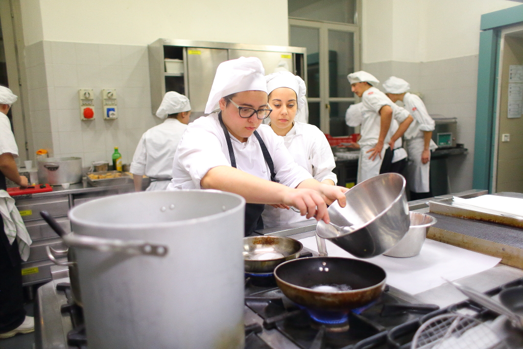 Filo conduttore della serata è stato il trattamento del Pesce Spada, cucinato senza sprechi fornendo agli allievi di cucina una dimostrazione di trattamento completo delle materie prime del territorio del Sud.