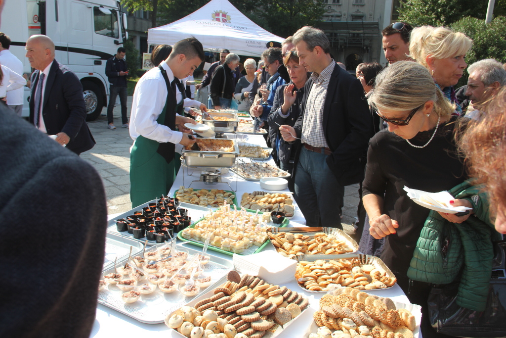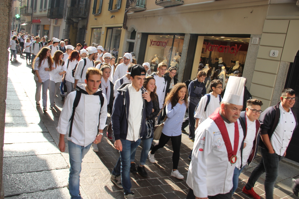 Photo Gallery Home Photo Gallery FESTA DEI CUOCHI 2015 - Prime Annualità FESTA DEI CUOCHI 2015 - Prime Annualità In data 12 ottobre 2015, in occasione della commemorazione di San Caracciolo - Santo Patrono dei Cuochi, gli allievi delle classi 1A e 1B del Settore Ristorativo/Alberghiero - Preparatore Pasti (Aiuto Cuoco) - hanno sfilato per le strade di Como, rigorosamente in divisa, per partecipare alla cerimonia di benedizione da parte di Don Mario Borella e Padre Ottoni della FIC. Gli allievi hanno iniziato la loro passeggiata dal Municipio di Como, dove ad attenderli hanno trovato la Banda del Corpo "La Trionfale" di Orsenigo e parte dei membri del Consiglio Direttivo dell'Associazione Provinciale Cuochi di Como, tra cui il Vicario Francesco Capano e il Vice Presidente Sergio Mauri. Dopo il saluto alle Autorità cittadine, ed in particolare al Sindaco di Como Mario Lucini, gli allievi hanno sfilato fino in piazza Duomo, partecipando con grande emozione alla Santa Messa celebrata dal Don Mario Borella. Prima della manifestazione è stata preparato a Palazzo Cernezzi un Convegno sull'importanza e sulla conoscenza dei prodotti del territorio (Slow-food), sulla Permacultura e sulla professione del cuoco. All'evento di apertura hanno partecipato diversi chef di grandi realtà presenti sul territorio, assieme a quelli dell'Associazione Provinciale Cuochi di Como. Al termine della manifestazione un gruppo di allievi di Sala Bar, in collaborazione con la brigata di Cucina, ha predisposto un ricco Buffet preparato per gli ospiti della manifestazione al Teatro Sociale di Como. Qui di seguito alcune immagini dell'evento Torna indietro Condividi Su E-mailFacebookTwitterLinkedIn Gallery