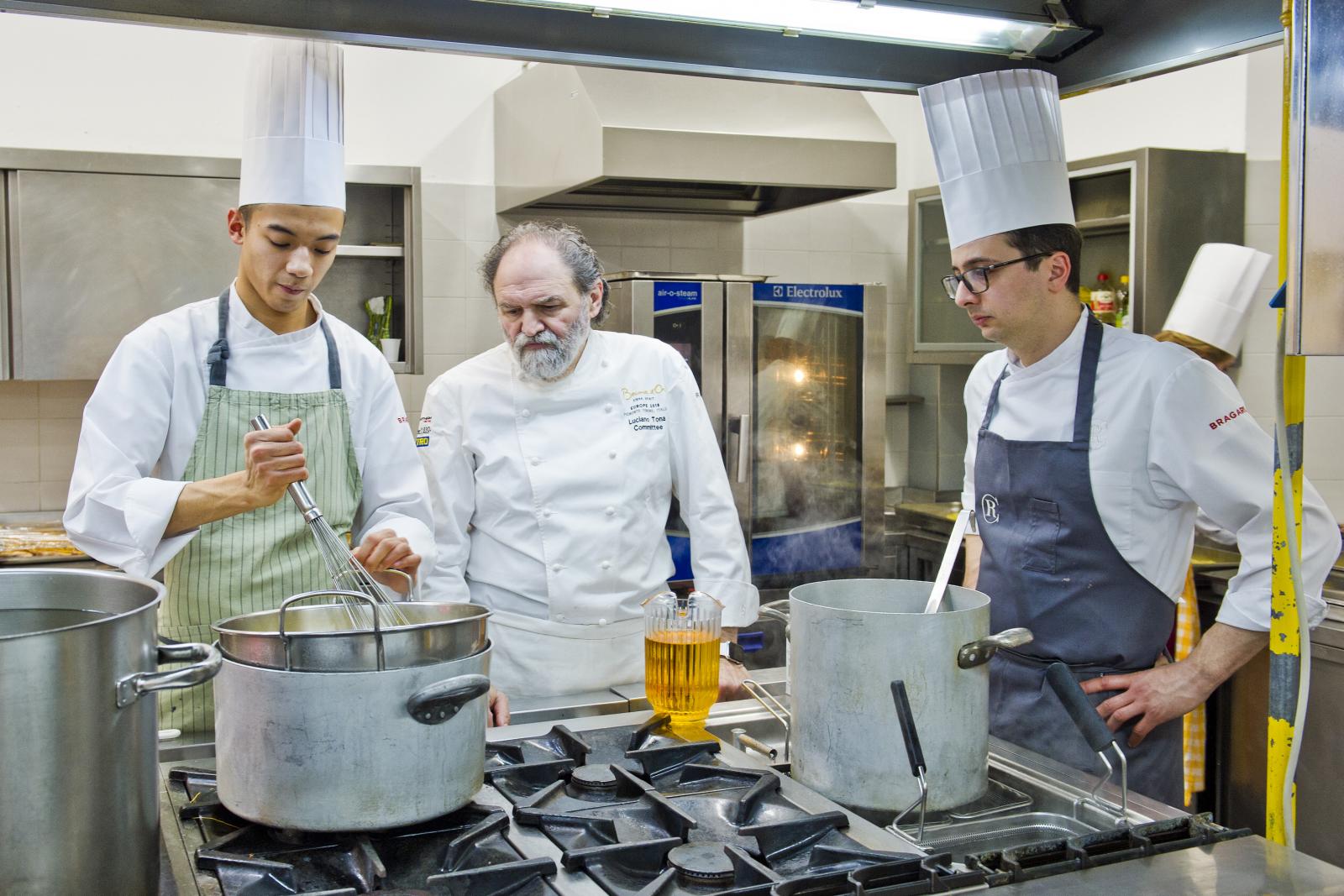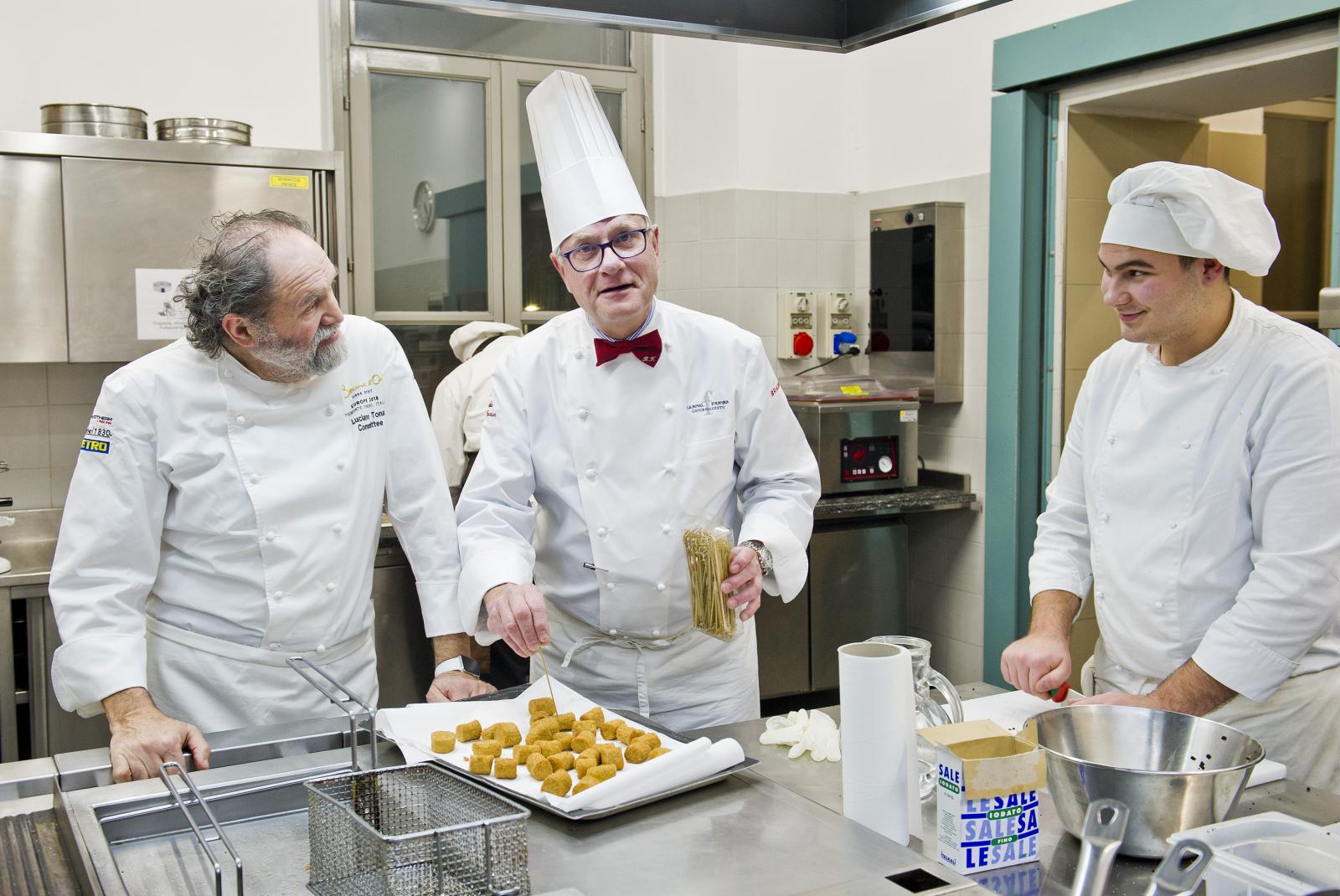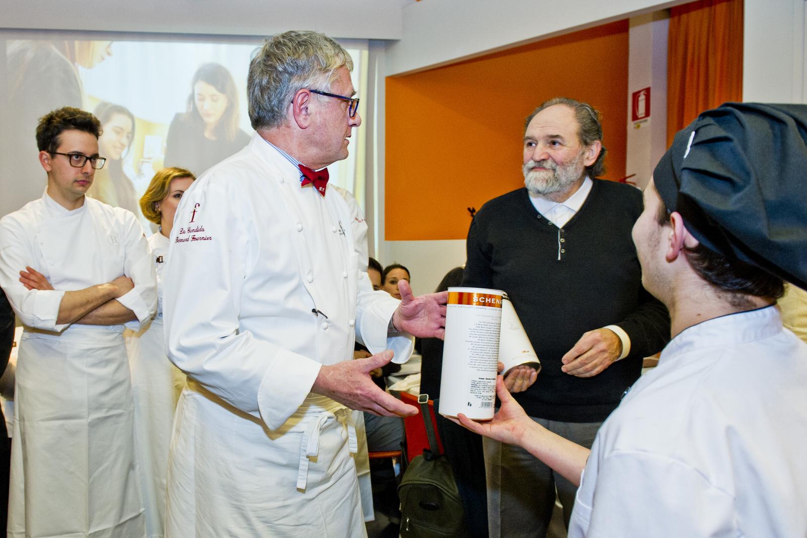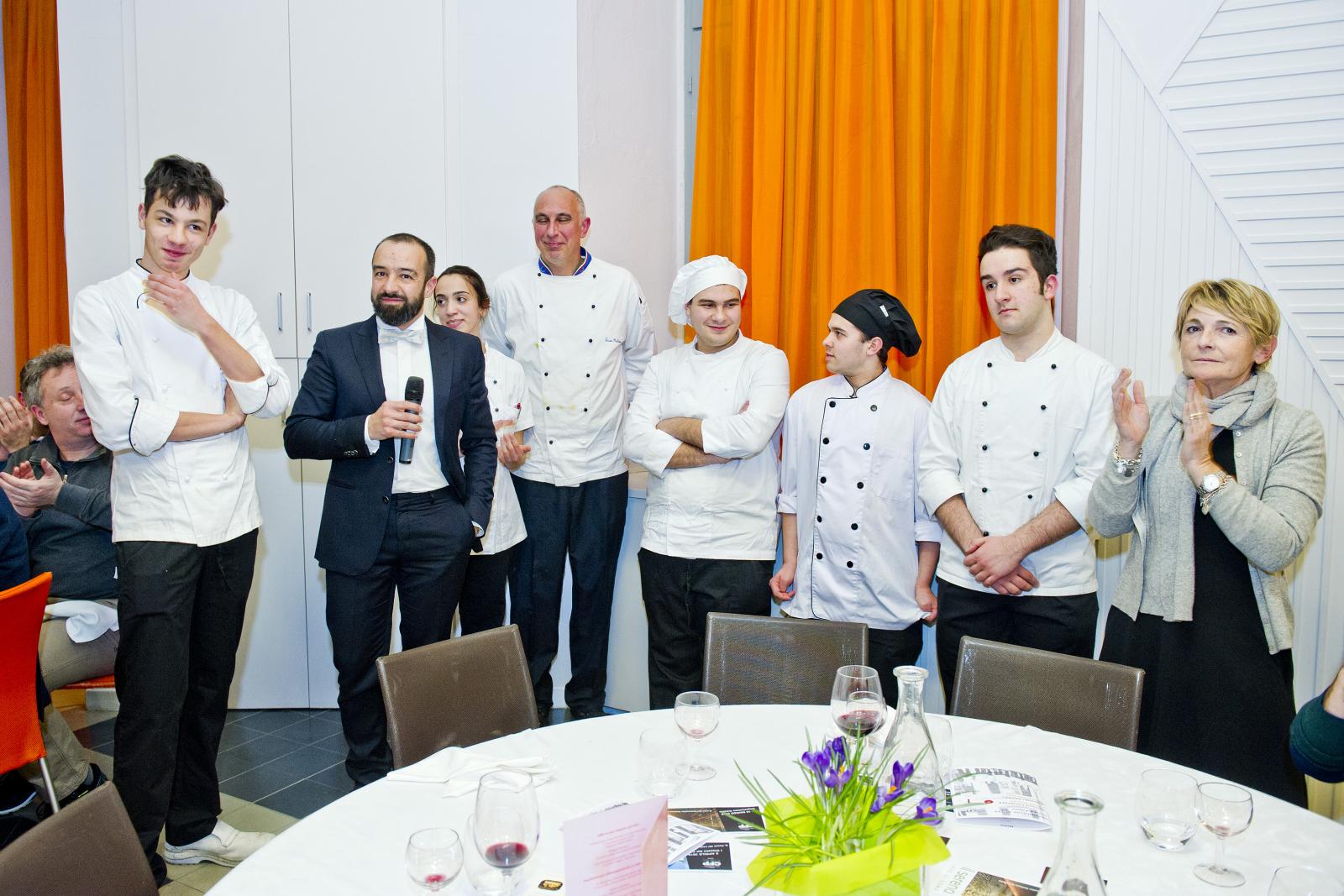 Photo Gallery Home Photo Gallery GRANDI CHEF AL CFP - BERNARD FOURNIER ed EDOARDO SAVINO (CENA A 4 MANI) GRANDI CHEF AL CFP - BERNARD FOURNIER ed EDOARDO SAVINO (CENA A 4 MANI) Importante appuntamento per le Serate dei grandi chef al Centro di Formazione Professionale della Provincia di Como. Lunedì 11 febbraio ospiti d’onore Bernard Fournier, chef patron dello stellato “Da Candida” di Campione d’Italia ed Edoardo Savino, executive chef del Ristorante "Conte Rossini - La Moderna Trattoria Italiana", nuovo ristorante dell’ Hotel Melià di Campione, la cui concezione è stata guidata proprio da Fournier in collaborazione con Luciano Tona, direttore del Bocuse d’Or Italia. La cucina di Tona ha preso spunto dalle collaborazioni con Gualtiero Marchesi per poi orientarsi verso uno stile polimorfico. Dopo essere stato Direttore di Alma, la celebre scuola internazionale di cucina italiana di Colorno, dal 2016 è direttore di Accademia Bocuse d’Or Italia, presieduta da Enrico Crippa, celebre ex allievo del CFP, chef del tre volte stellato Ristorante “Piazza duomo” di Alba. Bernard Fournier, francese di nascita e italiano per amore, con la moglie Adriana Berti ha gestito l’Orso Grigio a Trento, dove ha iniziato a diffondere la cultura e la conoscenza del Foie Gras. Nel 1992 ha acquisito il Ristorante Da Candida a Campione d’Italia che è stato il primo ad ottenere la stella Michelin in provincia di Como. Edoardo Savino è un giovane e talentuoso cuoco, Diplomato ad Alma nel 2017, che ha iniziato a collaborare con Fournier durante il suo tirocinio di formazione. Il sodalizio tra i tre illustri rappresentanti dell’alta cucina si ripropone per la serata al CFP che li vedrà interpreti di un menu molto ricercato. L'articolazione della serata ha visto un ricco e ricercato menu con alta qualità delle materie prime (tartufo nero, foglia d'oro e faraona su tutte), grande lavorazione dei piatti e servizio di alto livello. Protagonisti come sempre anche gli allievi del CFP: le quarte annualità dei corsi di cucina hanno avuto la grande opportunità di affiancare gli chef nella realizzazione dei piatti mentre gli studenti di sala si sono occupati del servizio e dell’accoglienza degli ospiti, con la guida del loro docente e dei professionisti del Ristorante “Da Candida”. Qui di seguito la Gallery dell'evento e la premiazione degli Chef da parte dello staff del CFP (Crediti fotografici Carlo Pozzoni) Torna indietro Condividi Su E-mailFacebookTwitterLinkedIn Gallery