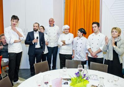 Protagonisti come sempre anche gli allievi del CFP: le quarte annualità dei corsi di cucina hanno avuto la grande opportunità di affiancare gli chef nella realizzazione dei piatti mentre gli studenti di sala si sono  occupati del servizio e dell’accoglienza degli ospiti, con la guida del loro docente e dei professionisti del Ristorante “Da Candida”.
