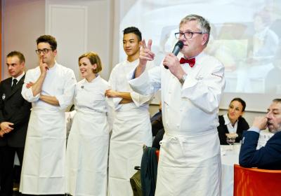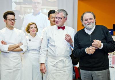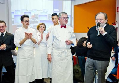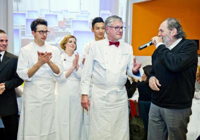 Lunedì 11 febbraio ospiti d’onore Bernard Fournier, chef patron dello stellato “Da Candida” di Campione d’Italia ed Edoardo Savino, executive chef del Ristorante "Conte Rossini - La Moderna Trattoria Italiana", nuovo ristorante dell’ Hotel Melià di Campione, la cui concezione è stata guidata proprio da Fournier in collaborazione con Luciano Tona, direttore del Bocuse d’Or Italia.