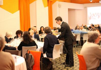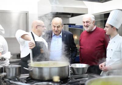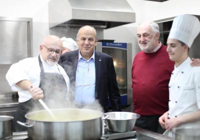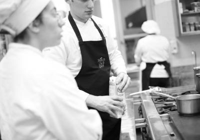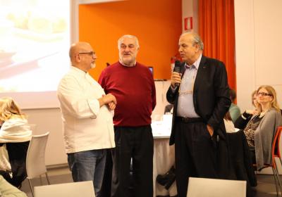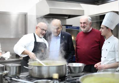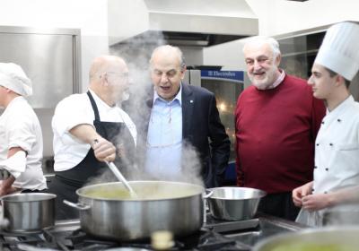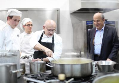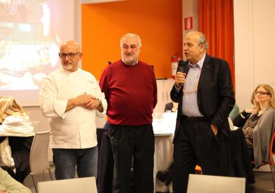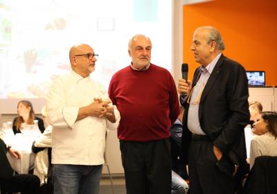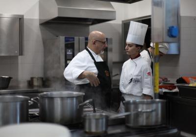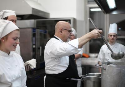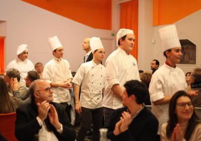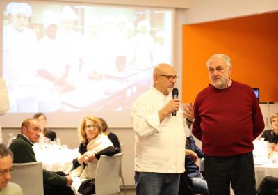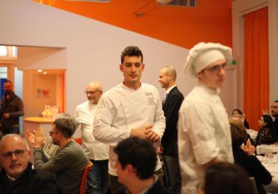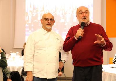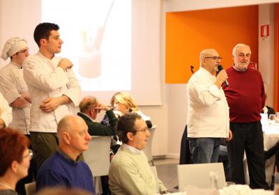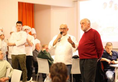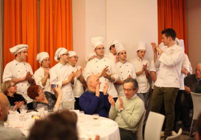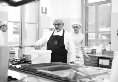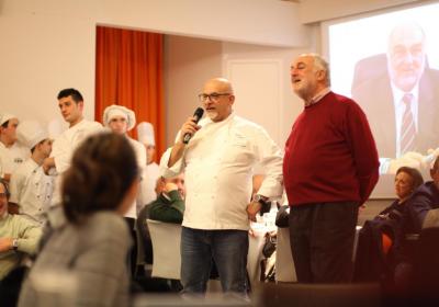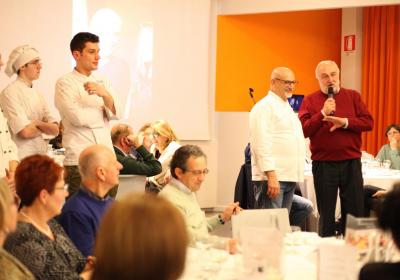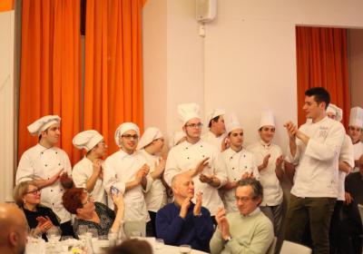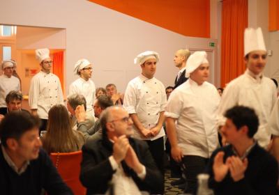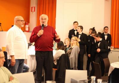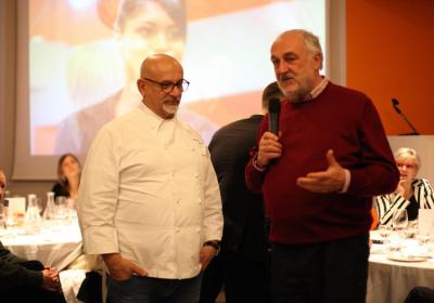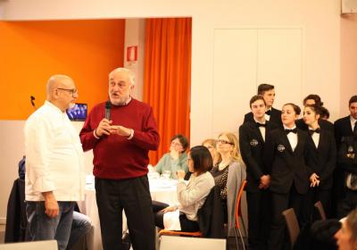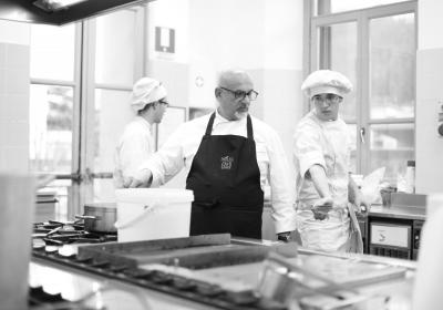 Photo Gallery Home Photo Gallery GRANDI CHEF AL CFP: CLAUDIO SADLER GRANDI CHEF AL CFP: CLAUDIO SADLER Un importante serata ha visto protagonista il CFP di Como in data 8 marzo per l'appuntamento annuale "La Rassegna dei Grandi Chef", con ospite d'eccezione il cuoco Claudio Sadler, stellato Michelin, del "Ristorante Sadler" di Milano. Sadler, uno degli Chef più conosciuti in Italia, propone una cucina creativa e raffinata abbinando una razionale applicazione delle regole ad una esemplare creatività, senza dimenticare un singolare amore per l’innovazione. La stessa innovazione si ritrova anche nelle strumentazioni utilizzate in cucina, sempre all’avanguardia e in continua modernizzazione. La serata propone un menù degustazione – nella piena tradizione della ristorazione top gourmet – indicata per ospiti esigenti e raffinati intenditori. Il Menu, di gran classe, parte da una Tatin di carciofi mozzarella all'olio d'acciuga, prosegue con Fregola sarda allo zafferano ragù di polpo e tocco di peperoncino e - come secondo piatto Filetto di vitello con salsa di funghi trombetta patate nocciolate Per concludere lo Chef propone un Semifreddo caffè bianco cremoso alla fava tonka e gel al rhum. Ciascuna delle quattro portate è accompagnata da un diverso vino in abbinamento, al fine di esaltare i sapori dei singoli piatti. Il Centro di Formazione Professionale di Como – una realtà che opera ormai da più di quaranta anni nella Formazione Professionale (Settore Ristorativo Alberghiero e del Benessere) può contare anche sulla collaborazione dei suoi allievi più meritevoli appartenenti alle Quarte Annualità di Cucina e Sala Ristorante, che hanno lavorato con lo Chef in cucina e con la sala per il Servizio per i numerosi ospiti, che in questa edizione hanno superato le ottanta persone. Gli allievi hanno accompagnato la serata che ha consentito loro di crescere dal punto di vista professionale e personale completando l’ideale acquisizione di avanzate competenze tecnico professionali. Al termine della serata, Direzione e ragazzi del CFP hanno conseganto un libro fotografico di Como: "Ville e giardini del Lago", omaggiando la cena con un piccolo regalo per la professionalità e la disponibilità dimostrata anche nel pomeriggio, quando lo Chef ha tenuto una breve conferenza sul Settore della Ristorazione e sull'Alta Ristorazione nel territorio Lombardo. Sadler è stato inoltre uno dei fondatori dell’Associazione “Jeunes Restaurateurs d’Europe”, e svolge consulenza gastronomica professionale per diverse aziende e per riviste del settore. È stato presidente dei ristoratori milanesi e compare tra i ristoranti nella prestigiosa guida dell’associazione “Le Soste”, di cui dal marzo 2012 è il presidente. Apre il suo primo locale a Pavia nel 1982, quella che fu la “Locanda Vecchia Pavia” e in contemporanea, durante i periodi estivi, gestisce il ristorante Vela Blu a Portisco in Costa Smeralda. Nel 1986 aprirà “Osteria di Porta Cicca” di Ripa di Porta Ticinese a Milano, dove, nel 1991 verrà insignito della sua prima stella Michelin. Contemporaneamente all’attività del ristorante si dedica all’insegnamento e nel 2002 crea “Q.B. centro di cucina enogastronomico” dove insieme ad altri validi insegnanti organizza corsi per professionisti e appassionati. Nel 2008 Sadler approda a Pechino ed in piazza Tien’anmen apre il suo ristorante coadiuvato da due validi collaboratori. Dopo anni di brillante carriera sui Navigli milanesi, Sadler si trasferisce in via Ascanio Sforza 77, a pochi numeri civici di distanza dal precedente locale. Il suo nuovo ristorante ha aperto nel settembre 2007, affiancato da un secondo locale, Chic’n Quick, per una ristorazione più informale e veloce, ma sempre nello stile del grande chef, e che, per le occasioni, accoglie banchetti ed eventi. Qui di seguito gli scatti più belli dell'evento Torna indietro Condividi Su E-mailFacebookTwitterLinkedIn Gallery