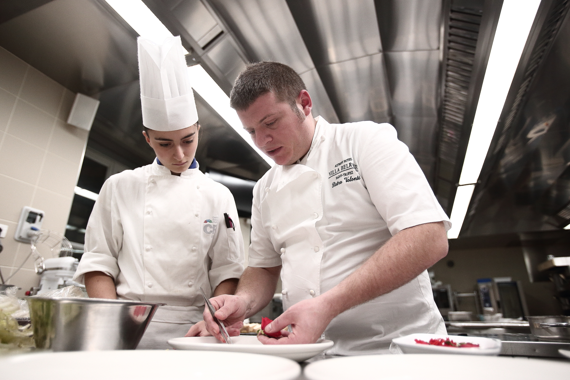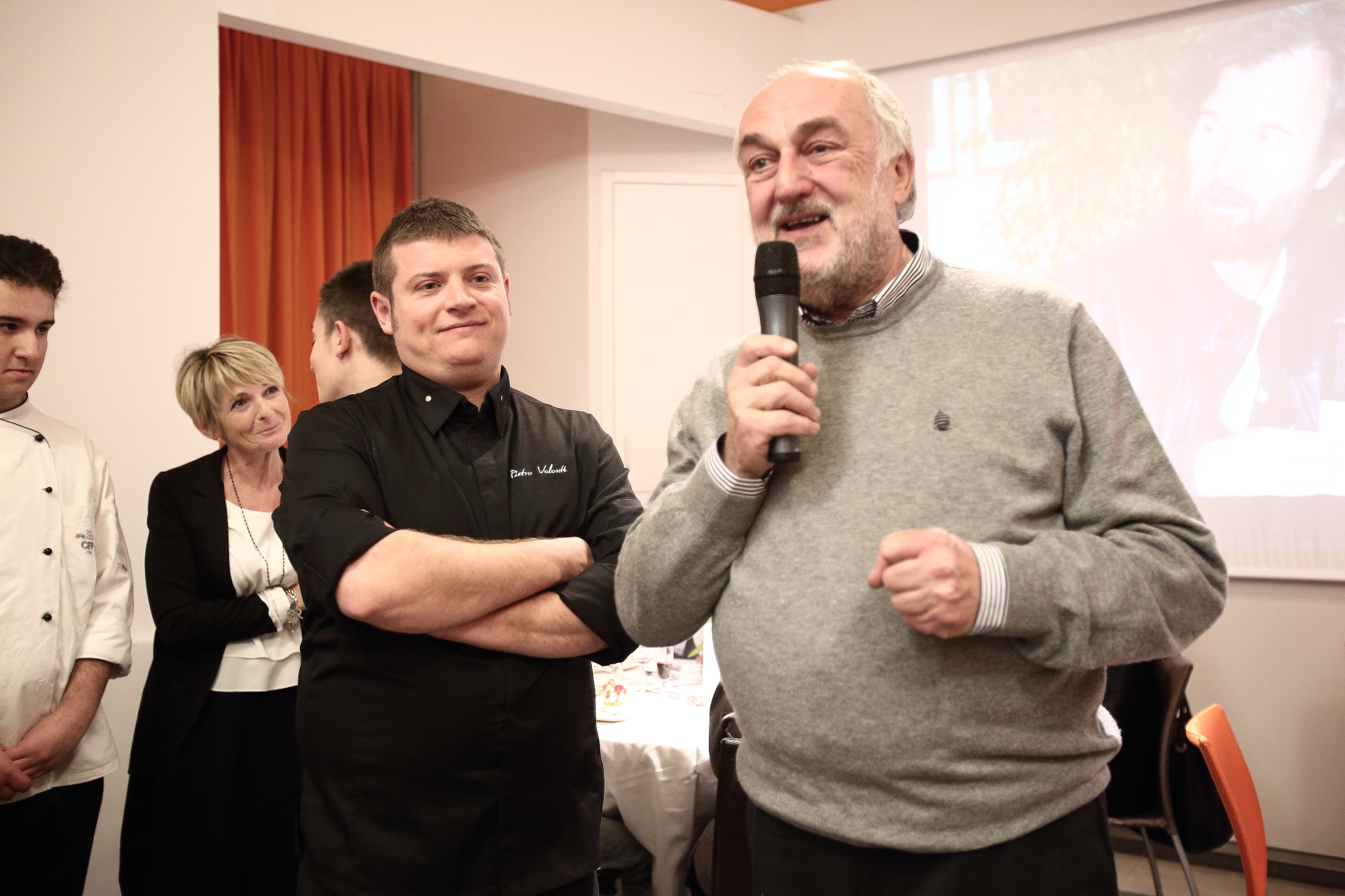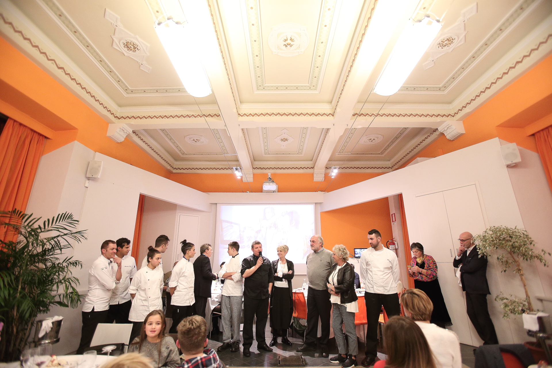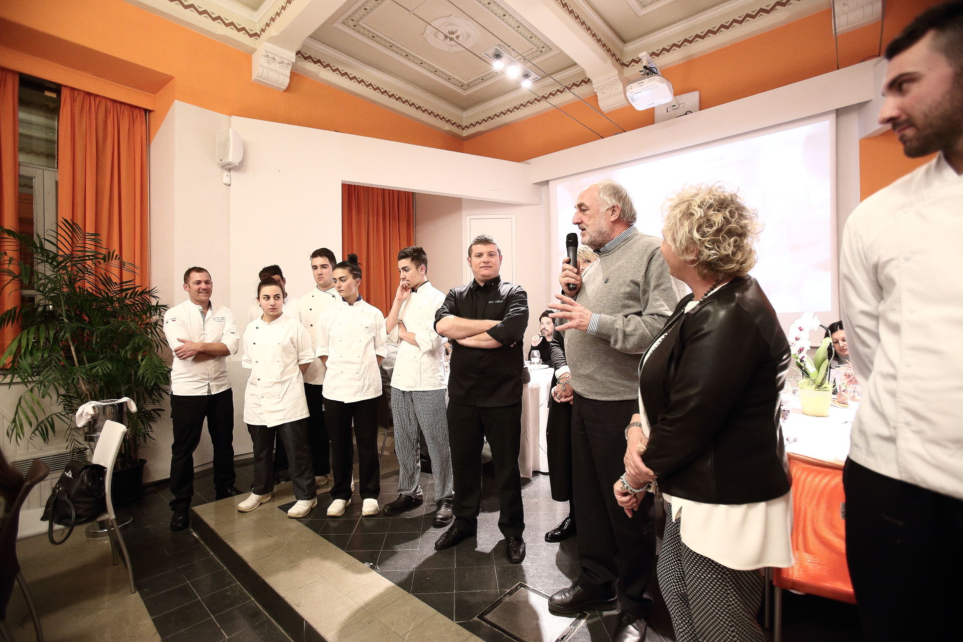 Photo Gallery Home Photo Gallery GRANDI CHEF AL CFP: PIETRO VOLONTÉ GRANDI CHEF AL CFP: PIETRO VOLONTÉ Lo Chef stellato Pietro Volontè (Althoff Hôtel Villa Belrose, Saint-Tropez) è stato protagonista della cena d'Autore svolta in data Sabato 2 dicembre presso la Sala Ristorante del CFP di COMO. Classe ‘85, Pietro Volontè - ex allievo del CFP di Monte Olimpino - è tornato dopo numerose ed importanti esperienze di rango internazionale per cucinare piatti ricercati e all'avanguardia nella scuola che lo ha visto crescere e muovere i primi passi della Sua prestigiosa carriera. Iniziando “Da Candida” a Campione d’Italia (Chef Bernard Fournier), all'Hotel Eden a Roma, al Badrutt’s Palace Hotel in Svizzera. Ha avuto modo di seguire lo Chef Enrico Derflingher nella cornice di Saint Moritz. Passa poi dal Cipriani Restaurant a Londra, al Gordon Ramsay di Londra e poi a quello di Parigi, dove diventa secondo chef. Il suo stile - sobrio ed elegante- è legato a tradizione e semplicità. Oggi ricopre la posizione di chef all‘Althoff Hotel Villa Belrose, lussuoso Relais & Chateaux in Costa Azzurra ed è insignito di una STELLA MICHELIN. Il Centro di Formazione Professionale di Como ha aperto proprio con lo Chef Volontè la "Rassegna dei Grandi Chef Stellati": una carrellata di appuntamenti che vedono protagonisti Chef e piatti di altissimo livello e ricerca: il menù proposto ha visto un "Amouche Bouche" di benvenuto, Salmone alla camomilla con Purè di finocchi, rapa svedese e radicchio trevigiano come antipasto, Risotto alle bietole, lumache e taleggio come primo piatto e Lombo di vitello cotto al burro di salvia, verza stufata, scorzonera, topinambur e salsa Madeira. Interessante il dolce: Monte Bianco, croccante di cioccolato, gelato di castagne e whisky. Lo Chef ha cucinato i piatti del menu con la Brigata delle classi terze di cucina del Centro e coordinando con i docenti di sala e gli allievi delle seconde annualità il servizio. Nello Staff di Pietro per questa serata, anche l'amico e collega Paolo Longoni - cuoco del ristorante "BellaVista" di Veleso (CO), peraltro docente di cucina deli corsi DDIF del CFP. I due Chef hanno condiviso assieme l'esperienza al Restaurant Gordon Ramsey di Londra. Più di 60 ospiti presenti alla Cena hanno gradito il Menu, strutturato con abbinamenti interessanti e materie prime di primissimo livello. Tra gli ospiti anche la Consigliera Regionale Daniela Maroni (Regione Lombardia), presente al tavolo che ha premiato personalemente lo Chef con il Libro del Lago di Como (Pifferi Editore), assieme al Direttore ed al Vice-Direttore del Centro. Grande l'emozione degli allievi e delle allieve impegnate nella serata che ha rappresentato un importante momento didattico e formativo per gli studenti coinvolti. Qui di seguito la PHOTOGALLERY con gli scatti istituzionali e di reportage dell'evento Torna indietro Condividi Su E-mailFacebookTwitterLinkedIn Gallery