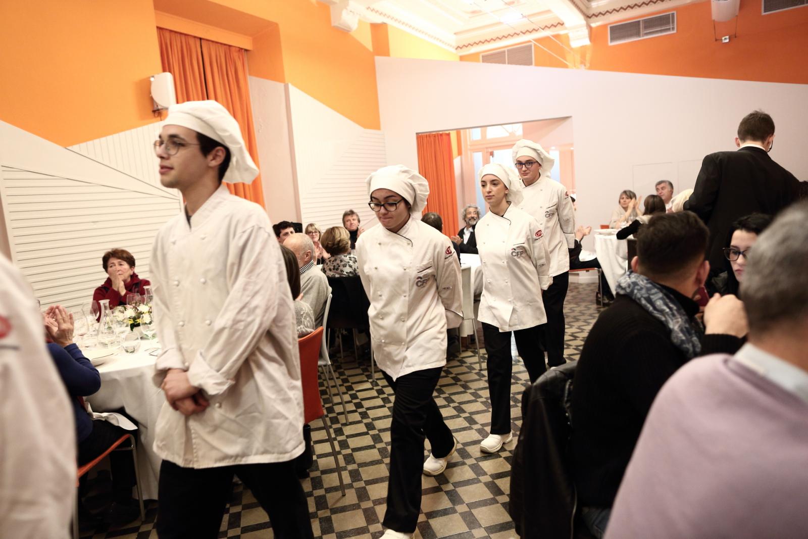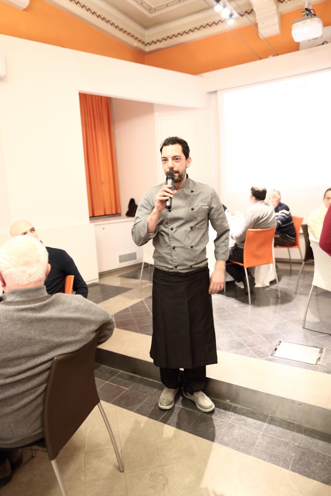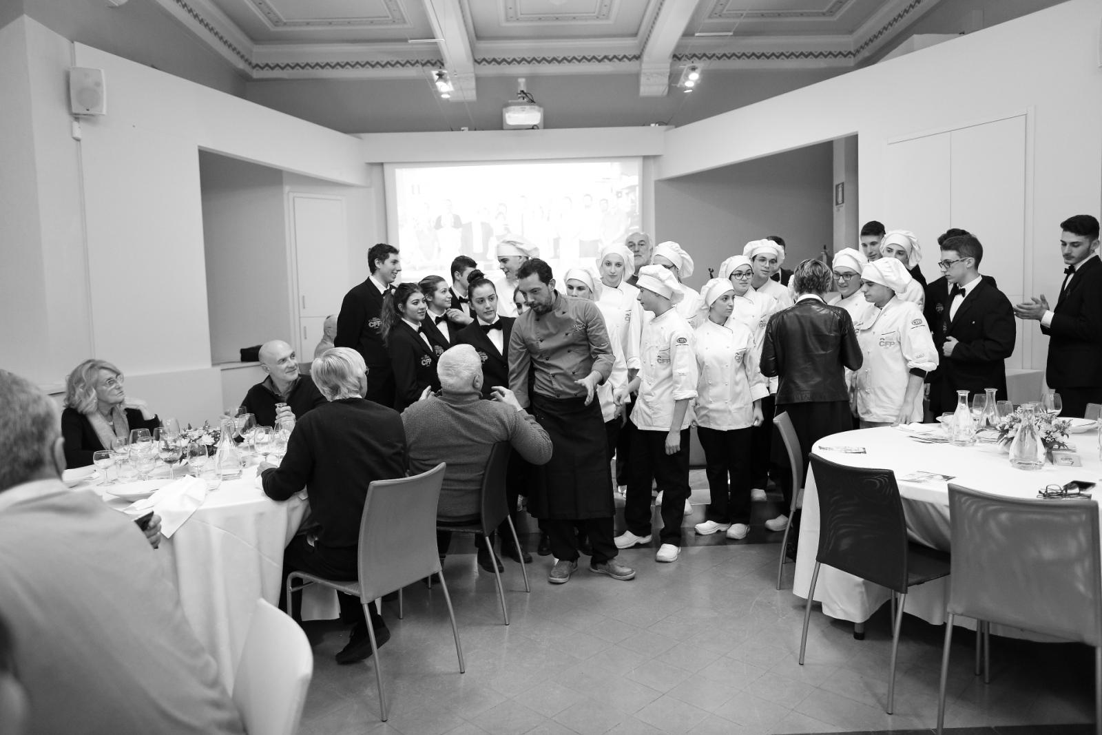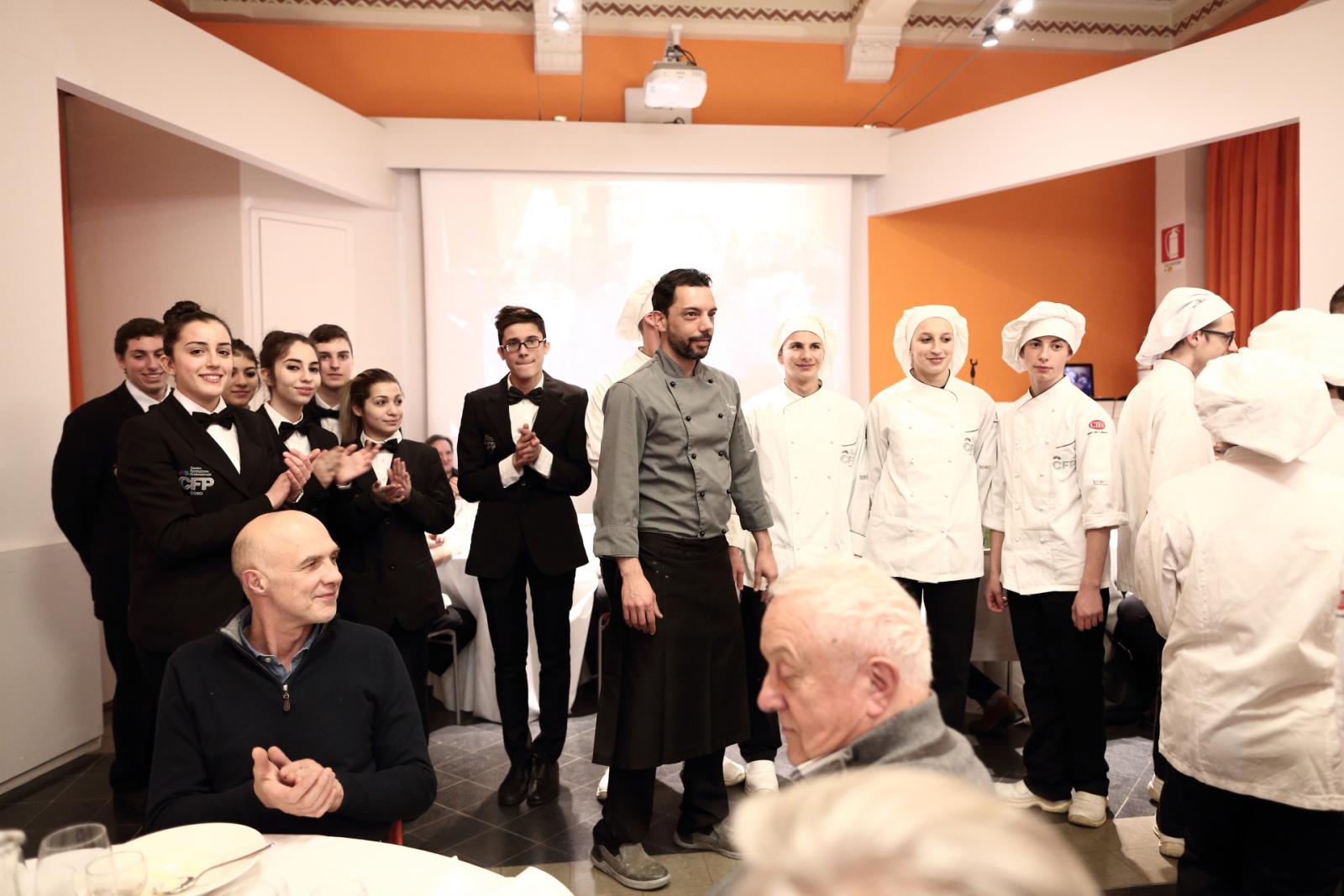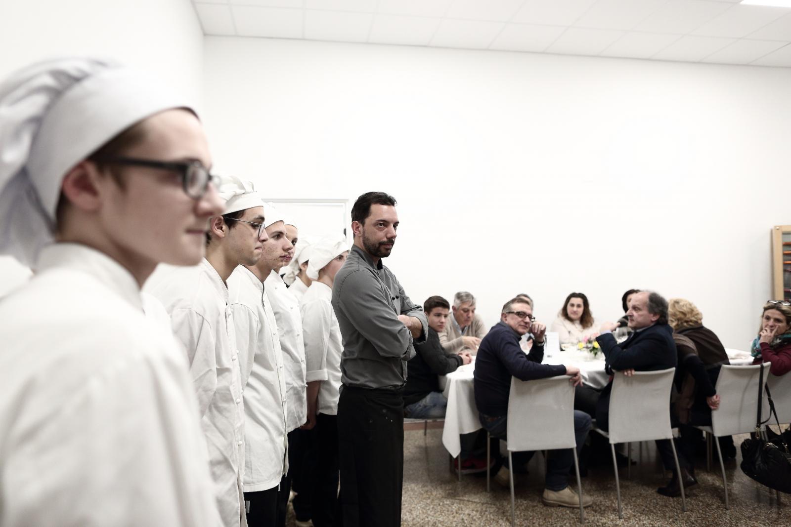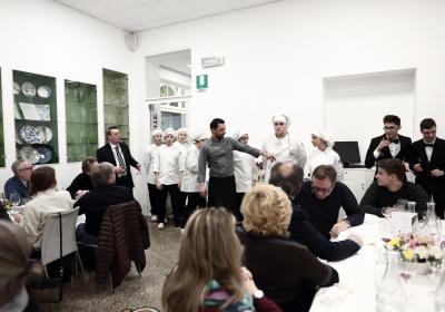 Photo Gallery Home Photo Gallery GRANDI CHEF AL CFP: VINCENZO CAROLA GRANDI CHEF AL CFP: VINCENZO CAROLA Grandi nomi della cucina italiana al CFP di Como. Protagonisti gli studenti dei corsi di Cucina e Sala del Centro di Formazione Professionale che, nelle giornate del 30 e 31 gennaio hanno affiancato lo chef Cilentino Vincenzo Carola, ospite a Como. Il menu 360° di Ricciola racchiude in sè tutto lo spirito e l'anima del SUD Italia, dove lo spreco non è contemplato e la "materia prima" è rispettata, lavorata ed esaltata nella sua essenza. Lo Chef Cilentino, al terzo appuntamento annuale come ospite a Como, è titolare dello storico e rinomato ristorante "Vecchio Saracino" di Agropoli. La famiglia Carola, ormai da quattro generazioni porta avanti la tradizione del pesce di mare in una zona che è patrimonio UNESCO (Vallo di Diano). Piatti semplici ma carichi di gusto che raccontano la cucina cilentina influenzata dalla tradizione saracena. Il percorso di degustazione è iniziato una aperitivo di benvenuto: Polpette di patate, Alici di Menaica e pappacelle, Focaccia al limoncello con patè di fegato di Ricciola. Antipasto a base di Crudo di Ricciola, fagioli di Controne, cumino e limone come, primo piatto con Conchiglie di grano duro, guancia e ventresca di Ricciola, uvetta, pinoli e porri caramellati al Lucano e per finire Trancio di Ricciola, solera di aceto balsamico "1920", olive affumicate e rosmarino. Interessante il dolce: Croccante di amaretti in semifreddo, sciroppo di agrumi e zenzero. La cena è stata accompagnata da Vini del SUD Italia, rispettando il territorio e la tradizione. Gli ospiti, sempre numerosi in questi appuntamenti hanno gradito la Cena e ascoltato con piacere la spiegazione del Menu da parte dello Chef che, al termine della serata, ha ringraziato i commensali e gli allievi che lo hanno aiutato in questo evento. Qui di seguito gli scatti della serata Torna indietro Condividi Su E-mailFacebookTwitterLinkedIn Gallery