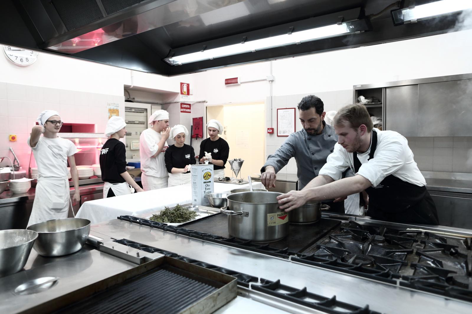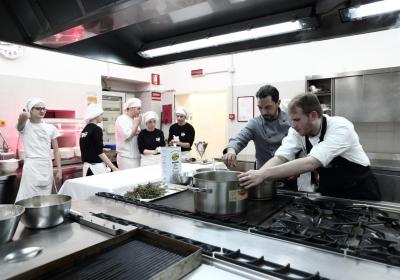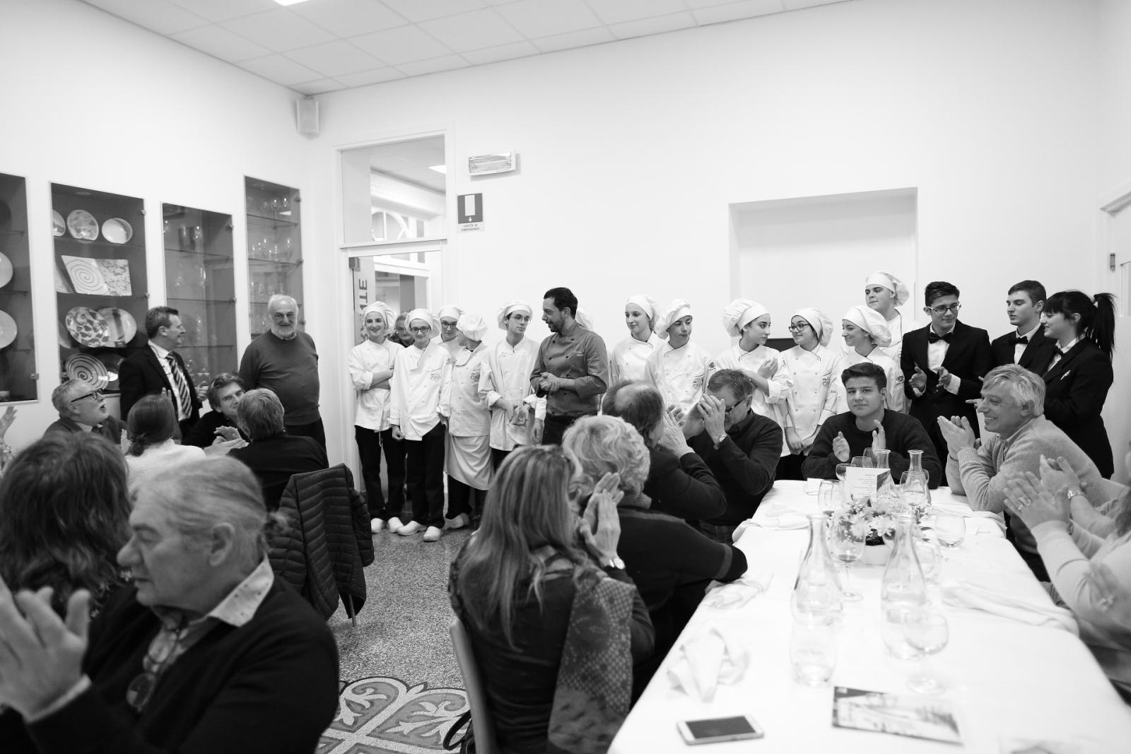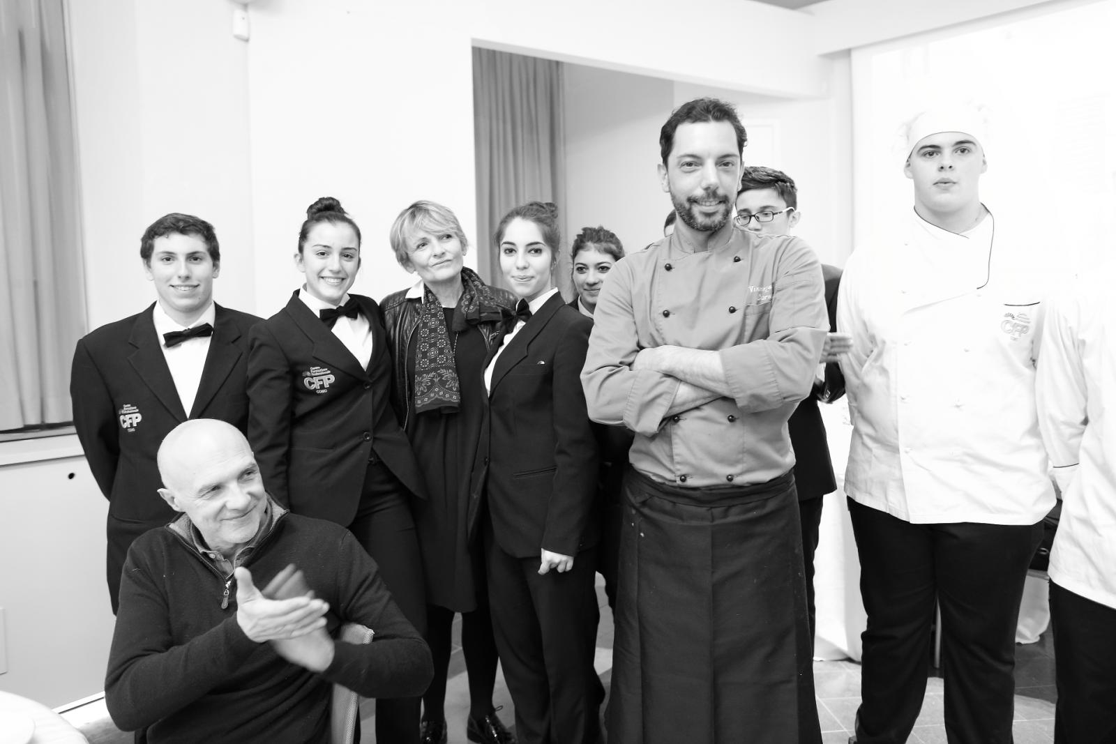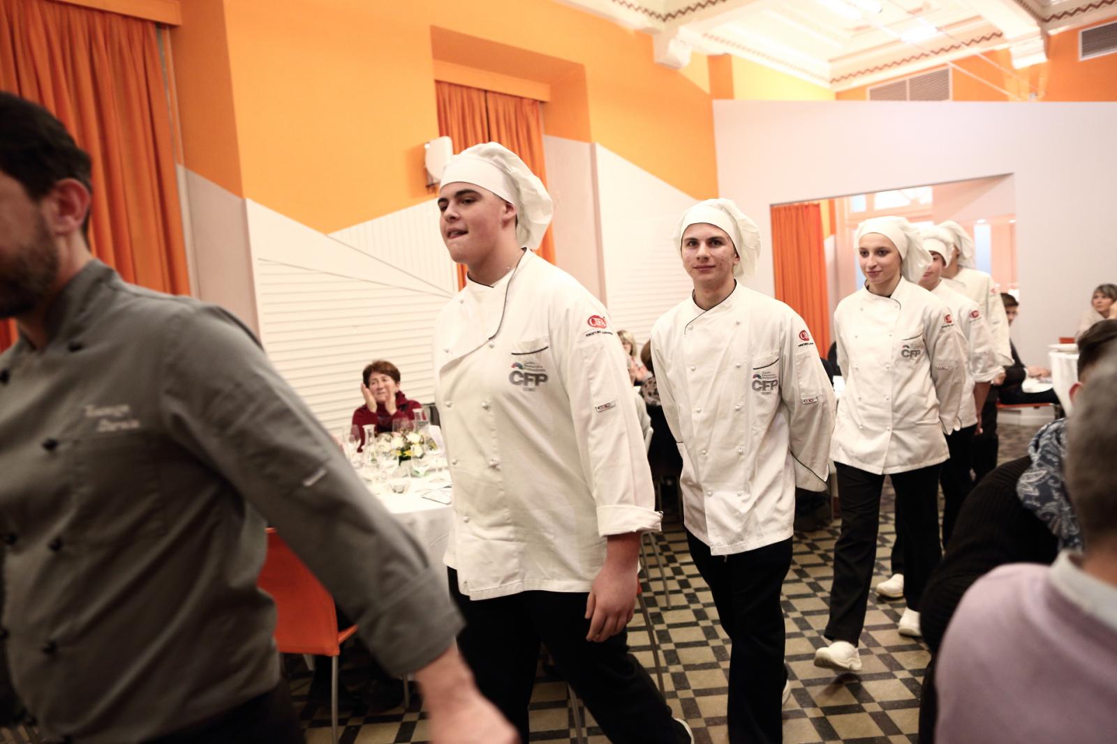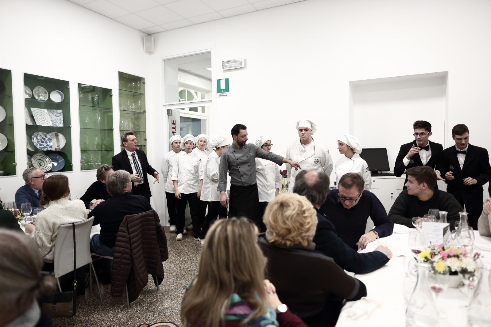Photo Gallery Home Photo Gallery GRANDI CHEF AL CFP: VINCENZO CAROLA GRANDI CHEF AL CFP: VINCENZO CAROLA Grandi nomi della cucina italiana al CFP di Como. Protagonisti gli studenti dei corsi di Cucina e Sala del Centro di Formazione Professionale che, nelle giornate del 30 e 31 gennaio hanno affiancato lo chef Cilentino Vincenzo Carola, ospite a Como. Il menu 360° di Ricciola racchiude in sè tutto lo spirito e l'anima del SUD Italia, dove lo spreco non è contemplato e la "materia prima" è rispettata, lavorata ed esaltata nella sua essenza. Lo Chef Cilentino, al terzo appuntamento annuale come ospite a Como, è titolare dello storico e rinomato ristorante "Vecchio Saracino" di Agropoli. La famiglia Carola, ormai da quattro generazioni porta avanti la tradizione del pesce di mare in una zona che è patrimonio UNESCO (Vallo di Diano). Piatti semplici ma carichi di gusto che raccontano la cucina cilentina influenzata dalla tradizione saracena. Il percorso di degustazione è iniziato una aperitivo di benvenuto: Polpette di patate, Alici di Menaica e pappacelle, Focaccia al limoncello con patè di fegato di Ricciola. Antipasto a base di Crudo di Ricciola, fagioli di Controne, cumino e limone come, primo piatto con Conchiglie di grano duro, guancia e ventresca di Ricciola, uvetta, pinoli e porri caramellati al Lucano e per finire Trancio di Ricciola, solera di aceto balsamico "1920", olive affumicate e rosmarino. Interessante il dolce: Croccante di amaretti in semifreddo, sciroppo di agrumi e zenzero. La cena è stata accompagnata da Vini del SUD Italia, rispettando il territorio e la tradizione. Gli ospiti, sempre numerosi in questi appuntamenti hanno gradito la Cena e ascoltato con piacere la spiegazione del Menu da parte dello Chef che, al termine della serata, ha ringraziato i commensali e gli allievi che lo hanno aiutato in questo evento. Qui di seguito gli scatti della serata Torna indietro Condividi Su E-mailFacebookTwitterLinkedIn Gallery