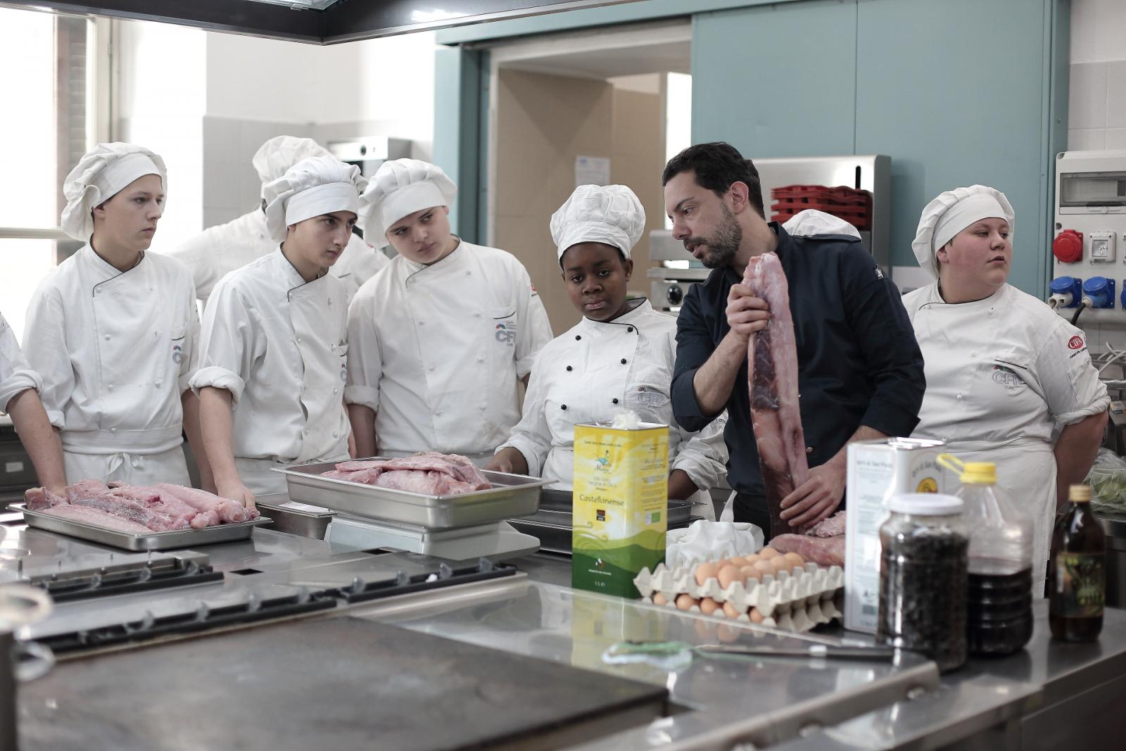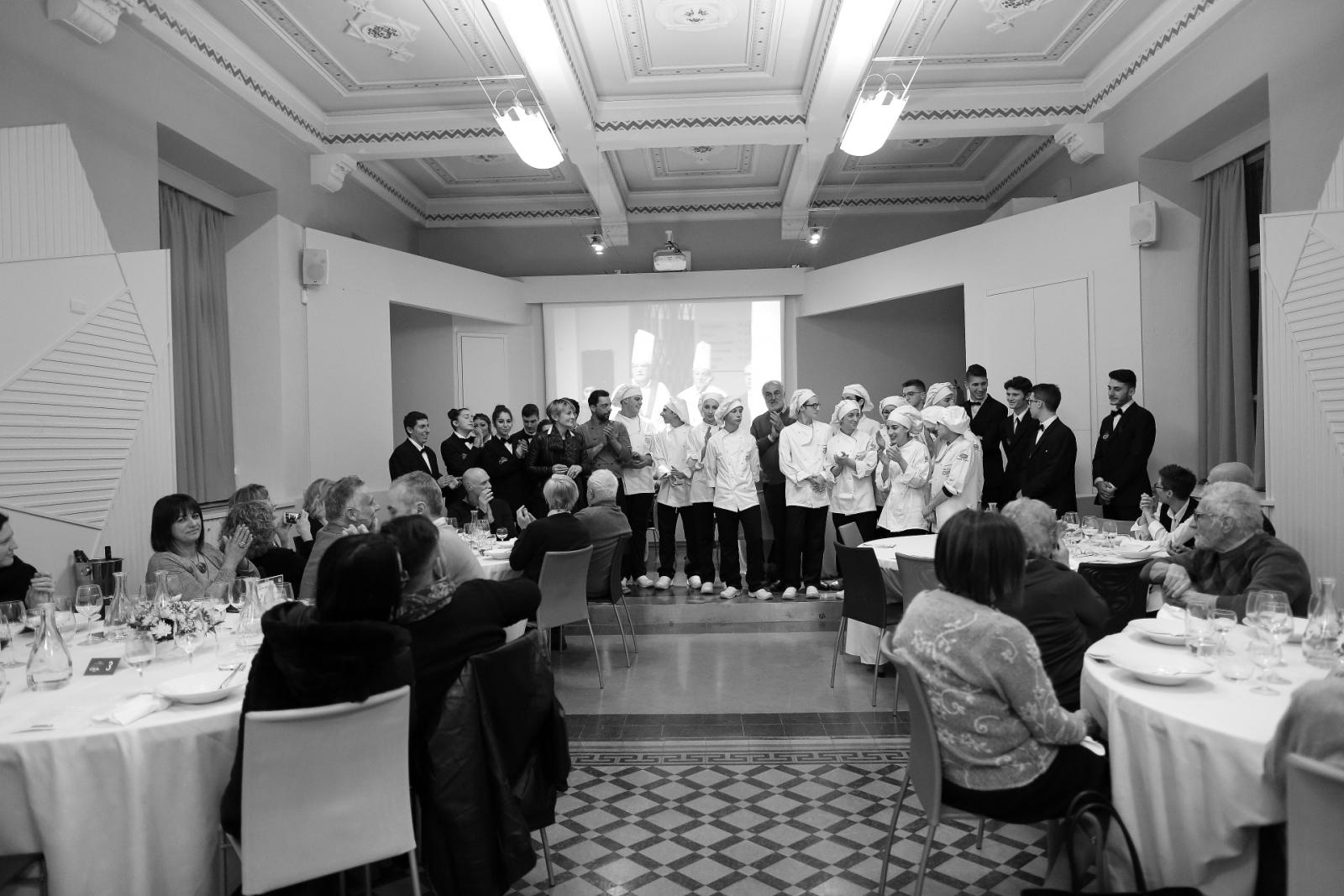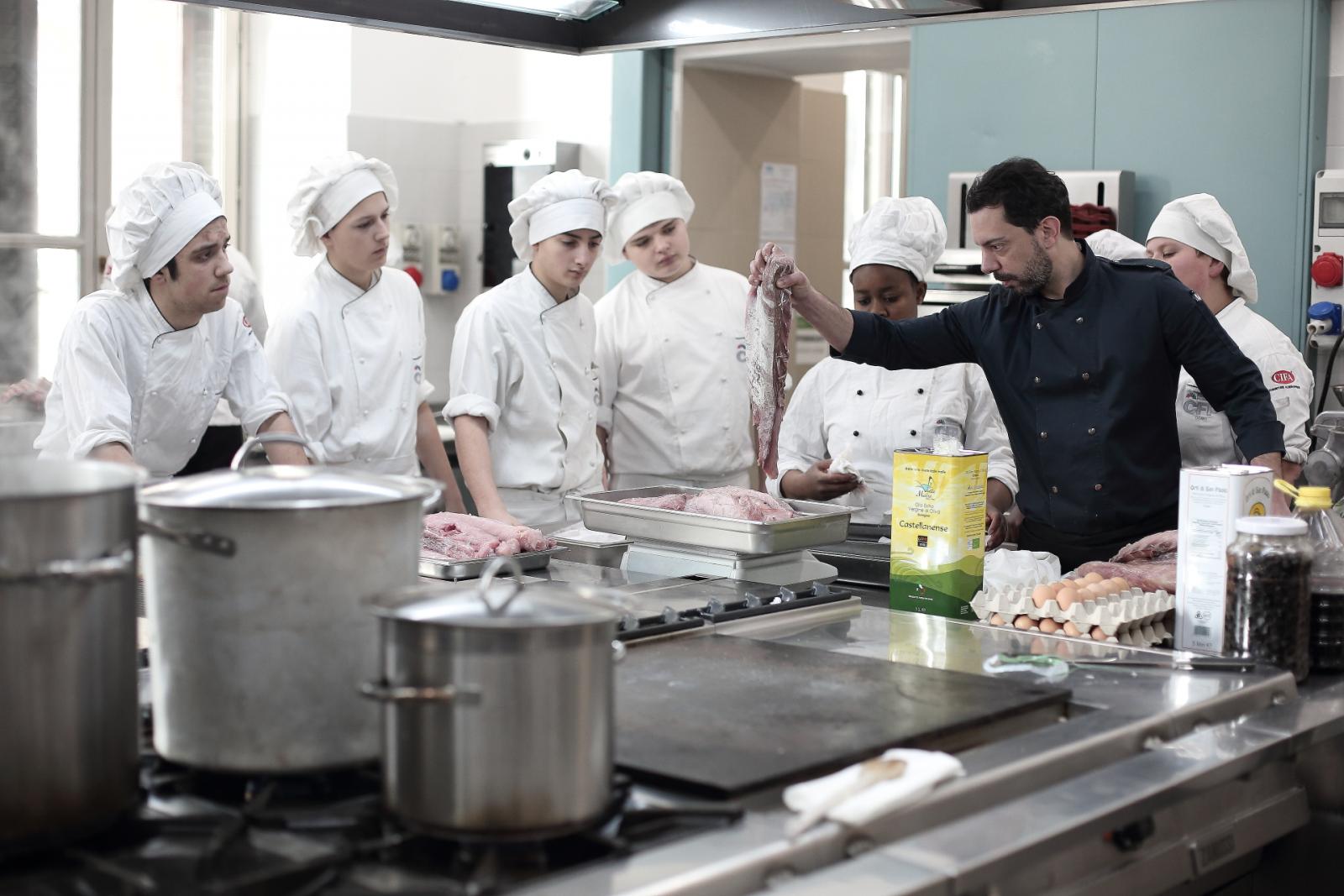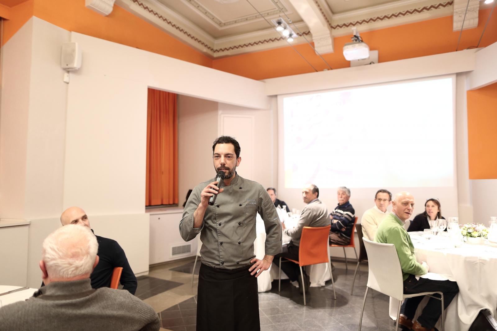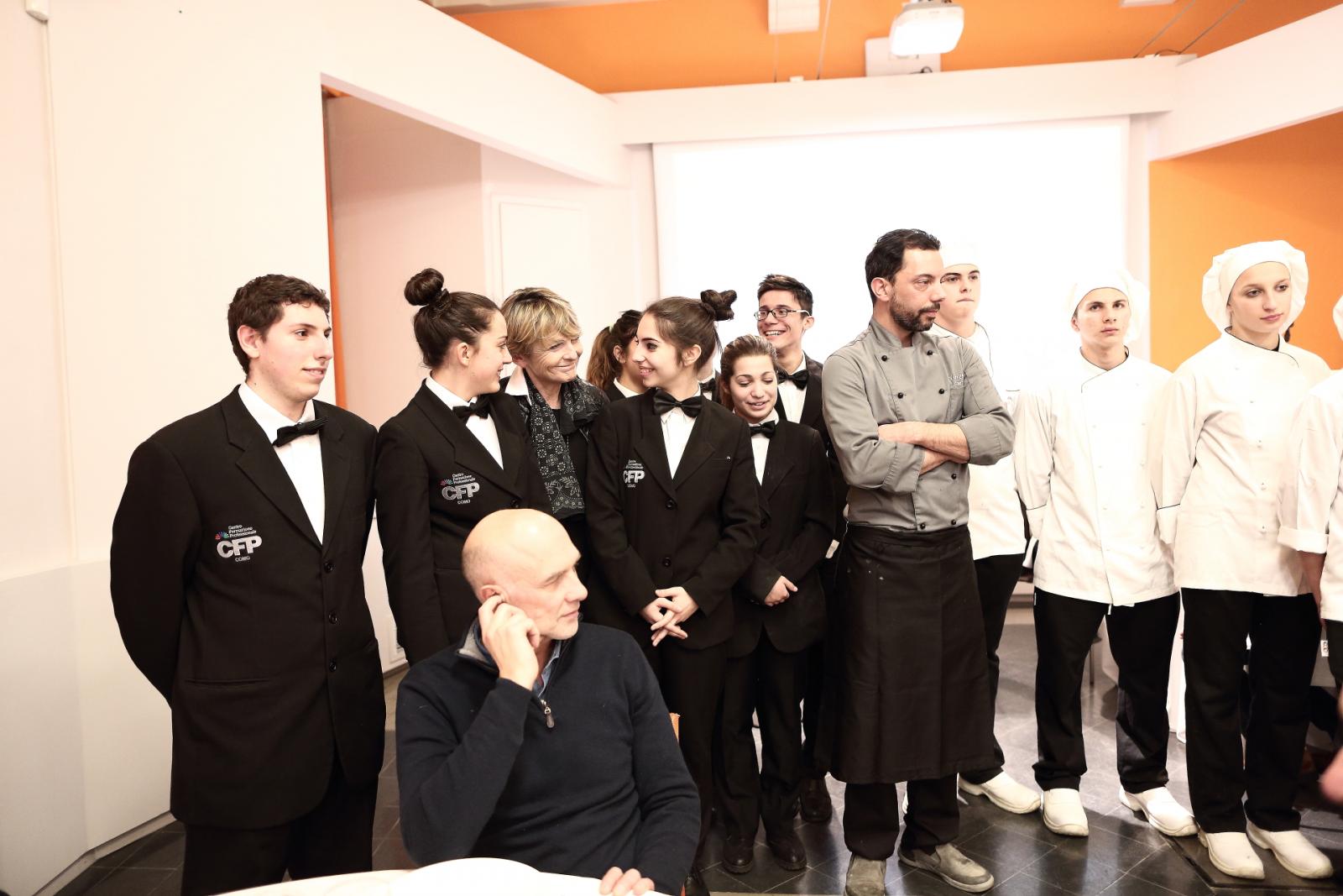 Photo Gallery Home Photo Gallery GRANDI CHEF AL CFP: VINCENZO CAROLA GRANDI CHEF AL CFP: VINCENZO CAROLA Grandi nomi della cucina italiana al CFP di Como. Protagonisti gli studenti dei corsi di Cucina e Sala del Centro di Formazione Professionale che, nelle giornate del 30 e 31 gennaio hanno affiancato lo chef Cilentino Vincenzo Carola, ospite a Como. Il menu 360° di Ricciola racchiude in sè tutto lo spirito e l'anima del SUD Italia, dove lo spreco non è contemplato e la "materia prima" è rispettata, lavorata ed esaltata nella sua essenza. Lo Chef Cilentino, al terzo appuntamento annuale come ospite a Como, è titolare dello storico e rinomato ristorante "Vecchio Saracino" di Agropoli. La famiglia Carola, ormai da quattro generazioni porta avanti la tradizione del pesce di mare in una zona che è patrimonio UNESCO (Vallo di Diano). Piatti semplici ma carichi di gusto che raccontano la cucina cilentina influenzata dalla tradizione saracena. Il percorso di degustazione è iniziato una aperitivo di benvenuto: Polpette di patate, Alici di Menaica e pappacelle, Focaccia al limoncello con patè di fegato di Ricciola. Antipasto a base di Crudo di Ricciola, fagioli di Controne, cumino e limone come, primo piatto con Conchiglie di grano duro, guancia e ventresca di Ricciola, uvetta, pinoli e porri caramellati al Lucano e per finire Trancio di Ricciola, solera di aceto balsamico "1920", olive affumicate e rosmarino. Interessante il dolce: Croccante di amaretti in semifreddo, sciroppo di agrumi e zenzero. La cena è stata accompagnata da Vini del SUD Italia, rispettando il territorio e la tradizione. Gli ospiti, sempre numerosi in questi appuntamenti hanno gradito la Cena e ascoltato con piacere la spiegazione del Menu da parte dello Chef che, al termine della serata, ha ringraziato i commensali e gli allievi che lo hanno aiutato in questo evento. Qui di seguito gli scatti della serata Torna indietro Condividi Su E-mailFacebookTwitterLinkedIn Gallery