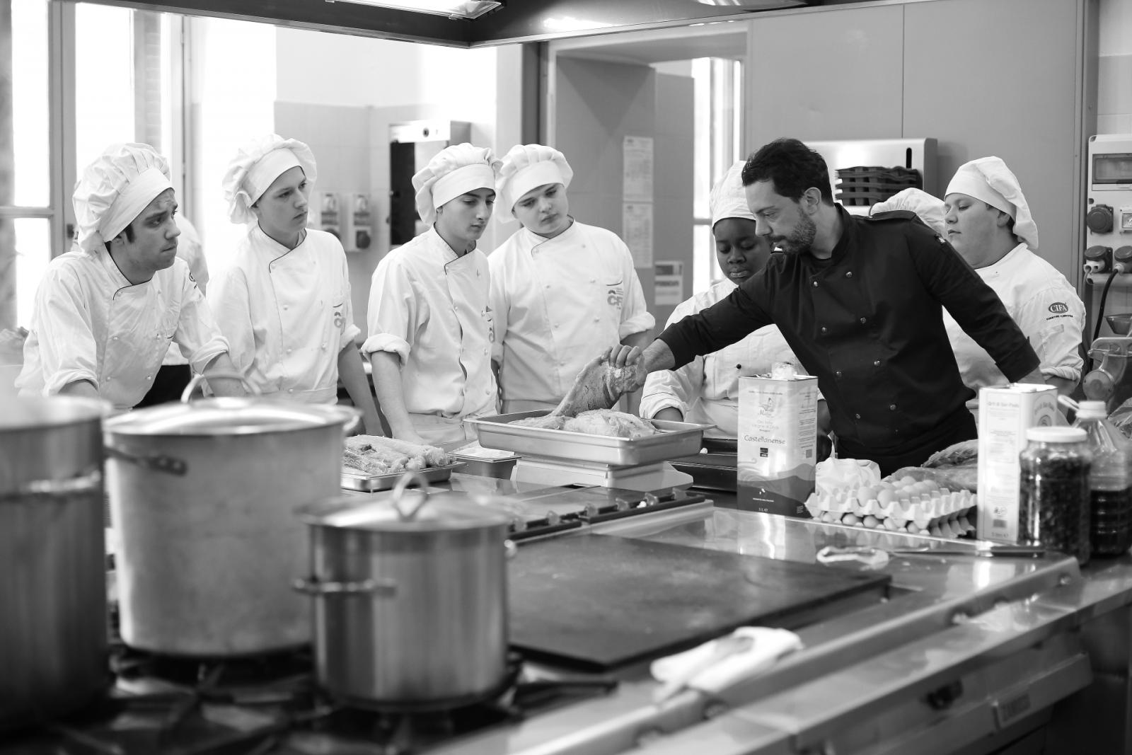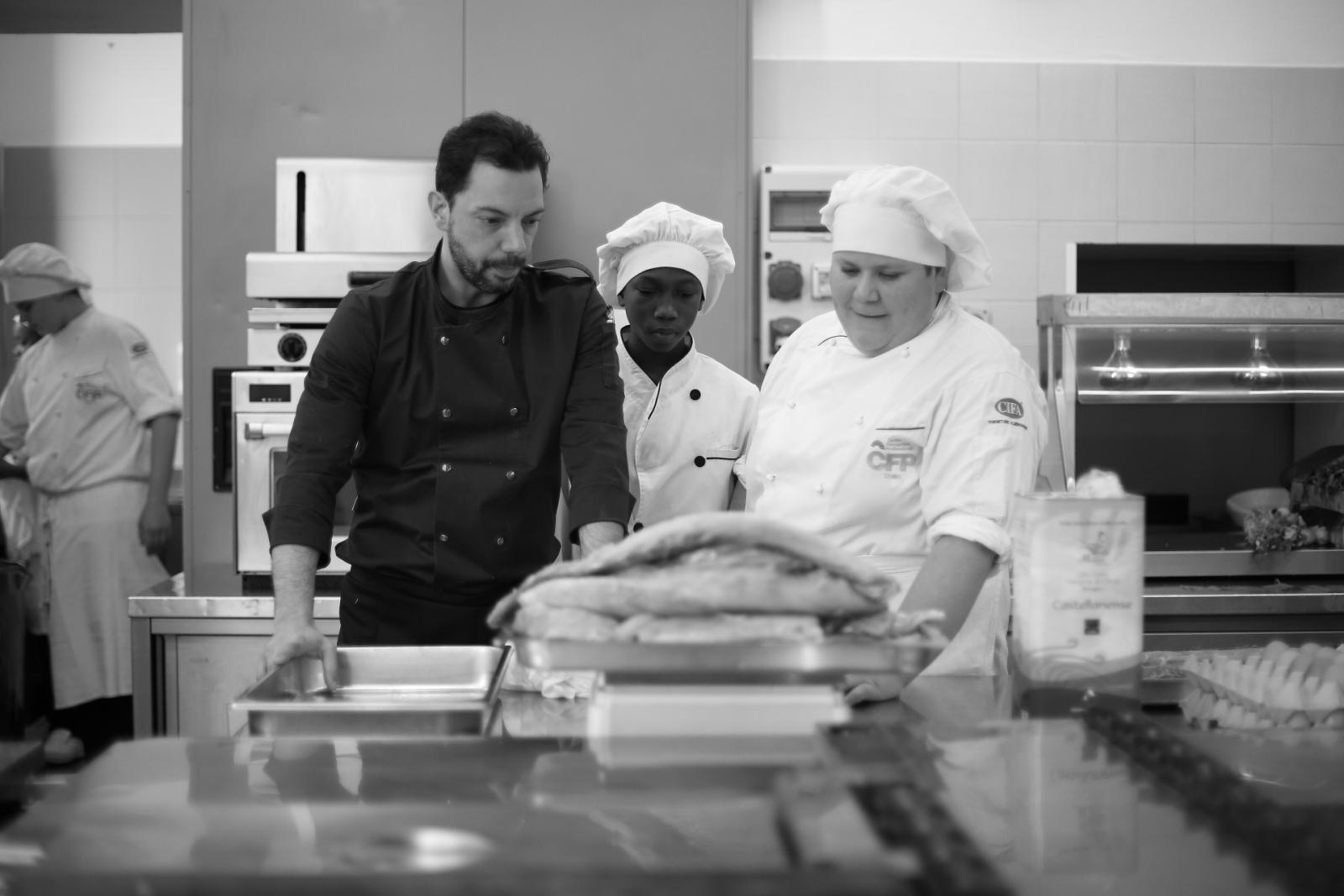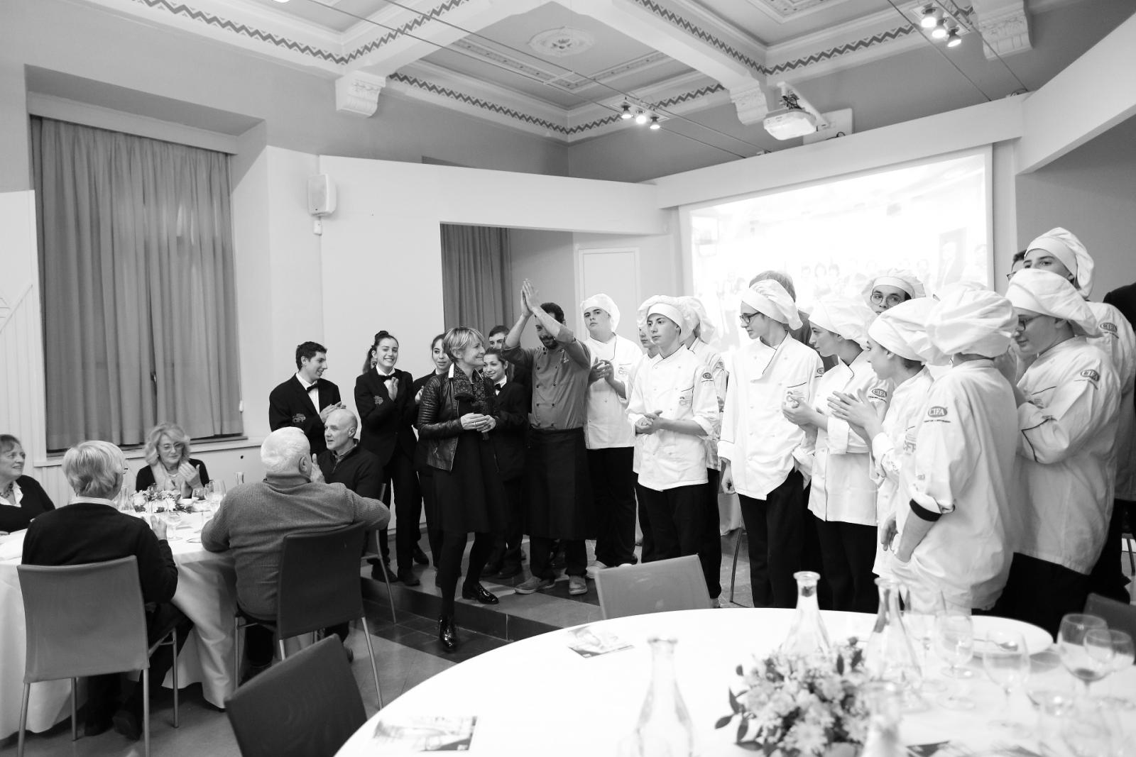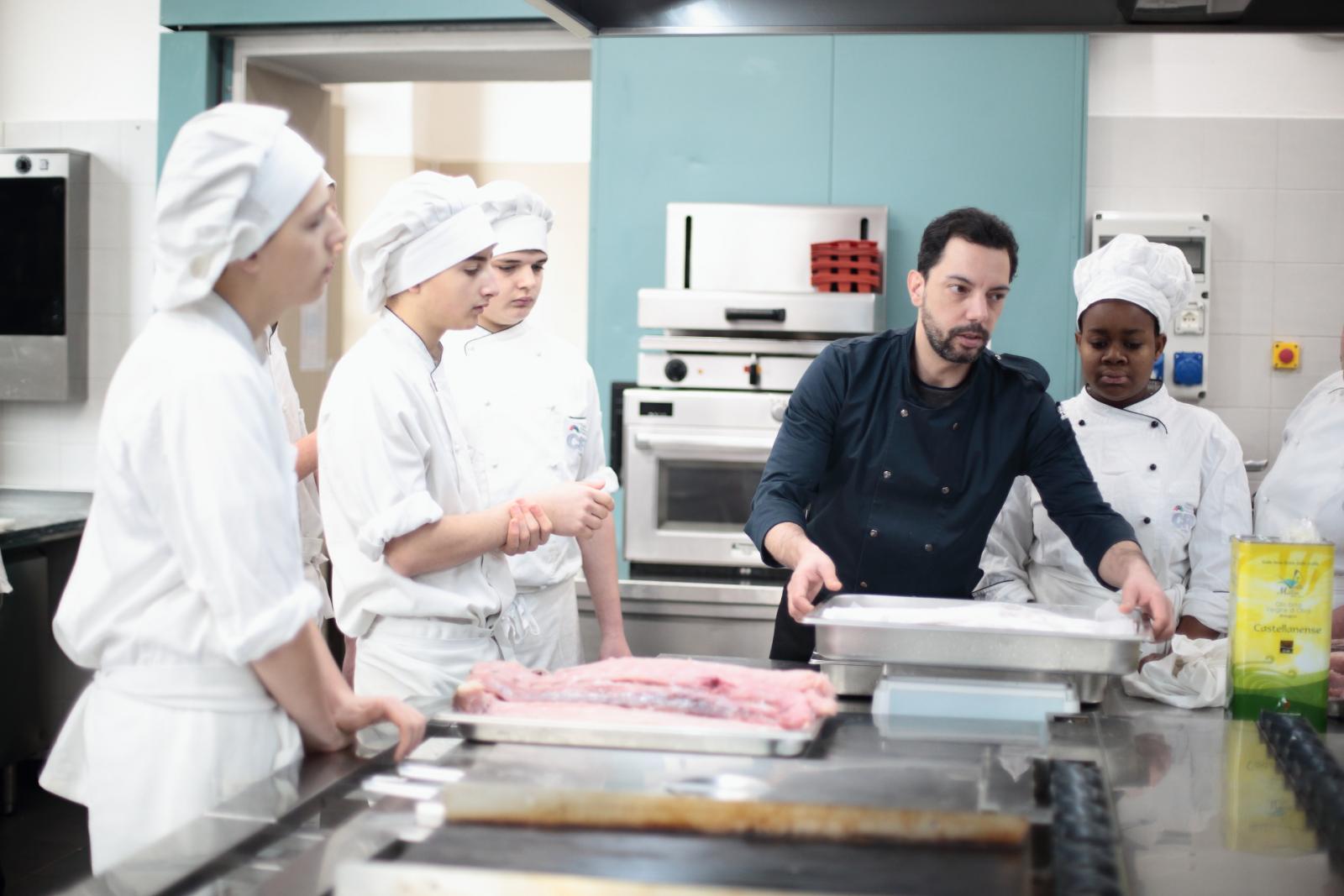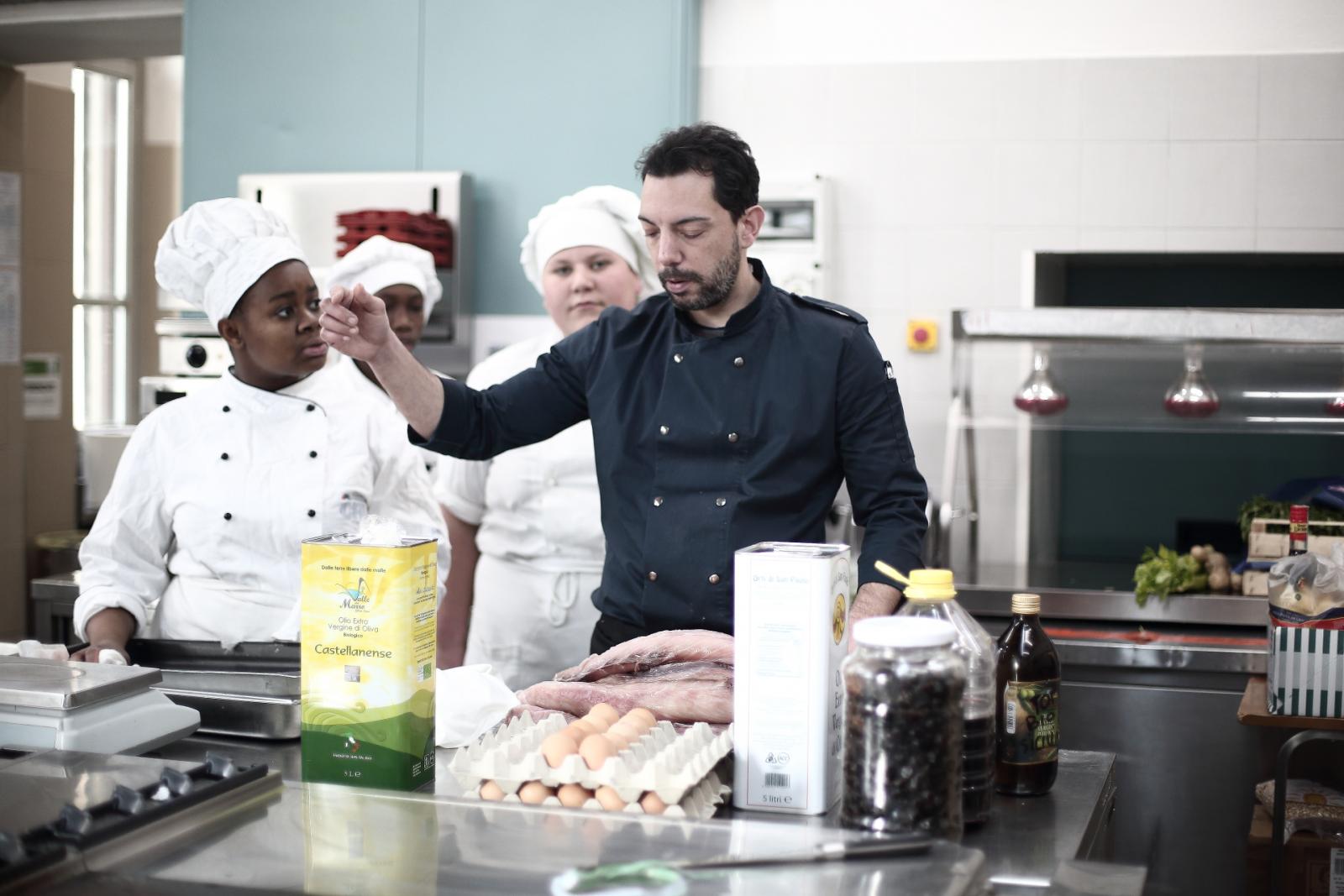 Photo Gallery Home Photo Gallery GRANDI CHEF AL CFP: VINCENZO CAROLA GRANDI CHEF AL CFP: VINCENZO CAROLA Grandi nomi della cucina italiana al CFP di Como. Protagonisti gli studenti dei corsi di Cucina e Sala del Centro di Formazione Professionale che, nelle giornate del 30 e 31 gennaio hanno affiancato lo chef Cilentino Vincenzo Carola, ospite a Como. Il menu 360° di Ricciola racchiude in sè tutto lo spirito e l'anima del SUD Italia, dove lo spreco non è contemplato e la "materia prima" è rispettata, lavorata ed esaltata nella sua essenza. Lo Chef Cilentino, al terzo appuntamento annuale come ospite a Como, è titolare dello storico e rinomato ristorante "Vecchio Saracino" di Agropoli. La famiglia Carola, ormai da quattro generazioni porta avanti la tradizione del pesce di mare in una zona che è patrimonio UNESCO (Vallo di Diano). Piatti semplici ma carichi di gusto che raccontano la cucina cilentina influenzata dalla tradizione saracena. Il percorso di degustazione è iniziato una aperitivo di benvenuto: Polpette di patate, Alici di Menaica e pappacelle, Focaccia al limoncello con patè di fegato di Ricciola. Antipasto a base di Crudo di Ricciola, fagioli di Controne, cumino e limone come, primo piatto con Conchiglie di grano duro, guancia e ventresca di Ricciola, uvetta, pinoli e porri caramellati al Lucano e per finire Trancio di Ricciola, solera di aceto balsamico "1920", olive affumicate e rosmarino. Interessante il dolce: Croccante di amaretti in semifreddo, sciroppo di agrumi e zenzero. La cena è stata accompagnata da Vini del SUD Italia, rispettando il territorio e la tradizione. Gli ospiti, sempre numerosi in questi appuntamenti hanno gradito la Cena e ascoltato con piacere la spiegazione del Menu da parte dello Chef che, al termine della serata, ha ringraziato i commensali e gli allievi che lo hanno aiutato in questo evento. Qui di seguito gli scatti della serata Torna indietro Condividi Su E-mailFacebookTwitterLinkedIn Gallery