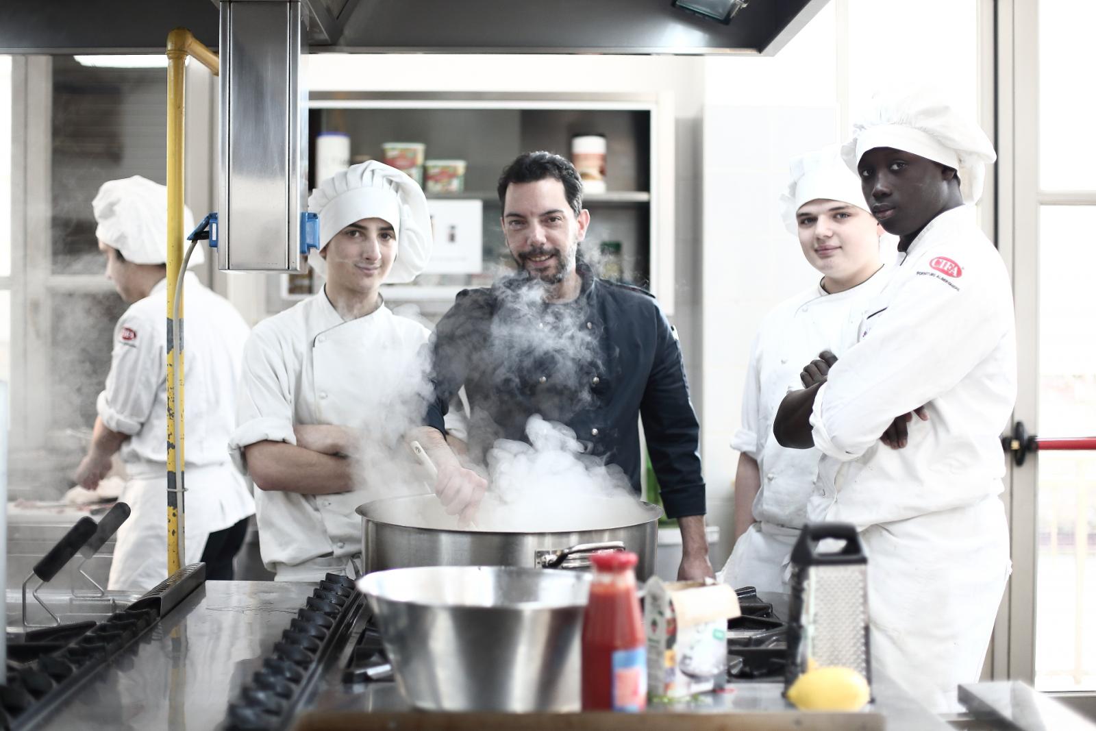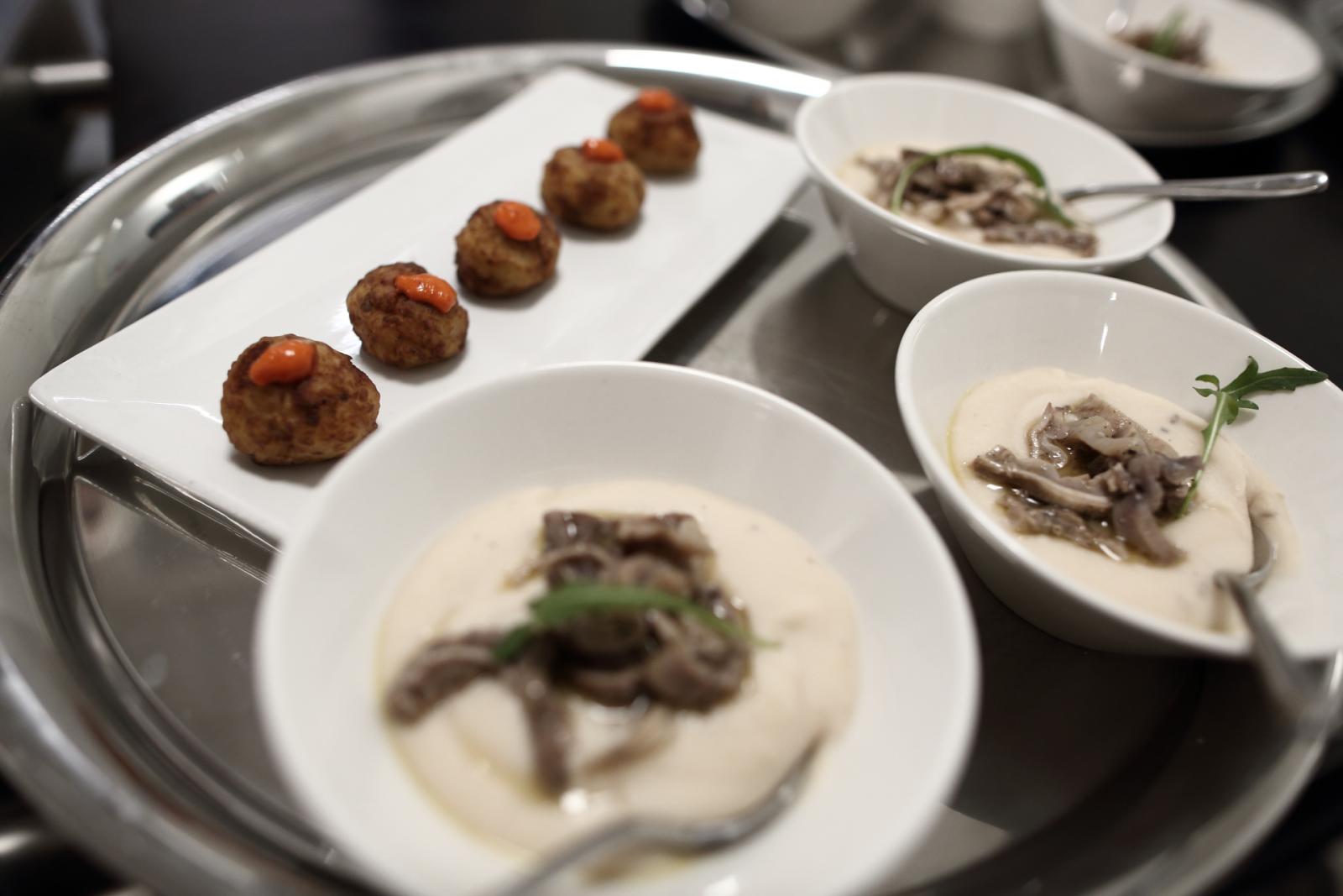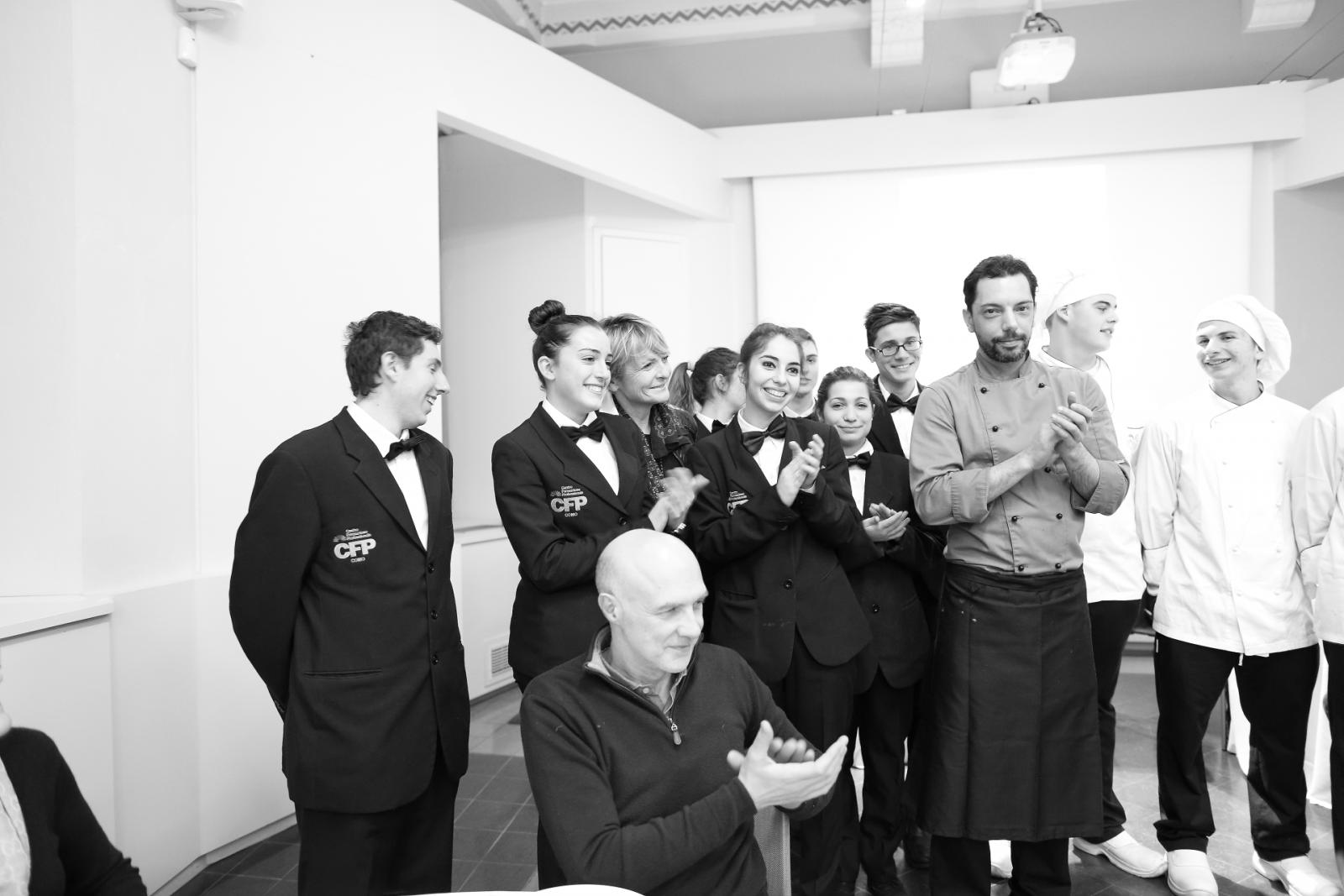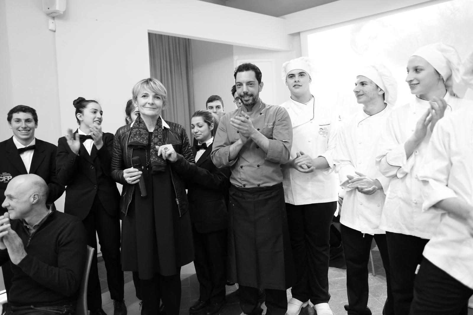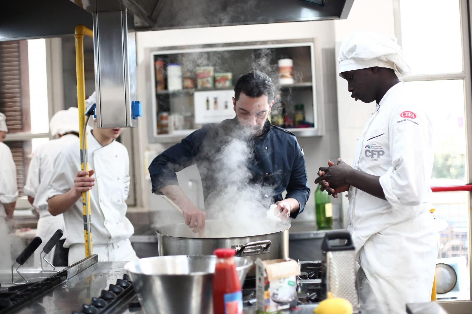 Photo Gallery Home Photo Gallery GRANDI CHEF AL CFP: VINCENZO CAROLA GRANDI CHEF AL CFP: VINCENZO CAROLA Grandi nomi della cucina italiana al CFP di Como. Protagonisti gli studenti dei corsi di Cucina e Sala del Centro di Formazione Professionale che, nelle giornate del 30 e 31 gennaio hanno affiancato lo chef Cilentino Vincenzo Carola, ospite a Como. Il menu 360° di Ricciola racchiude in sè tutto lo spirito e l'anima del SUD Italia, dove lo spreco non è contemplato e la "materia prima" è rispettata, lavorata ed esaltata nella sua essenza. Lo Chef Cilentino, al terzo appuntamento annuale come ospite a Como, è titolare dello storico e rinomato ristorante "Vecchio Saracino" di Agropoli. La famiglia Carola, ormai da quattro generazioni porta avanti la tradizione del pesce di mare in una zona che è patrimonio UNESCO (Vallo di Diano). Piatti semplici ma carichi di gusto che raccontano la cucina cilentina influenzata dalla tradizione saracena. Il percorso di degustazione è iniziato una aperitivo di benvenuto: Polpette di patate, Alici di Menaica e pappacelle, Focaccia al limoncello con patè di fegato di Ricciola. Antipasto a base di Crudo di Ricciola, fagioli di Controne, cumino e limone come, primo piatto con Conchiglie di grano duro, guancia e ventresca di Ricciola, uvetta, pinoli e porri caramellati al Lucano e per finire Trancio di Ricciola, solera di aceto balsamico "1920", olive affumicate e rosmarino. Interessante il dolce: Croccante di amaretti in semifreddo, sciroppo di agrumi e zenzero. La cena è stata accompagnata da Vini del SUD Italia, rispettando il territorio e la tradizione. Gli ospiti, sempre numerosi in questi appuntamenti hanno gradito la Cena e ascoltato con piacere la spiegazione del Menu da parte dello Chef che, al termine della serata, ha ringraziato i commensali e gli allievi che lo hanno aiutato in questo evento. Qui di seguito gli scatti della serata Torna indietro Condividi Su E-mailFacebookTwitterLinkedIn Gallery