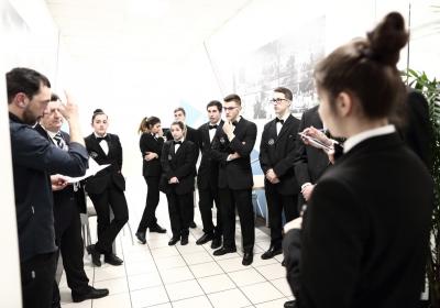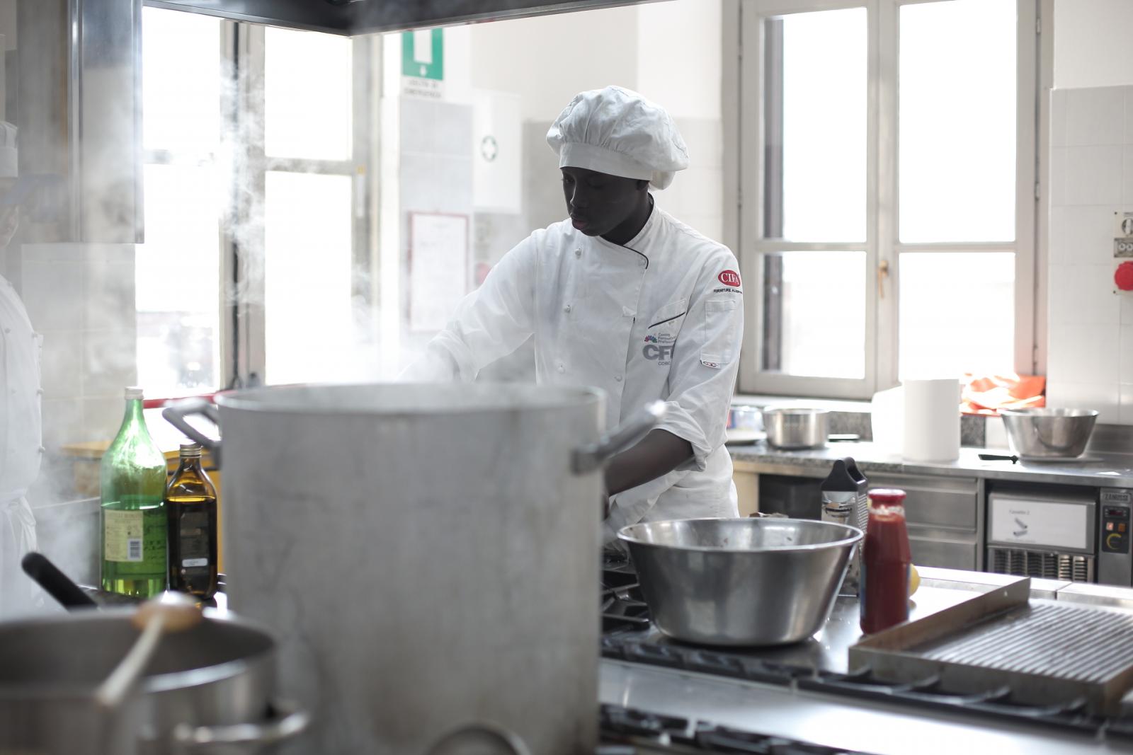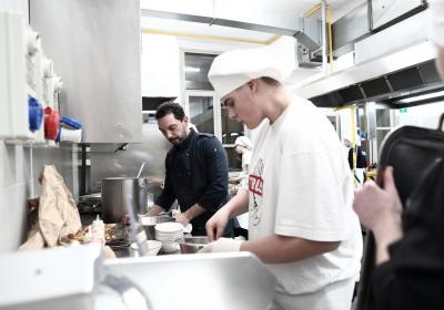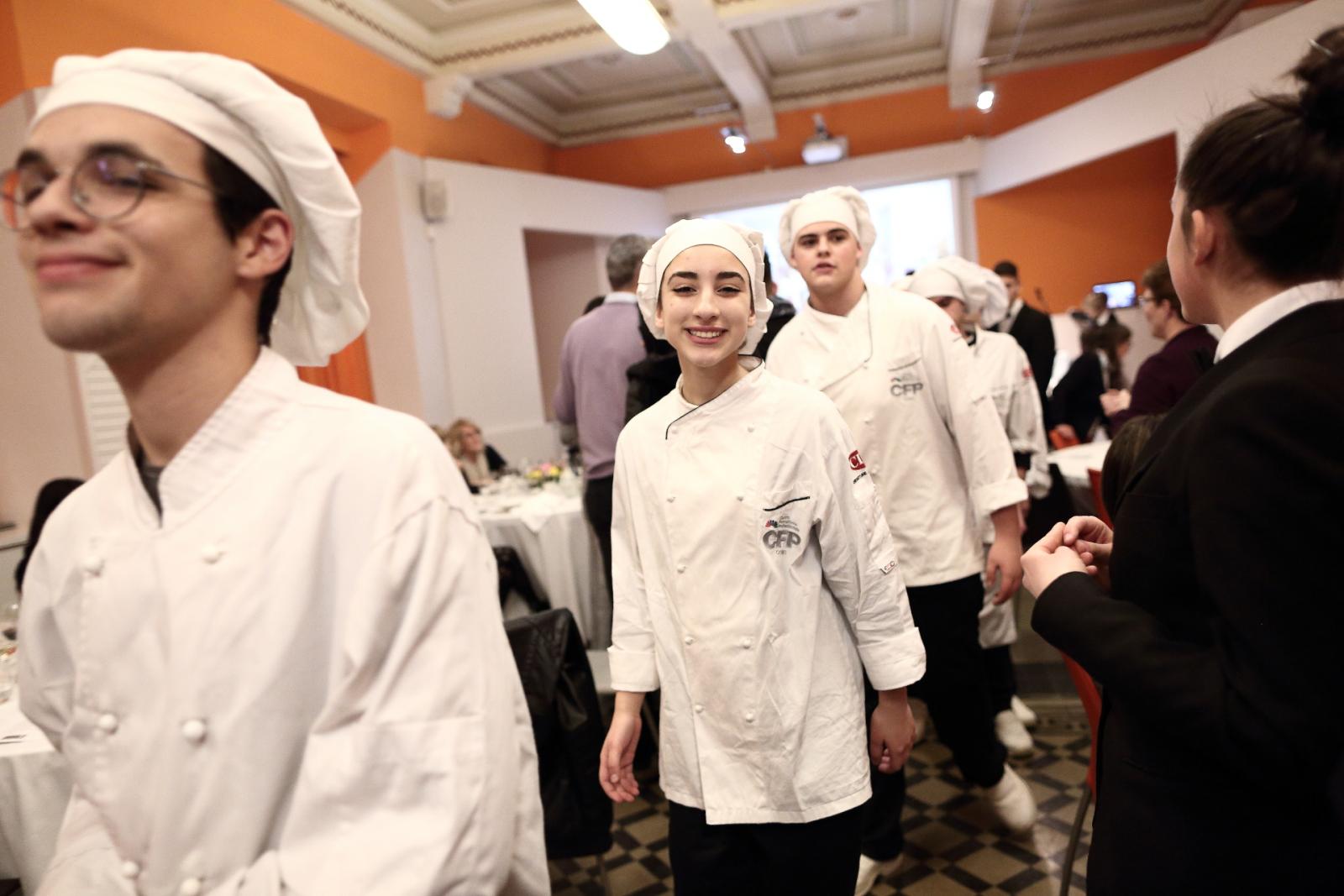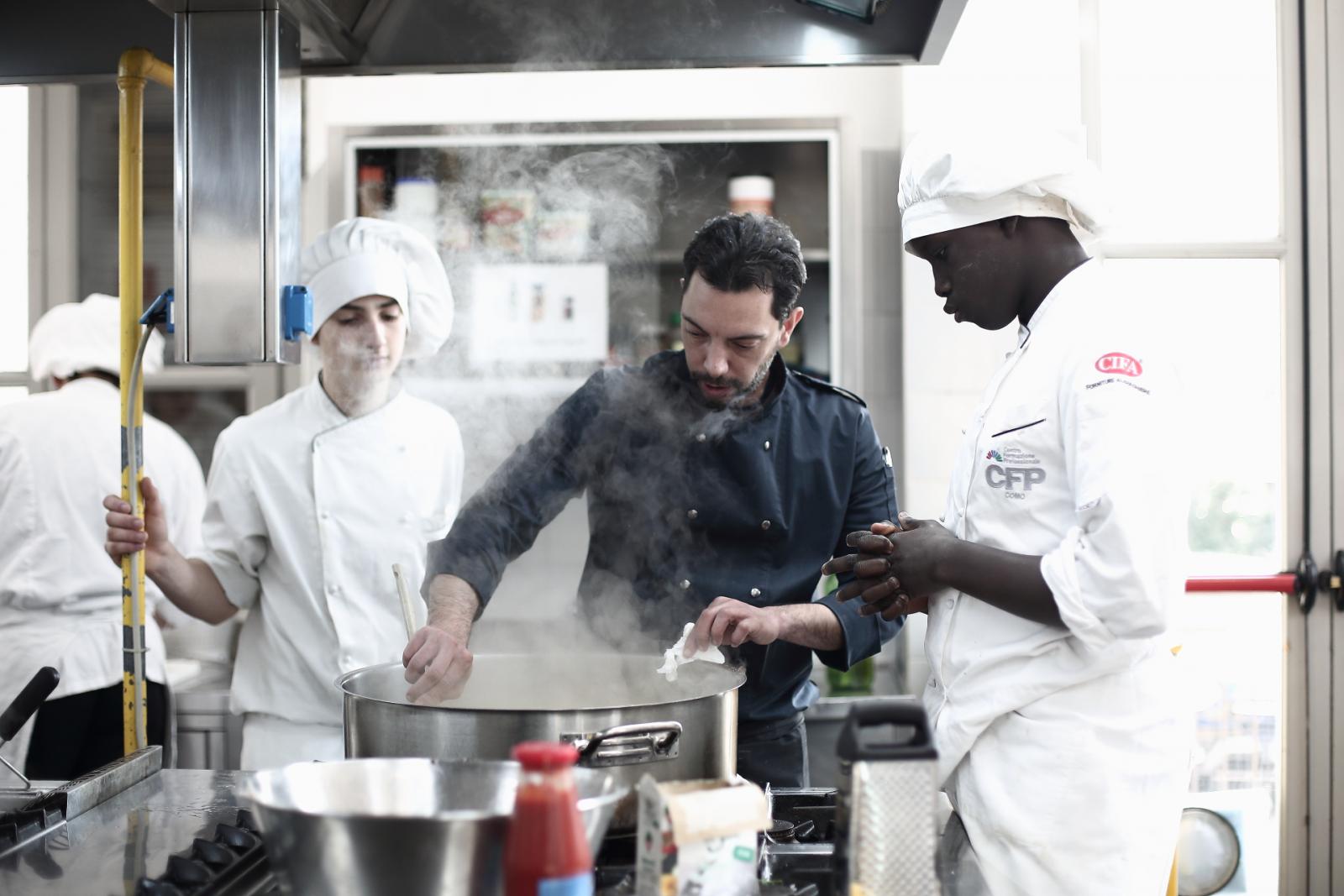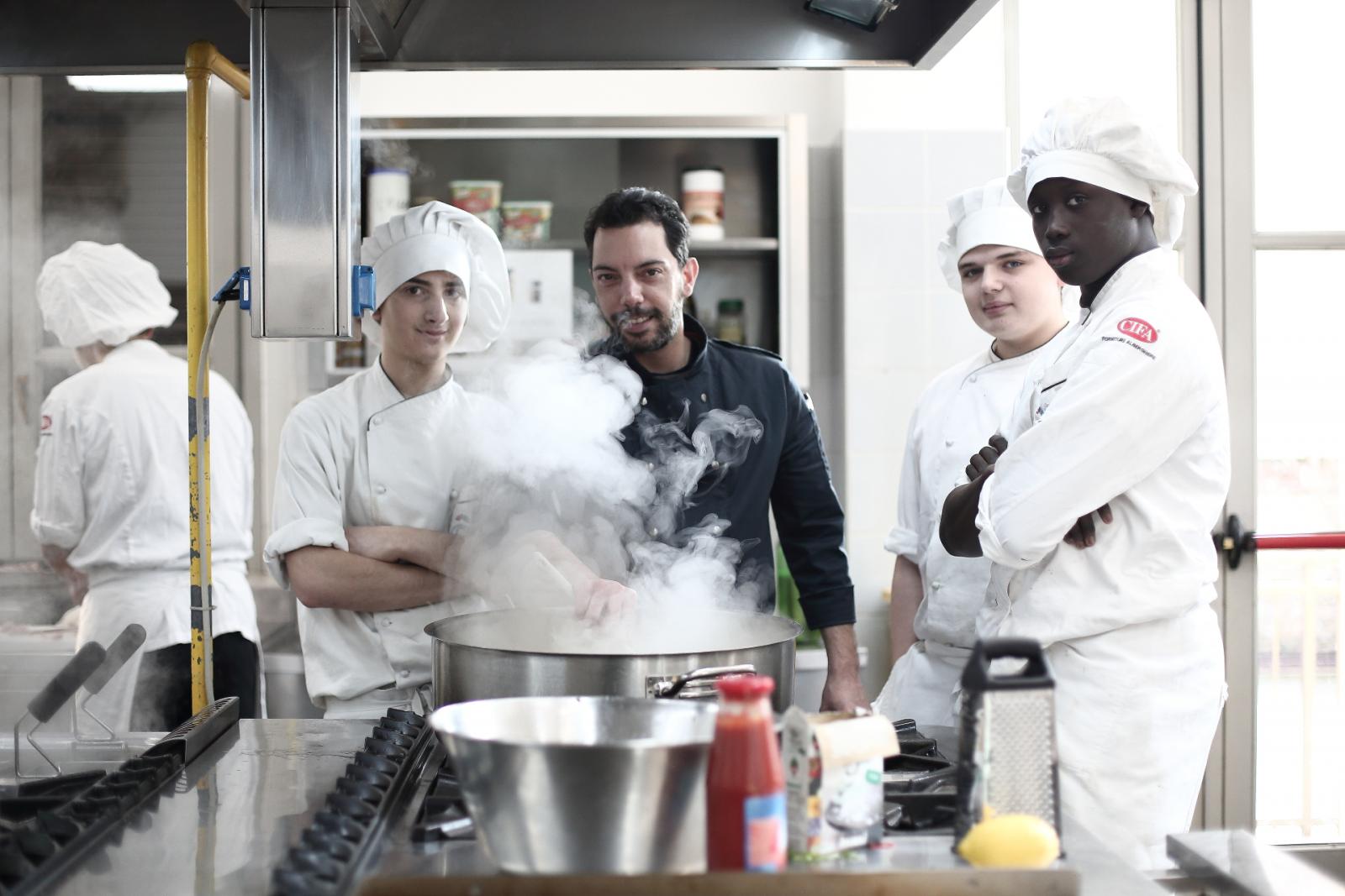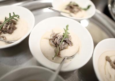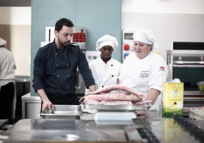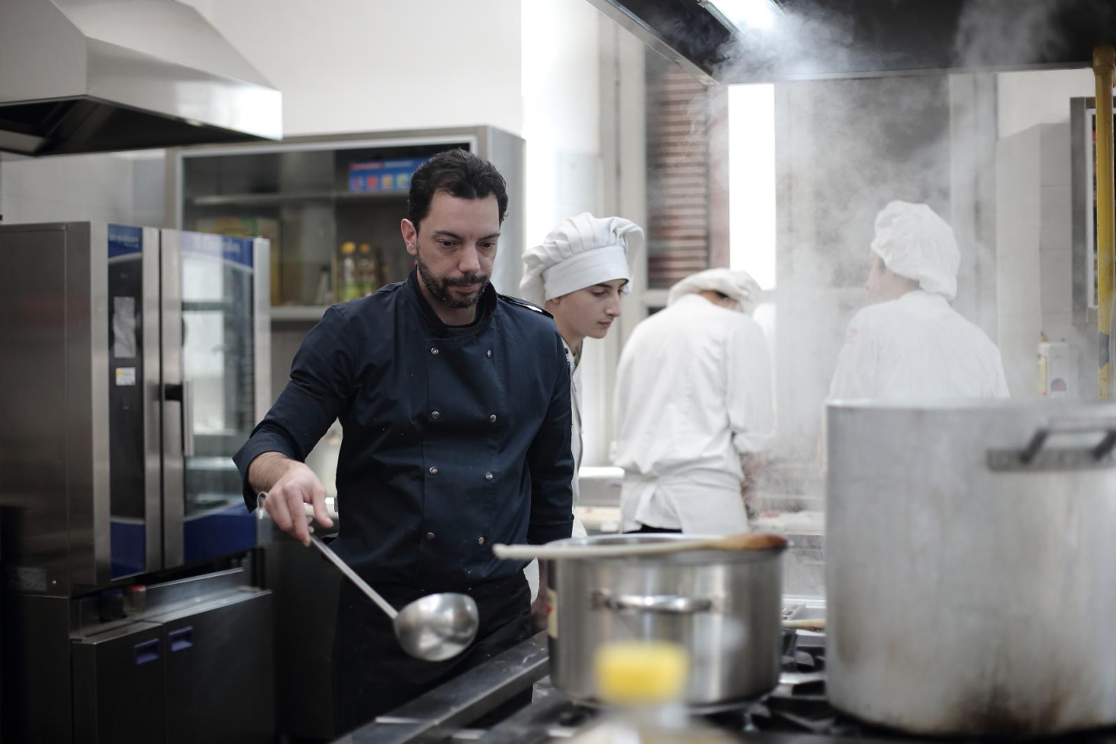 Photo Gallery Home Photo Gallery GRANDI CHEF AL CFP: VINCENZO CAROLA GRANDI CHEF AL CFP: VINCENZO CAROLA Grandi nomi della cucina italiana al CFP di Como. Protagonisti gli studenti dei corsi di Cucina e Sala del Centro di Formazione Professionale che, nelle giornate del 30 e 31 gennaio hanno affiancato lo chef Cilentino Vincenzo Carola, ospite a Como. Il menu 360° di Ricciola racchiude in sè tutto lo spirito e l'anima del SUD Italia, dove lo spreco non è contemplato e la "materia prima" è rispettata, lavorata ed esaltata nella sua essenza. Lo Chef Cilentino, al terzo appuntamento annuale come ospite a Como, è titolare dello storico e rinomato ristorante "Vecchio Saracino" di Agropoli. La famiglia Carola, ormai da quattro generazioni porta avanti la tradizione del pesce di mare in una zona che è patrimonio UNESCO (Vallo di Diano). Piatti semplici ma carichi di gusto che raccontano la cucina cilentina influenzata dalla tradizione saracena. Il percorso di degustazione è iniziato una aperitivo di benvenuto: Polpette di patate, Alici di Menaica e pappacelle, Focaccia al limoncello con patè di fegato di Ricciola. Antipasto a base di Crudo di Ricciola, fagioli di Controne, cumino e limone come, primo piatto con Conchiglie di grano duro, guancia e ventresca di Ricciola, uvetta, pinoli e porri caramellati al Lucano e per finire Trancio di Ricciola, solera di aceto balsamico "1920", olive affumicate e rosmarino. Interessante il dolce: Croccante di amaretti in semifreddo, sciroppo di agrumi e zenzero. La cena è stata accompagnata da Vini del SUD Italia, rispettando il territorio e la tradizione. Gli ospiti, sempre numerosi in questi appuntamenti hanno gradito la Cena e ascoltato con piacere la spiegazione del Menu da parte dello Chef che, al termine della serata, ha ringraziato i commensali e gli allievi che lo hanno aiutato in questo evento. Qui di seguito gli scatti della serata Torna indietro Condividi Su E-mailFacebookTwitterLinkedIn Gallery