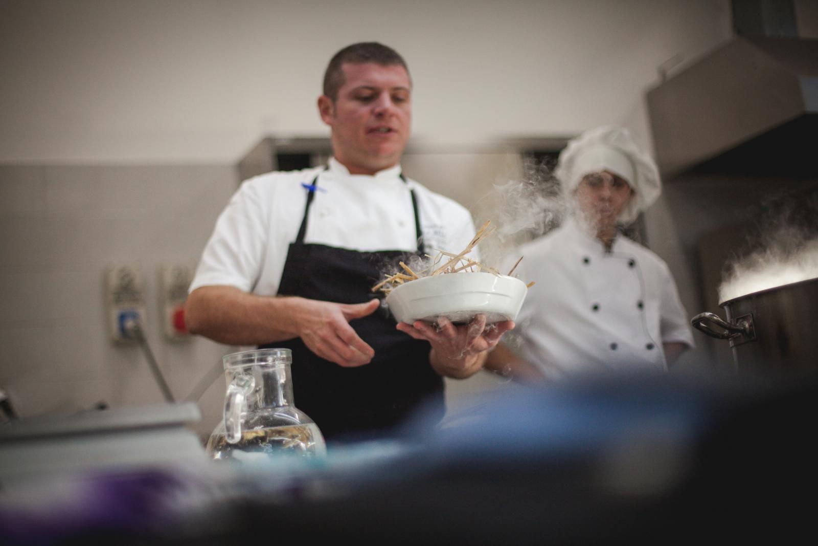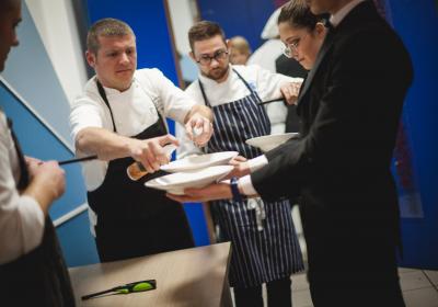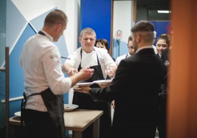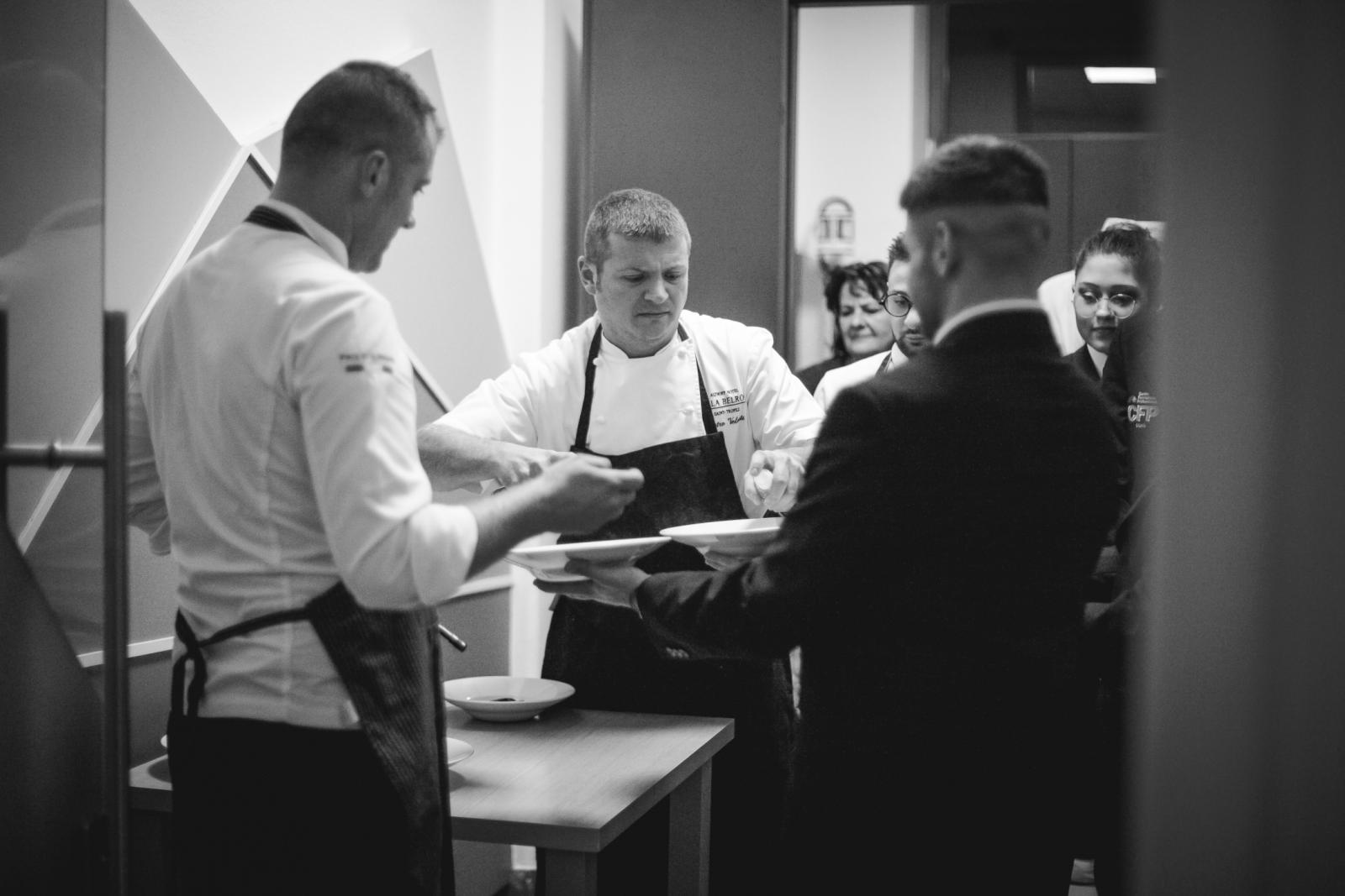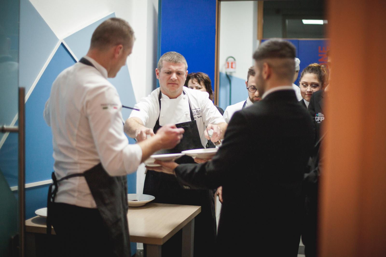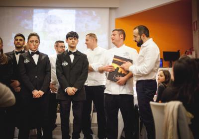 Photo Gallery Home Photo Gallery GRANDI CHEF STELLATI AL CFP: PIETRO VOLONTÉ (PH GALLERY) GRANDI CHEF STELLATI AL CFP: PIETRO VOLONTÉ (PH GALLERY) Lo Chef stellato Pietro Volontè (Althoff Hôtel Villa Belrose, Saint-Tropez) è stato protagonista della cena d'Autore svolta in data venerdì 11 gennaio 2019 presso la Sala Ristorante del CFP di COMO. Classe ‘85, Pietro Volontè - ex allievo del CFP di Monte Olimpino - è tornato dopo numerose ed importanti esperienze di rango internazionale per cucinare nella scuola che lo ha visto crescere e muovere i primi passi della Sua prestigiosa carriera. Iniziando “Da Candida” a Campione d’Italia (Chef Bernard Fournier), all'Hotel Eden a Roma, al Badrutt’s Palace Hotel in Svizzera. Ha avuto modo di seguire lo Chef Enrico Derflingher nella cornice di Saint Moritz. Passa poi dal Cipriani Restaurant a Londra, al Gordon Ramsay di Londra e poi a quello di Parigi, dove diventa secondo chef. Il suo stile è legato a tradizione e semplicità, con grande rispetto delle materie prime e con un'occhio all'innovazione. Oggi ricopre la posizione di Executive Chef all‘Althoff Hotel Villa Belrose, lussuoso Relais & Chateaux in Costa Azzurra ed è insignito di una STELLA MICHELIN. Il menù proposto ha visto un "Amouche Bouche" di benvenuto, Tortellini di polipo, seppia al profumo di agrumi,cipolla rossa in agrodolce, salsa ai crostacei e Capesante arrostiste, puree di pastinaca,melograno, kaffir lime, salsa al caffe arabica. Come secondo un Filetto di manzo cotta bassa temperatura, sedano rapa croccante, millefoglie di patate, pioppini marinati al sesamo, salsa al vino rosso Interessante il dolce con Cioccolato, the nero affumicato, gel alla citronella, gelato alla banana e "Dolcetti fiammeggianti" serviti direttamente dallo Chef. Pietro Volontè ha cucinato i piatti del menu con la Brigata delle classi terze di cucina del Centro e coordinando con i docenti di sala e gli allievi delle Terze annualità il servizio. Nello Staff di Pietro per questa serata, anche l'amico e collega Paolo Longoni - cuoco del ristorante "BellaVista" di Veleso (CO), peraltro docente di cucina deli corsi DDIF del CFP. I due Chef hanno condiviso assieme l'esperienza al Restaurant Gordon Ramsey di Londra. Circa ottanta ospiti presenti alla Cena hanno gradito il Menu, strutturato con abbinamenti interessanti e materie prime di primissimo livello. La Direttrice del CFP ha personalemente consegnato allo Chef il Libro del Lago di Como (Pifferi Editore - VILLE E GIARDINI), assieme allo Staff del CFP. rande l'emozione degli allievi e delle allieve impegnate nella serata che ha rappresentato un importante momento didattico e formativo per gli studenti coinvolti. Qui di seguito la PH GALLERY dell'evento Torna indietro Condividi Su E-mailFacebookTwitterLinkedIn Gallery