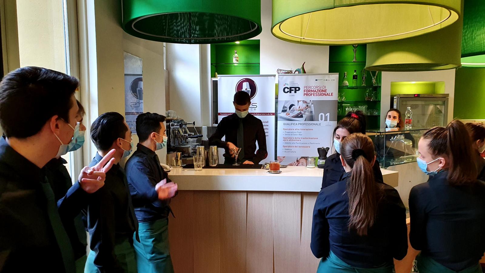 I docenti della classe 4^Sala alternanza del CFP di Como hanno organizzato in accordo con la direzione ARTS Services (associazione no profit per sala-bar www.artsservice.it) un intervento sulla miscelazione con Kevin Botte, ex bar manager dell'imperiale di Moltrasio e attualmente bartender al Mandarin Oriental di Blevio.