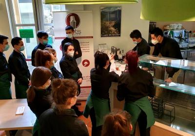 Photo Gallery Home Photo Gallery INTERVENTO KEVIN BOTTE - BARTENDER MANDARIN ORIENTAL BLEVIO INTERVENTO KEVIN BOTTE - BARTENDER MANDARIN ORIENTAL BLEVIO I docenti della classe 4^Sala alternanza del CFP di Como hanno organizzato in accordo con la direzione ARTS Services (associazione no profit per sala-bar www.artsservice.it) un intervento sulla miscelazione con Kevin Botte, ex bar manager dell'imperiale di Moltrasio e attualmente bartender al Mandarin Oriental di Blevio. L'incontro si è focalizzato sulla figura del bartender, non solo nel ruolo di mero esecutore, ma come hospitality manager a 360°. All'ordine del giorno argomenti come l'interazione col cliente e l'educazione al gusto. La classe ha poi simulato i costi di realizzazione di alcuni classici della miscelazione e proposto varianti innovative, senza incrementare in modo significativo il drink cost, ma elaborando nuovi cocktail vendibili con un maggior valore. Qui di seguito alcuni scatti dell'intervento Torna indietro Condividi Su E-mailFacebookTwitterLinkedIn Gallery