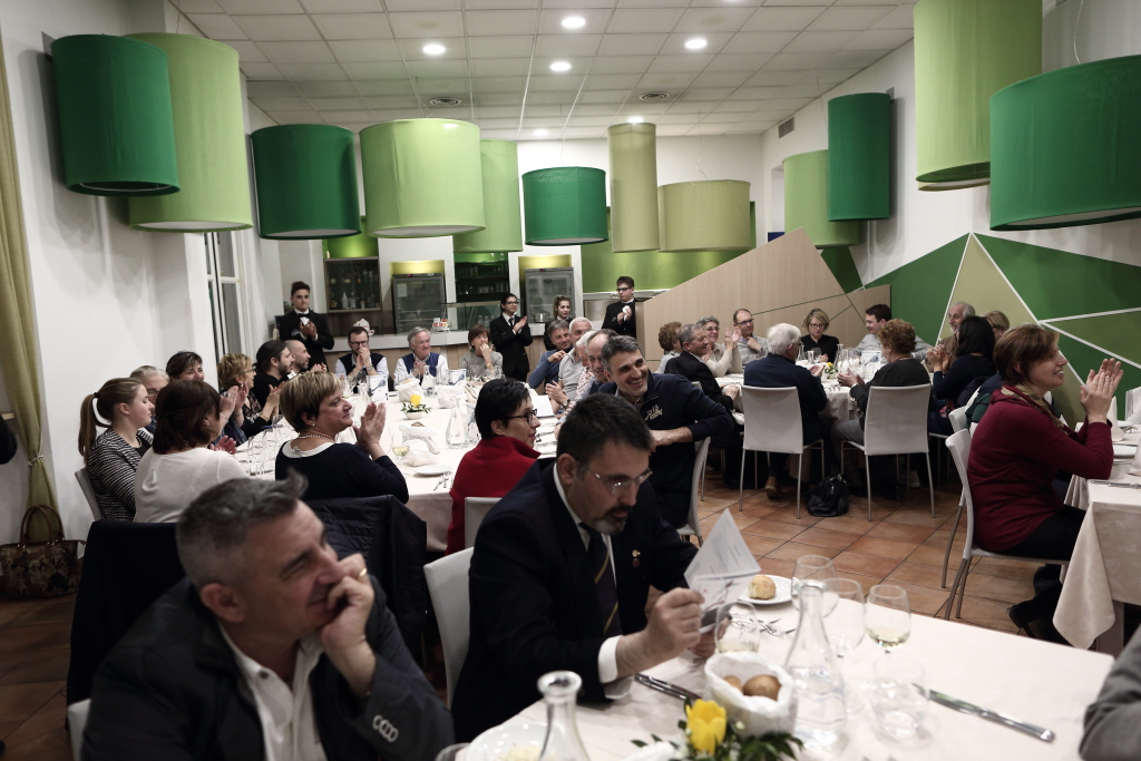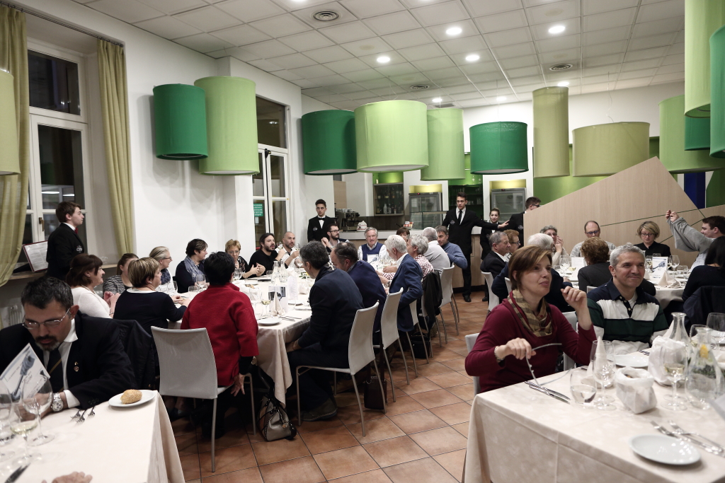 Photo Gallery Home Photo Gallery LA TRADIZIONE LARIANA: IL PESCE DI LAGO AL CFP LA TRADIZIONE LARIANA: IL PESCE DI LAGO AL CFP In data 6 aprile 2017 si è tenuta presso il CFP di Como – Monte Olimpino – la Cena dal tema “IL PESCE: DAL LAGO ALLA TAVOLA”, a cura del Ristorante “Silvio” di Bellagio. Giunti ormai alla VII edizione, la serata ha proposto come tema il pesce del lago di Como, la cui tradizione affascina sempre molto i commensali che in questa edizione hanno raggiunto le il numero record di 120 presenze, riempendo due sale. La pesca è il fulcro dell’attività dello storico ristorante, che ormai da generazioni allieta i suoi numerosi clienti con ricette legate alla tradizione Lariana. Tutto ruota intorno a questa attività: non solo è vitale per il ristorante, ma garantisce la freschezza e la selezione delle materie prime. Durante la cena il pescatore e ristoratore Cristian Ponzin, titolare del ristorante, ha illustrato il menu della cena descrivendo con attento dettaglio e grande passione il pescato del giorno ed il metodo con il quale si è realizzata la pesca per la cena. Le storie dei pescatori del Lario hanno da sempre affascinato i turisti e gli amanti della tradizione comasca, e sono la dimostrazione di come la cucina, in Italia, sia espressamente legata ad un'anima e ad un territorio ricco di materie prime e specie animali esclusive e ricercate. Ricco e variegato il menù: Crudité del Lario all’italiana, Paté di Lavarello e Coradura di Agone, Filetto di Lavarello in Salsa verde, Crostone di pane, Filetto di Bottatrice in agrodolce, Pigo marinato freddo con sale e zucchero, Agoni in Carpione. Primo piatto con Corde di chitarra al Luccio e, come secondo, pescato del giorno gratinato al limone con agone e patata bianca comasca; Miascia di Bellagio con singolare rivisitazione all'uva americana per chiudere la serata. A metà evento Christian ha risposto alle numerose domande degli ospiti che, curiosi, proponevano quesiti ed aneddoti legati alla pesca sul lago di Como. Oltre a esprimere un momento importante per gli ospiti, la cena ha rappresentato anche un interessante momento didattico/formativo per gli allievi delle seconde e delle quarte annualità del Settore Ristorativo Alberghiero, presenti al servizio nelle due sale per l'occasione. Qui di seguito le foto più significative dell'evento Torna indietro Condividi Su E-mailFacebookTwitterLinkedIn Gallery
