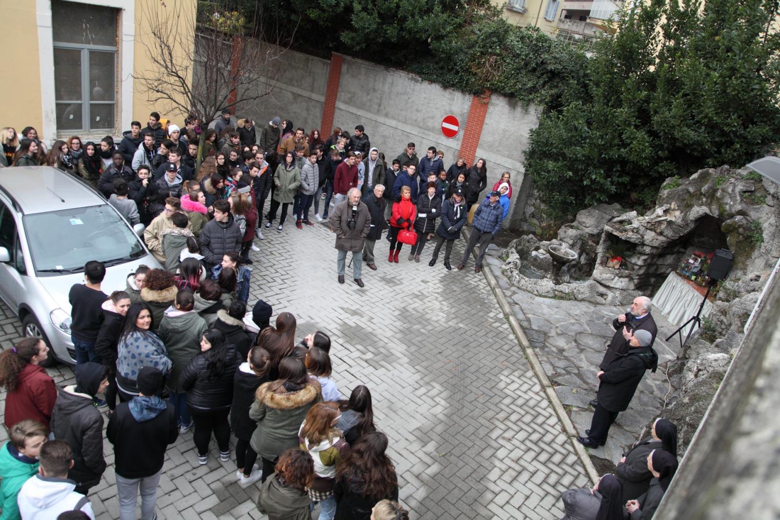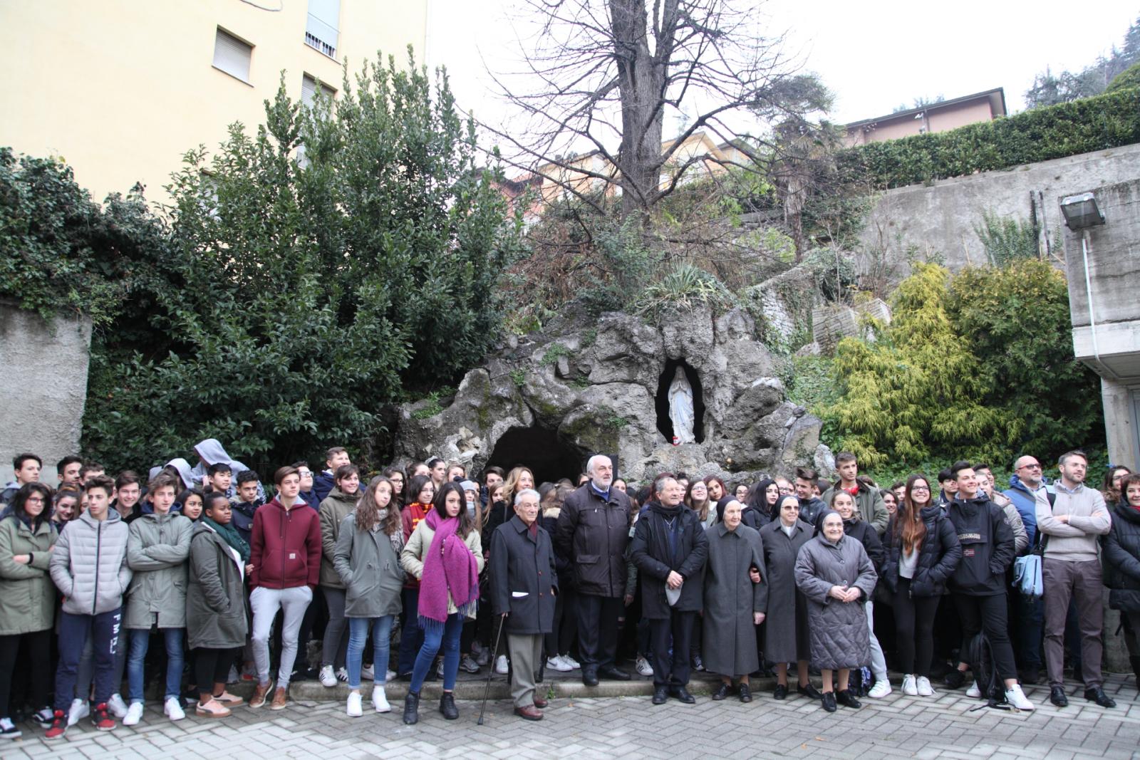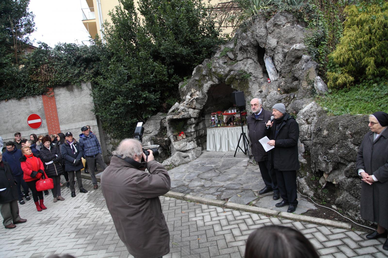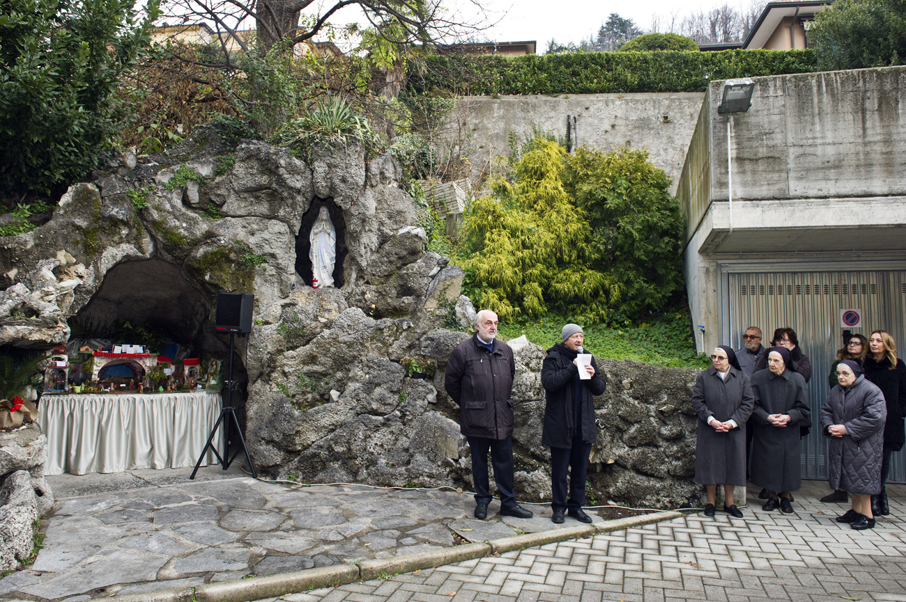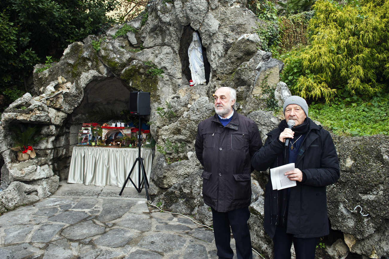 Photo Gallery Home Photo Gallery L'ARTISTA LEONARDO GERMINARIO E IL DONO DEL PRESEPE AL C.F.P. L'ARTISTA LEONARDO GERMINARIO E IL DONO DEL PRESEPE AL C.F.P. Leonardo Germinario, in arte Leo Germi, della classe 1926, nasce a di Santeramo in Colle (Ba). La sua passione per l’arte sboccia da bambino accompagnando il nonno Erasmo dal parrucchiere per poter guardare le opere di cartapesta presenti nel retrobottega. Il parrucchiere infatti, amante dell’arte della cartapesta, aveva trasformato il magazzino del negozio in un vero studio artistico, e qui il piccolo Leonardo poteva osservare dei piccoli capolavori. Amante dell’arte ha ricevuto la passione per il presepe da uno zio. Ogni anno Leonardo era il primo ad essere chiamato per aiutarlo nella realizzazione. Il giorno di natale si svolgeva poi l’inaugurazione; i nipoti in fila portavano il Bambinello fino alla sua culla. Da allora la passione in Leonardo ha continuato a crescere e gli studi di architettura gli hanno permesso di realizzare presepi di grande bellezza. Il suo primo presepe l’ha realizzato in una taverna romana a Poggiorsini. E da lì ogni natale prepara piccoli presepi da regalare. Negli anni 50, quando si trasferisce a Como, inizia i corsi presso l’Accademia di Brera, raffinando ulteriormente la sua competenza tecnica e artistica. Dopo aver realizzato parecchi presepi nella Provincia di Como (Basilica del Crocifisso, Ospedale Valduce) e in Svizzera (Chiesa di Fatima in Chiasso), dai primi giorni di novembre il signor Leo, si sta dedicando alla costruzione del presepe nella grotta della Madonna di Lourdes nel C.F.P. di Como, iniziando dal paesaggio con carta, cartone e colla. Colori e accessori hanno arricchito l’opera. Gli allievi del C.F.P. guidati dagli insegnanti hanno avuto l’occasione di incontrare l’artista al lavoro. In questo modo hanno potuto conoscere le sue tecniche artistiche e soprattutto quella passione del fare che negli anni non è mai venuta meno ma che anzi lo ha portato a sfidare il freddo e la fatica per realizzare un sogno personale. Il Direttore e tutti i suoi collaboratori insieme agli allievi e alle sue nipoti sono grati a Leo per aver dato la propria disponibilità e per aver donato anche al C.F.P. una delle sue opere, che diventerà patrimonio dell’Istituto. Torna indietro Condividi Su E-mailFacebookTwitterLinkedIn Gallery
