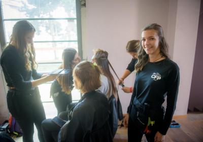 Di seguito una selezione di foto dei backstage e dell’evento che vedono all’opera le nostre Allieve di 3^ e 4^ Acconciatura/Estetica per realizzare trucco e acconciatura delle modelle impegnate in passerella: