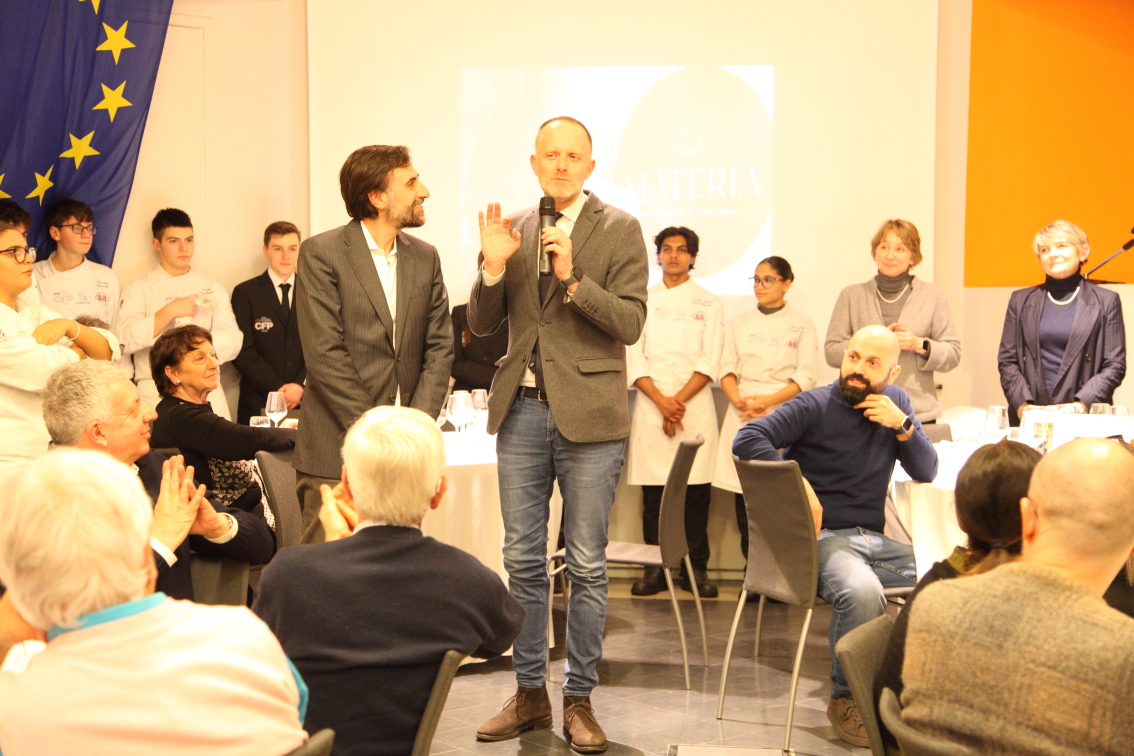 Photo Gallery Home Photo Gallery MATERIA - Cena Stellata al CFP MATERIA - Cena Stellata al CFP Cena stellata in data 24 febbraio 2025 presso il CFP di Como.Menù di alto livello con lo chef del ristorante Materia (Cernobbio). Da un sogno condiviso da quattro ragazzi under 30, nasce il ristorante nel 2016 e dopo 8 anni, nonostante il cambio di sede, il team alla guida del ristorante rimane lo stesso con lo chef Davide Caranchini, la responsabile di sala Ambra Sberna e il sommelier Luca Sberna. Il ristorante propone piatti che non nascono per caso, ma sono frutto di un lungo lavoro investigativo. Tutto parte dalla scelta delle migliori materie prime disponibili, seguendo i ritmi naturali imposti dalle stagioni, per poi passare attraverso un percorso di ricerca e sviluppo, in cui lo studio e la sperimentazione risultano essere le fondamenta nella proposta gastronomica del ristorante. Numerosi gli ospiti alla cena che ha contato più di 80 persone, tra le quali le autorità sul territorio della Provincia di Como, oltre al Sindaco Alessandro Rapinese. Torna indietro Condividi Su E-mailFacebookTwitterLinkedIn Gallery