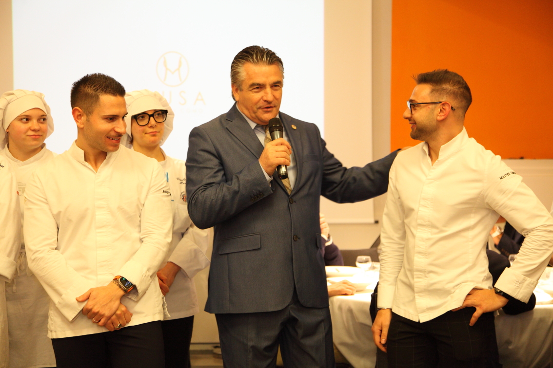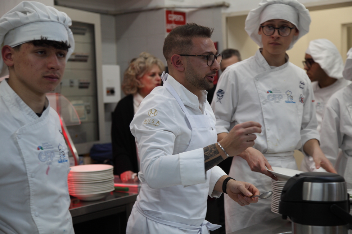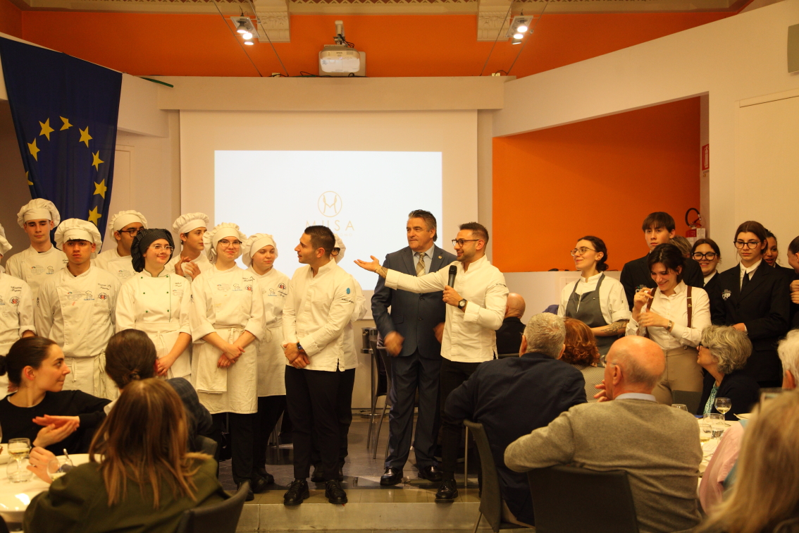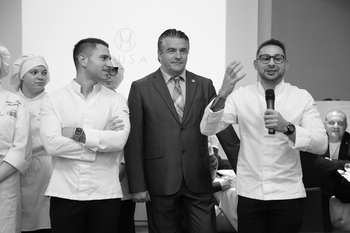 Photo Gallery Home Photo Gallery MUSA - SERATA GOURMET "4 PASSI A SALA COMACINA" MUSA - SERATA GOURMET "4 PASSI A SALA COMACINA" Musa è il Brand che ha debuttato a giugno 2022, pensato per creare un’esperienza esclusiva sulle rive del Lago di Como (Sala Comacina).Musa è gestito da Robert Moretti e Matteo Corridori, due acclamati Executive Chef entrambi nati e cresciuti sul lago di Como, sotto la supervisione e la guida della famiglia Gray, imprenditori da 40 anni nel settore del turismo. Dopo quasi 10 anni all’estero, Moretti e Corridori hanno deciso di portare passione, conoscenze ed esperienza acquisite nei più prestigiosi hotel e ristoranti stellati del mondo nella cornice del Lago di Como. I prodotti locali vengono valorizzati per esaltare il territorio e lavorati con tecniche internazionali acquisite nel corso delle precedenti esperienze sia all’estero sia sul lago di Como. La cucina, dallo stile semplice, pulito ed elegante prevede piatti dove la stagionalità è protagonista indiscussa.Alla base del ristorante ROTEO c’è l’amicizia tra Robert e Matteo, che condividono la stessa passione per l’hospitality, il settore travel e la curiosità di non smettere mai di imparare.Roteo è proprio frutto del legame tra i due nomi ma sottolinea anche l’idea di movimento, concetto che è stato fondamentale durante la ricerca di stimoli e nuove esperienze.In data 25 marzo 2025 il CFP di Como ha ospitato gli Chef Robert e Matteo, che con lo staff di sala di Musa e gli allievi delle prime di sala e seconde di cucina (2A) hanno realizzato una cena per più di 70 ospiti con un menu dal tema "4 passi a Sala Comacina", un connubio di note orientali e sapori del lago di Como. Questa esperienza è importante per gli allievi che apprendono nuove e innovative tecniche in cucina e di servizio che accrescono il loro bagaglio professionale. Qui di seguito la Gallery dell'evento e le foto più belle della cena Torna indietro Condividi Su E-mailFacebookTwitterLinkedIn Gallery