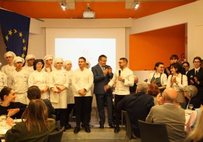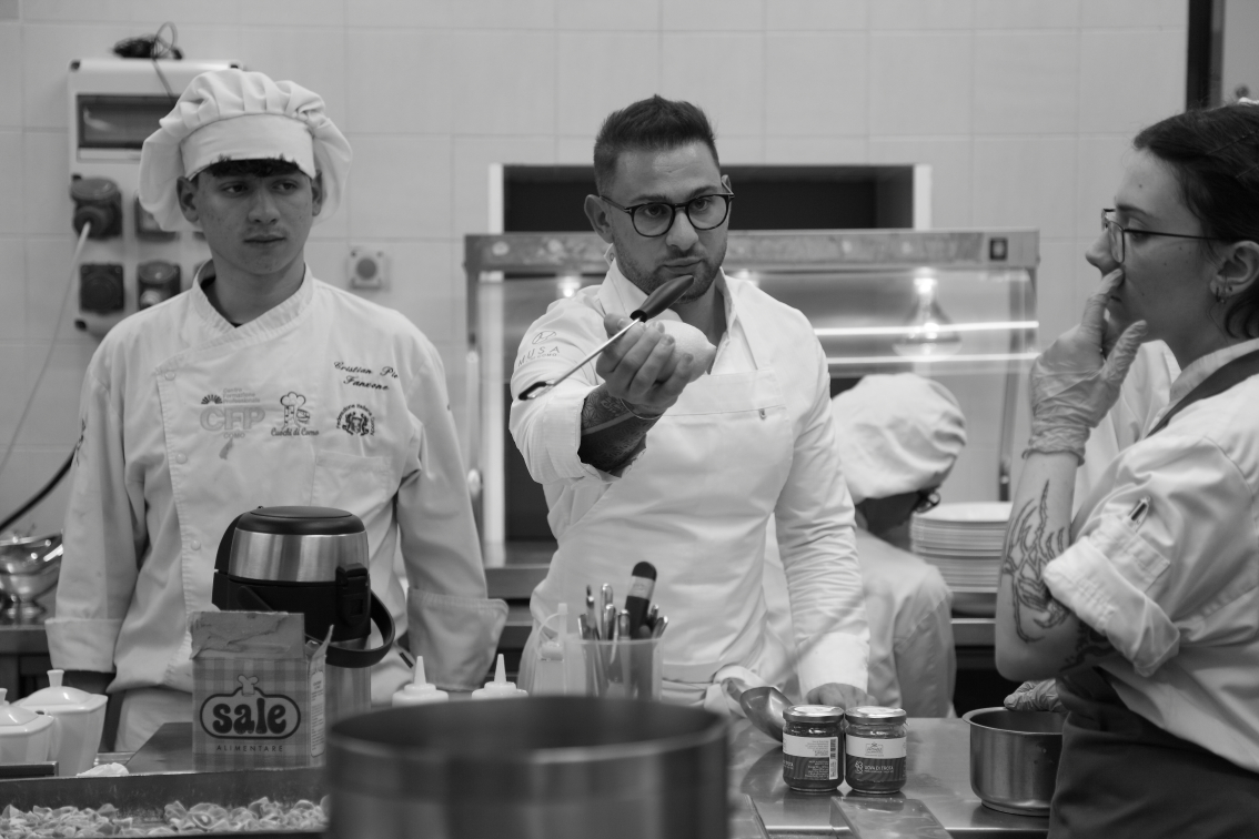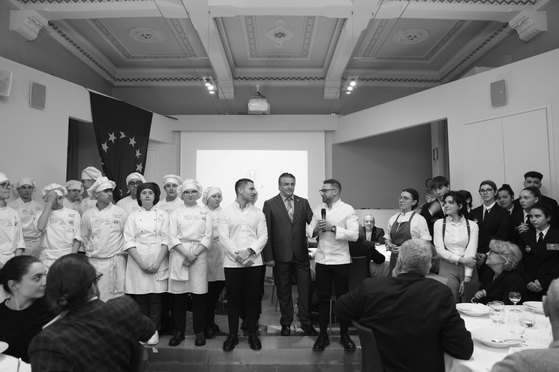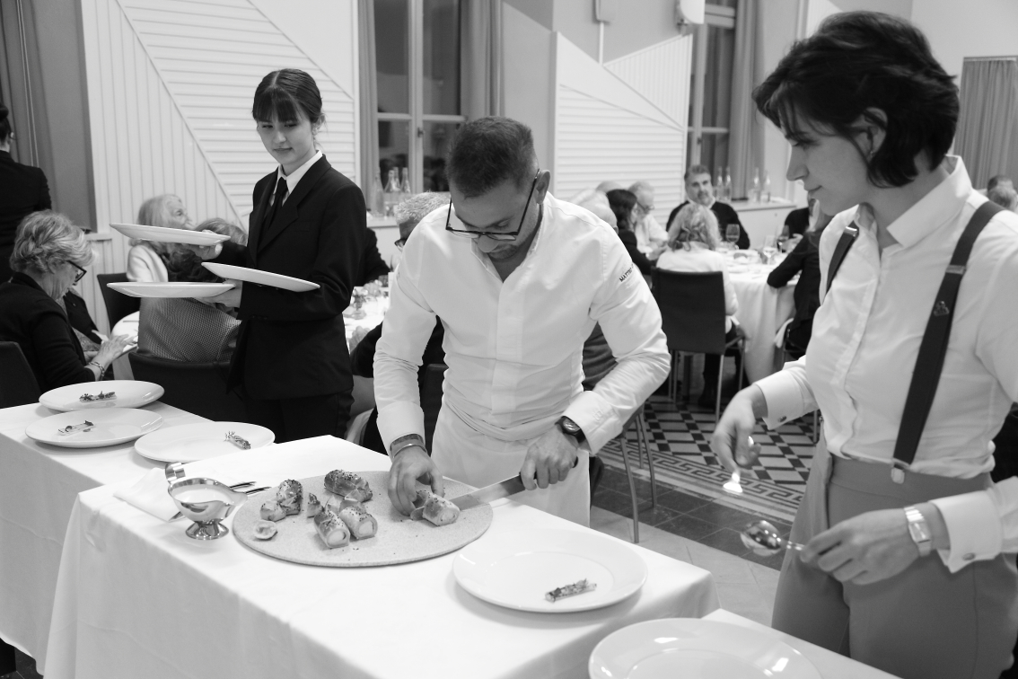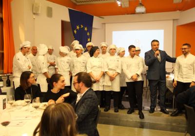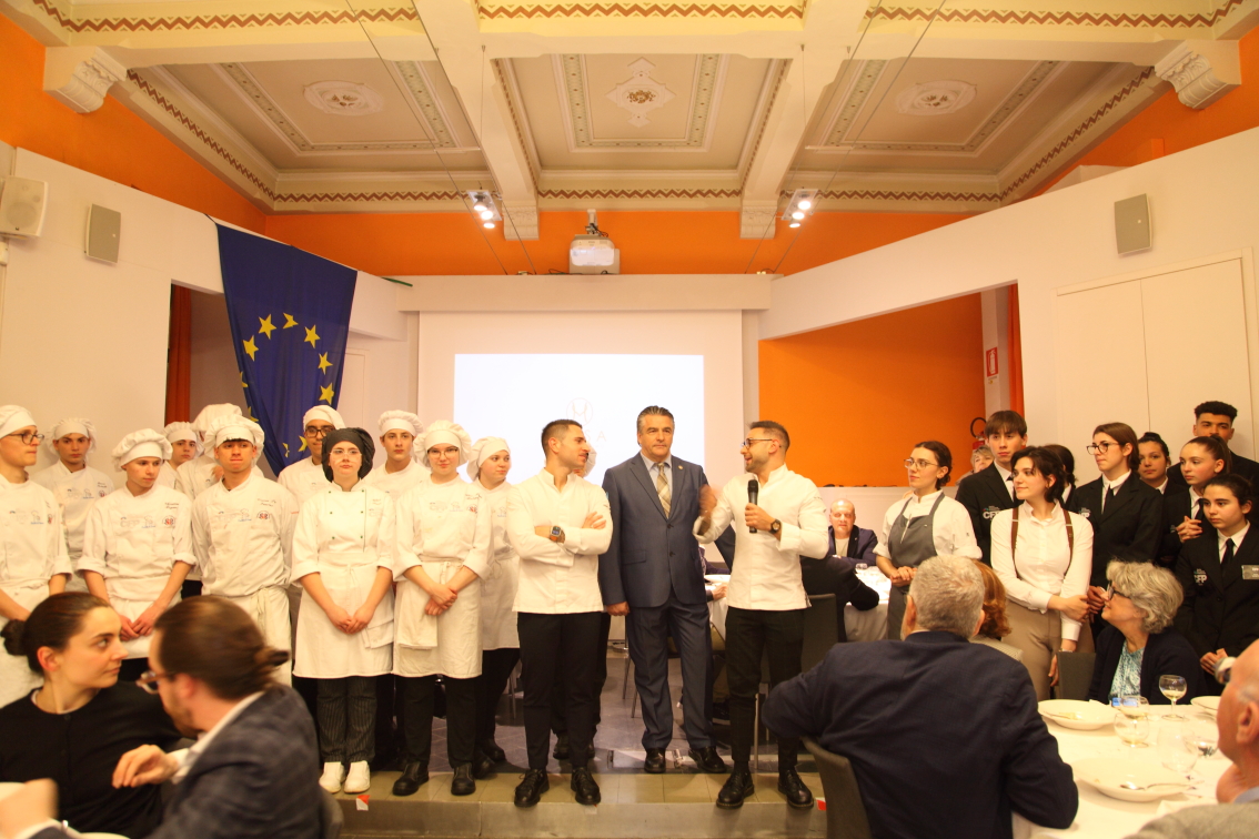 Photo Gallery Home Photo Gallery MUSA - SERATA GOURMET "4 PASSI A SALA COMACINA" MUSA - SERATA GOURMET "4 PASSI A SALA COMACINA" Musa è il Brand che ha debuttato a giugno 2022, pensato per creare un’esperienza esclusiva sulle rive del Lago di Como (Sala Comacina).Musa è gestito da Robert Moretti e Matteo Corridori, due acclamati Executive Chef entrambi nati e cresciuti sul lago di Como, sotto la supervisione e la guida della famiglia Gray, imprenditori da 40 anni nel settore del turismo. Dopo quasi 10 anni all’estero, Moretti e Corridori hanno deciso di portare passione, conoscenze ed esperienza acquisite nei più prestigiosi hotel e ristoranti stellati del mondo nella cornice del Lago di Como. I prodotti locali vengono valorizzati per esaltare il territorio e lavorati con tecniche internazionali acquisite nel corso delle precedenti esperienze sia all’estero sia sul lago di Como. La cucina, dallo stile semplice, pulito ed elegante prevede piatti dove la stagionalità è protagonista indiscussa.Alla base del ristorante ROTEO c’è l’amicizia tra Robert e Matteo, che condividono la stessa passione per l’hospitality, il settore travel e la curiosità di non smettere mai di imparare.Roteo è proprio frutto del legame tra i due nomi ma sottolinea anche l’idea di movimento, concetto che è stato fondamentale durante la ricerca di stimoli e nuove esperienze.In data 25 marzo 2025 il CFP di Como ha ospitato gli Chef Robert e Matteo, che con lo staff di sala di Musa e gli allievi delle prime di sala e seconde di cucina (2A) hanno realizzato una cena per più di 70 ospiti con un menu dal tema "4 passi a Sala Comacina", un connubio di note orientali e sapori del lago di Como. Questa esperienza è importante per gli allievi che apprendono nuove e innovative tecniche in cucina e di servizio che accrescono il loro bagaglio professionale. Qui di seguito la Gallery dell'evento e le foto più belle della cena Torna indietro Condividi Su E-mailFacebookTwitterLinkedIn Gallery