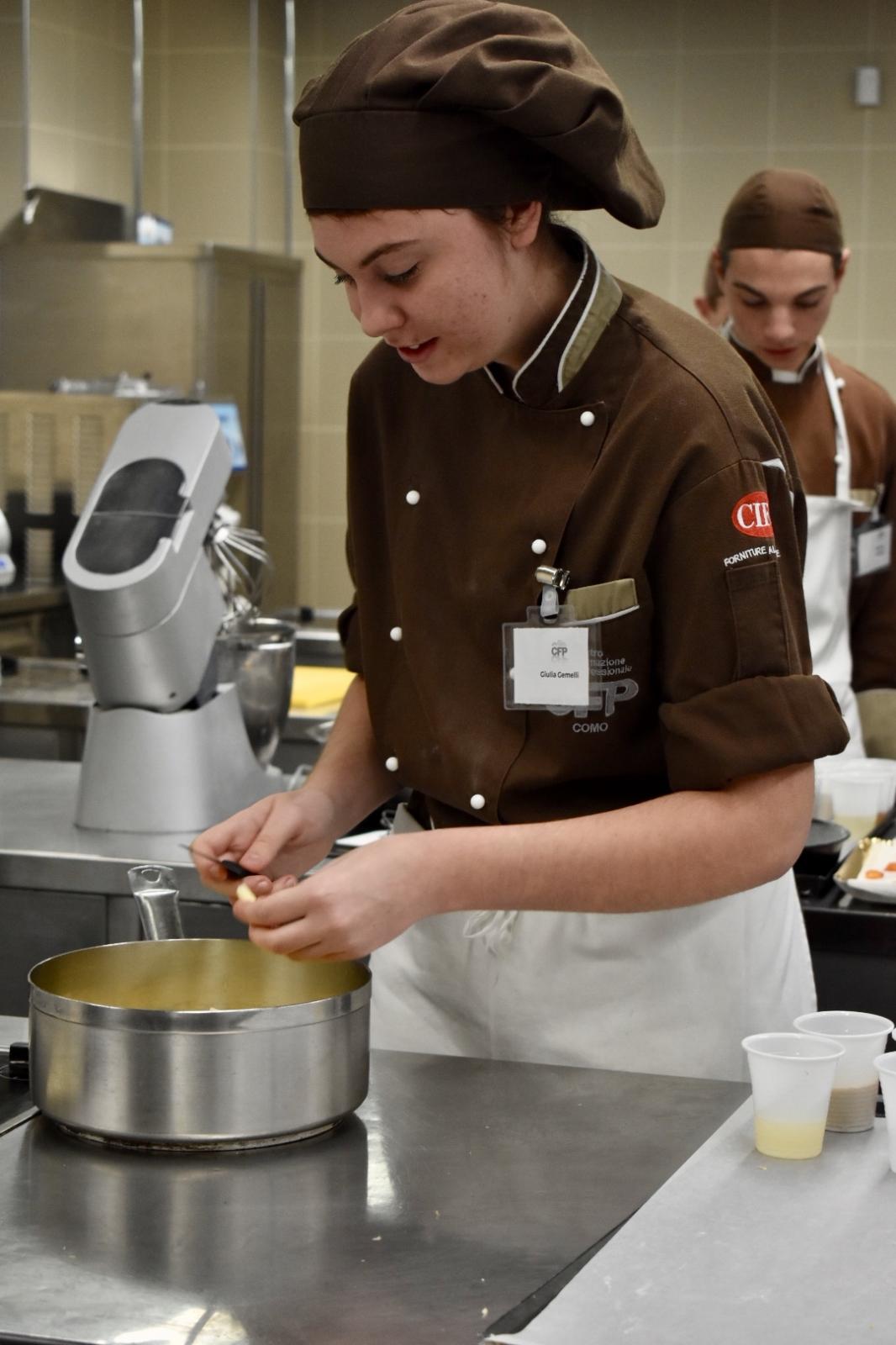 Photo Gallery Home Photo Gallery PREPARIAMO LA MERENDA: Laboratorio di Pasticceria PREPARIAMO LA MERENDA: Laboratorio di Pasticceria Nell’ambito della Settimana dell'infanzia e dell'adolescenza 2018, il Comune di Como ha proposto nel pomeriggio del 21 novembre 2018 presso il CFP l’evento “Prepariamo la merenda”: laboratorio di pasticceria per la preparazione divertente di una merenda sana, con breve lezione teorica, attività di laboratorio e degustazione a cura della pasticcera Linda Chirico, rivolto a bambini dai 10 ai 12 anni accompagnati da un genitore. Il laboratorio è stato svolto dagli allievi di 4^ pasticceria insieme alla loro docente e ha riscosso un grande successo sia tra i bambini che tra i genitori. Qui di seguito la Gallery dell'Evento Torna indietro Condividi Su E-mailFacebookTwitterLinkedIn Gallery