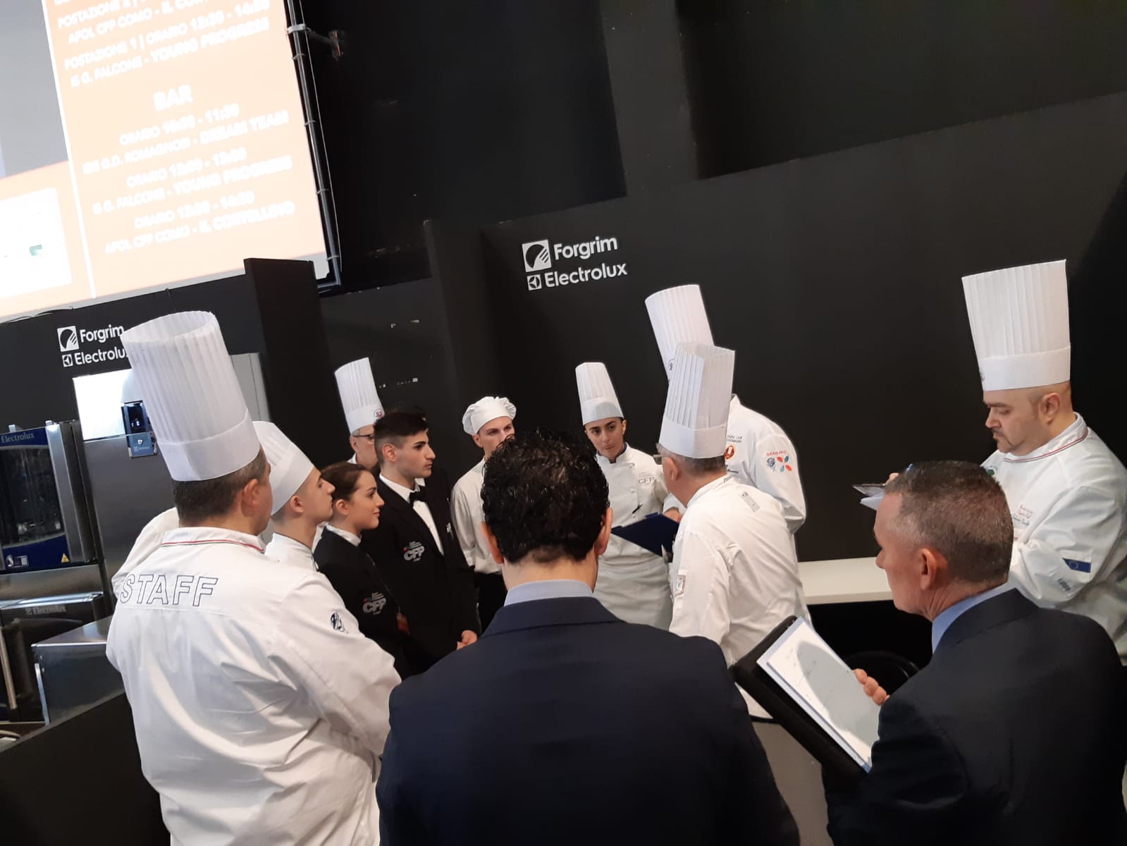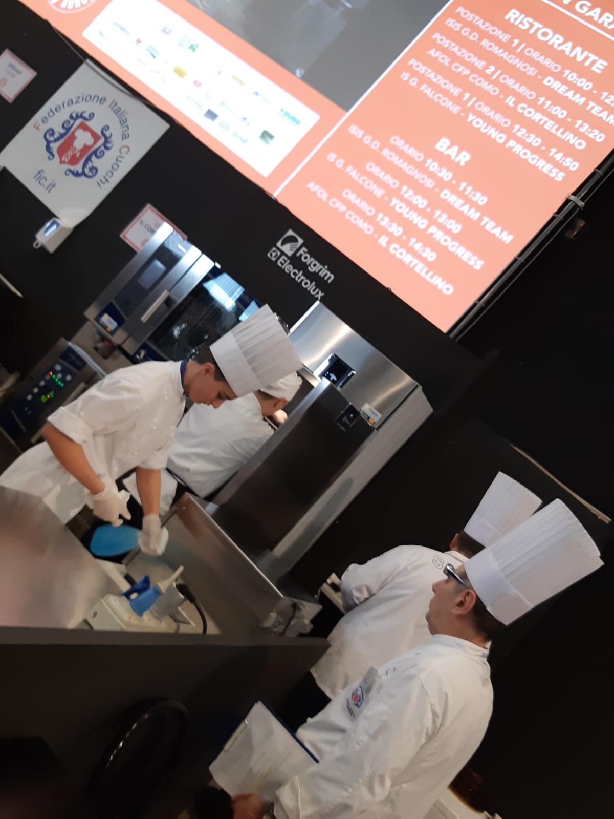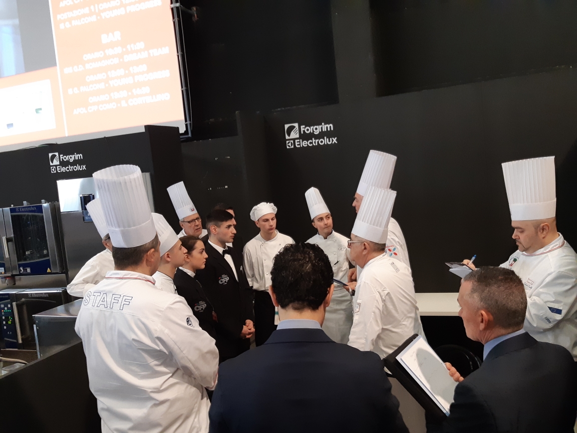 Photo Gallery Home Photo Gallery RISTOREXPO 2019 RISTOREXPO 2019 Il CFP di Como ha partecipato al concorso Young Cup, promosso dall’Associazione Cuochi di Como nell’ambito della manifestazione Ristorexpo, con il team “Il Cortellino”, composto dagli allievi Scuderi Laura, Accursio Andrea, Bona Alex (cucina), Tortorici Giorgia, Di Amico Giando Daniele, Rizzo Pasquale, Del Greco Emilia, Adam Cristina Paula (sala e bar) delle classi 3^ e 4^, coordinati dai docenti Luca Molteni (CHEF di cucina), Roberto Piatti e Loris Mondini (Maitre di Sala Bar e Ristorante). Gli allievi della contest di sopra hanno riportato la vittoria del secondo premio assoluto (medaglia d’argento). La classe 4^ pasticceria con il docente Loris Mondini ha preparato il progetto per la parte del concorso “Nuova Impresa”, conseguendo il primo premio assoluto (medaglia d’oro). La giuria ha espresso vivi Complimenti ai ragazzi e ai docenti. Qui di seguito alcuni scatti della manifestazione Torna indietro Condividi Su E-mailFacebookTwitterLinkedIn Gallery