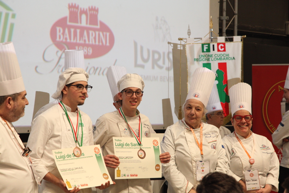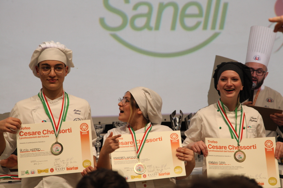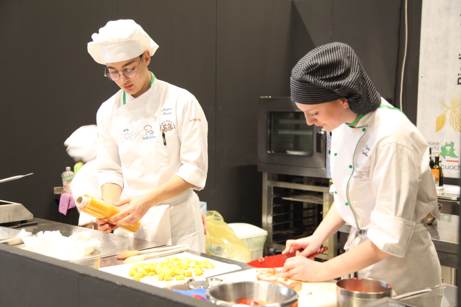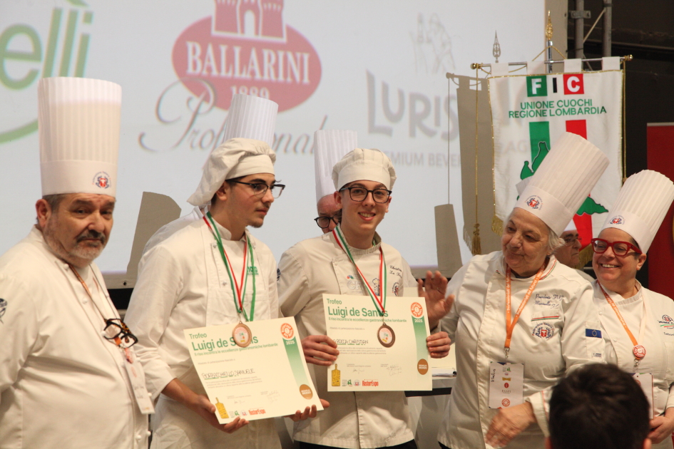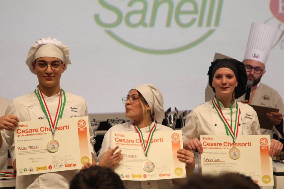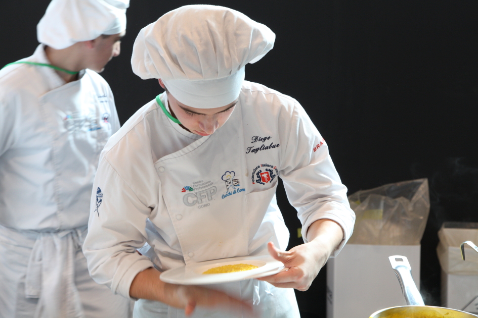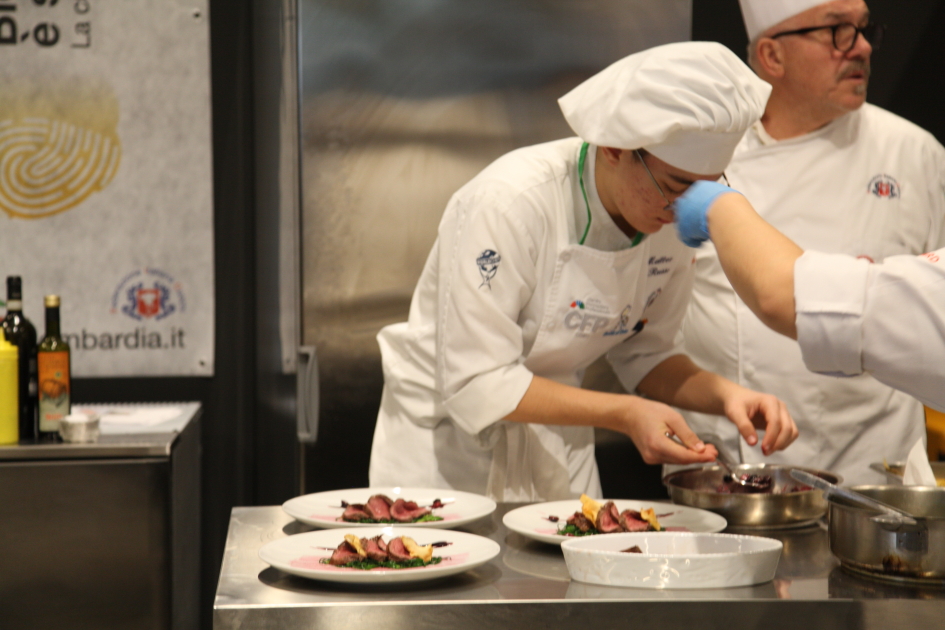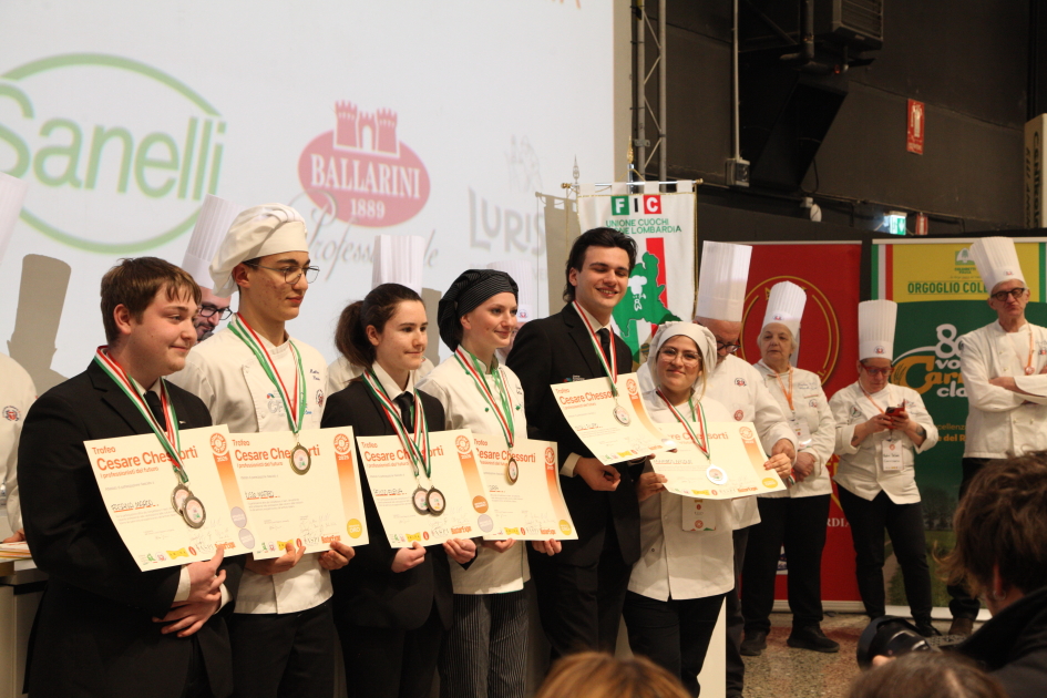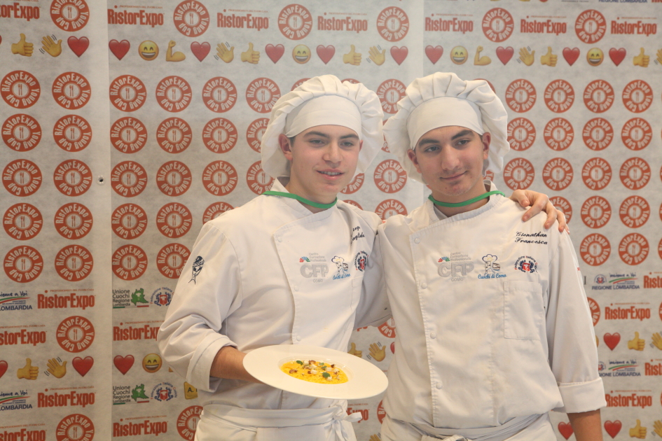 Photo Gallery Home Photo Gallery RISTOREXPO 2025 RISTOREXPO 2025 Il CFP di Como ha partecipato all'appuntamento annuale con Lariofiere al Salone di RistorExpo. Quest'anno il tema del settore della ristorazione è stato "Ripartiamo dagli Odori".Le classi quarte hanno partecipato alla conferenza del giorno 5 marzo tenuta dallo Chef bistellato Davide Oldani del D'O e del Ristorante OLMO di Cornaredo (MI), che ha parlato ai giovani della professione del cuoco e del cameriere facendoli avvicinare con interesse e coinvolgimento al lavoro ed evidenziando come la passione porti a gradi traguardi. Presente alla conferenza anche lo chef stellato Mauro Elli del Cantuccio di Albavilla (CO).Per quanto riguarda le competizioni, gli allievi del CFP hanno vinto l'Oro assoluto per la cucina nel concorso nazionale "Cesare Chessorti": la cucina del CFP è stata riconosciuta la migliore tra venti scuole italiane. Oltre al riconoscimento nel concorso a squadre, tre oro per i risotti, argento per la sala e bronzo per il cocktail nei concorsi di giornata. Grande e meritata soddisfazione per l'edizione 2025 di Ristorexpo.Qui di seguito la GALLERY dell'evento e le foto più rappresentative della premiazione. Torna indietro Condividi Su E-mailFacebookTwitterLinkedIn Gallery