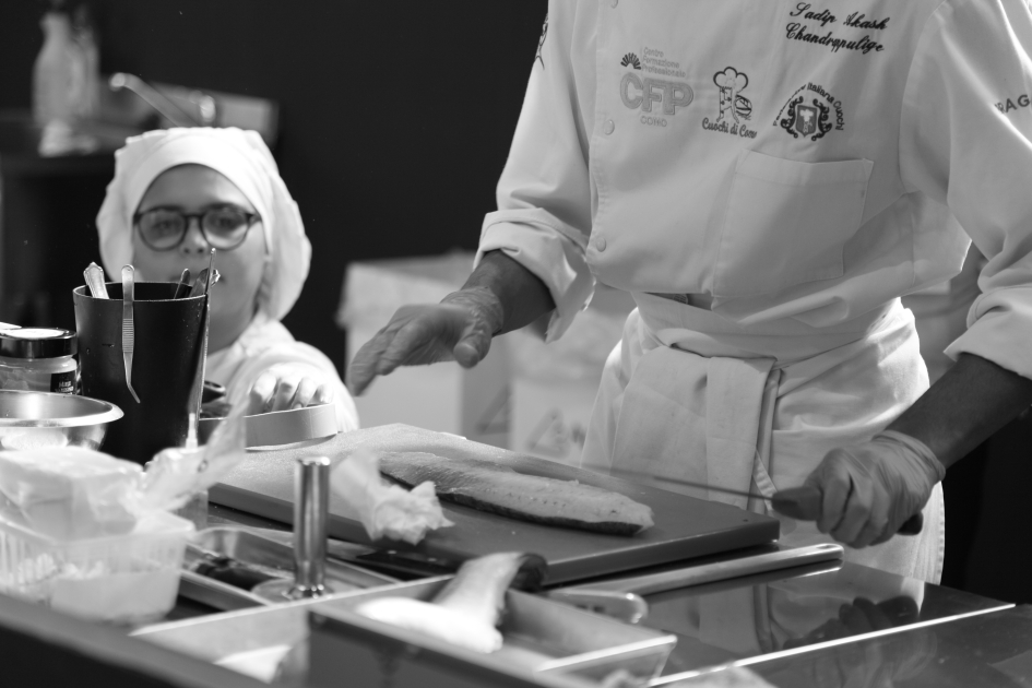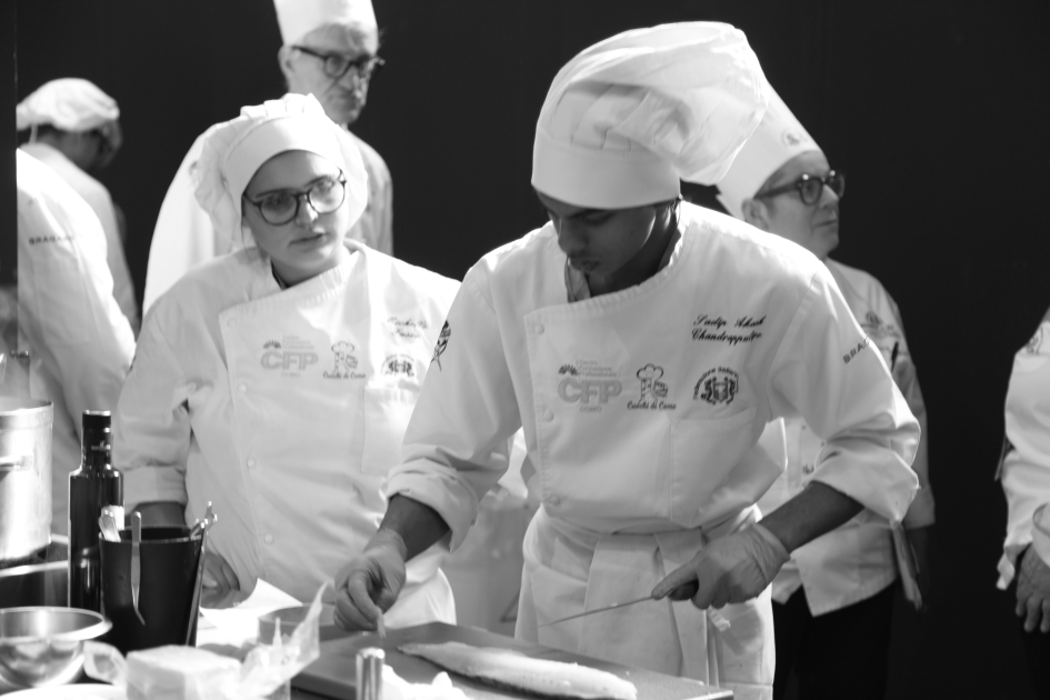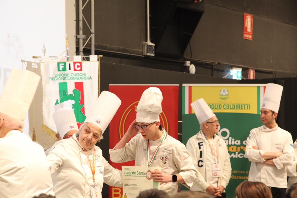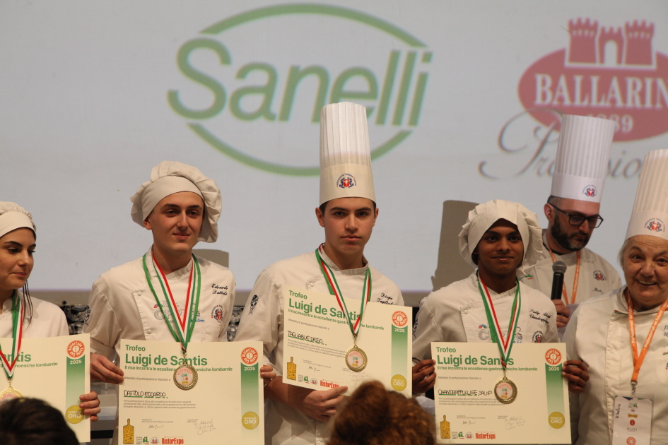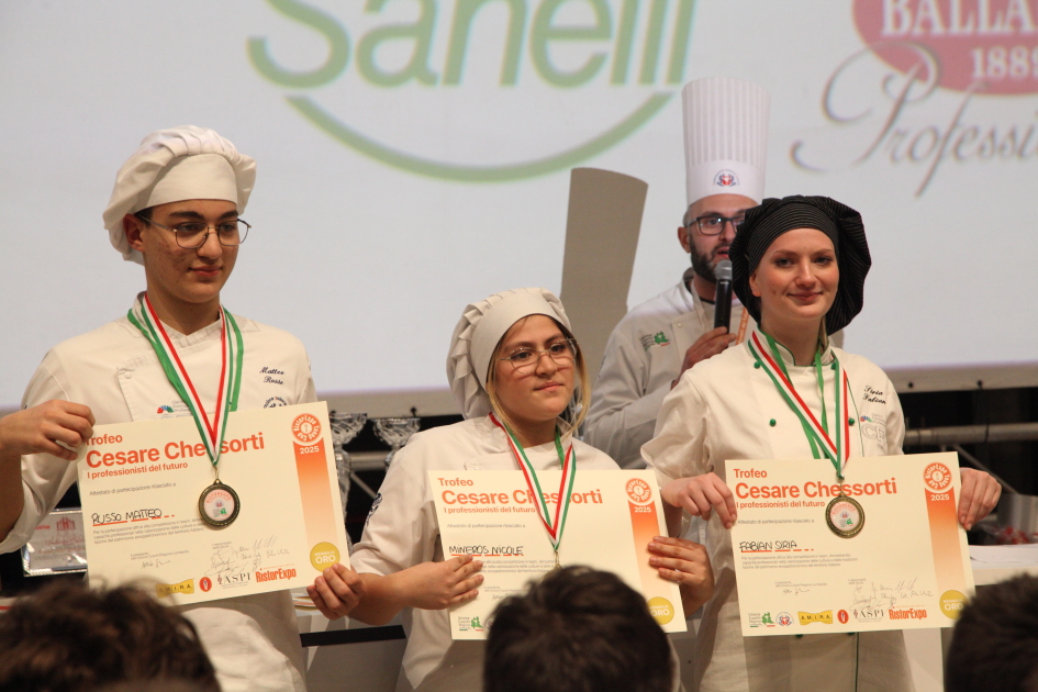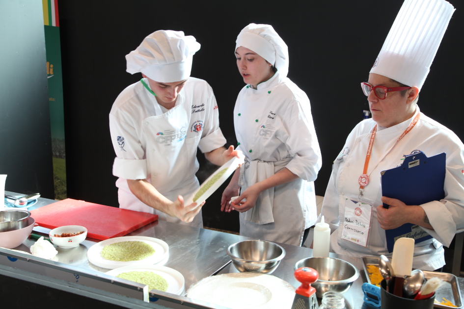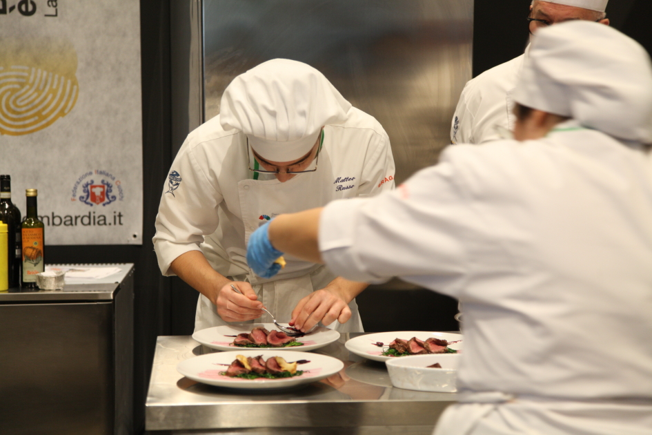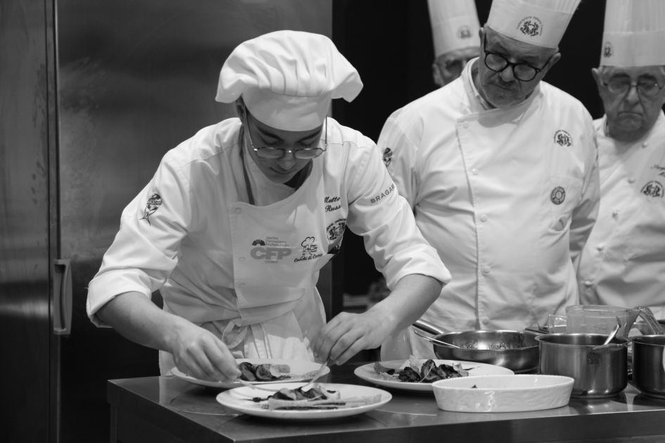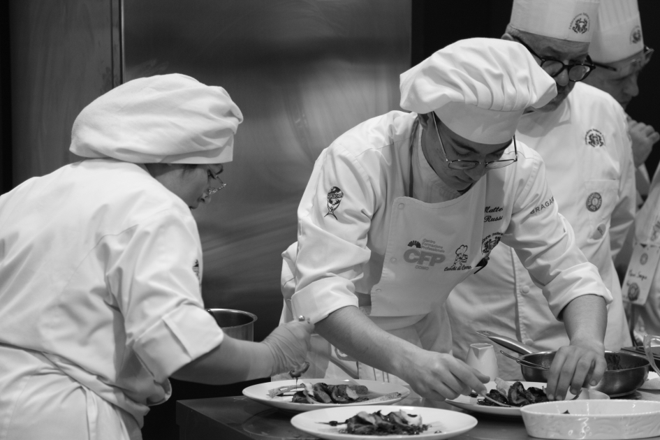 Photo Gallery Home Photo Gallery RISTOREXPO 2025 RISTOREXPO 2025 Il CFP di Como ha partecipato all'appuntamento annuale con Lariofiere al Salone di RistorExpo. Quest'anno il tema del settore della ristorazione è stato "Ripartiamo dagli Odori".Le classi quarte hanno partecipato alla conferenza del giorno 5 marzo tenuta dallo Chef bistellato Davide Oldani del D'O e del Ristorante OLMO di Cornaredo (MI), che ha parlato ai giovani della professione del cuoco e del cameriere facendoli avvicinare con interesse e coinvolgimento al lavoro ed evidenziando come la passione porti a gradi traguardi. Presente alla conferenza anche lo chef stellato Mauro Elli del Cantuccio di Albavilla (CO).Per quanto riguarda le competizioni, gli allievi del CFP hanno vinto l'Oro assoluto per la cucina nel concorso nazionale "Cesare Chessorti": la cucina del CFP è stata riconosciuta la migliore tra venti scuole italiane. Oltre al riconoscimento nel concorso a squadre, tre oro per i risotti, argento per la sala e bronzo per il cocktail nei concorsi di giornata. Grande e meritata soddisfazione per l'edizione 2025 di Ristorexpo.Qui di seguito la GALLERY dell'evento e le foto più rappresentative della premiazione. Torna indietro Condividi Su E-mailFacebookTwitterLinkedIn Gallery