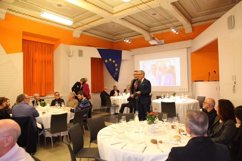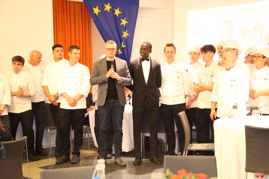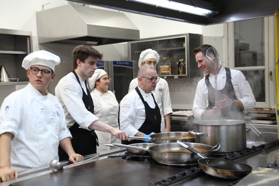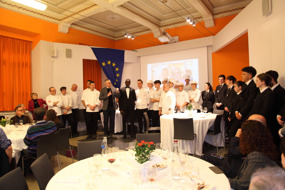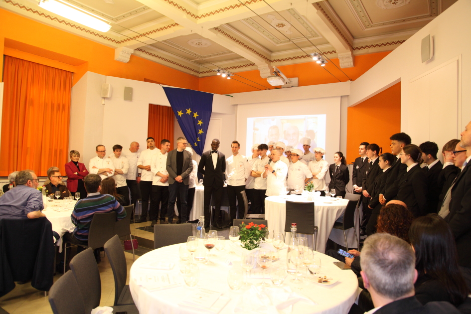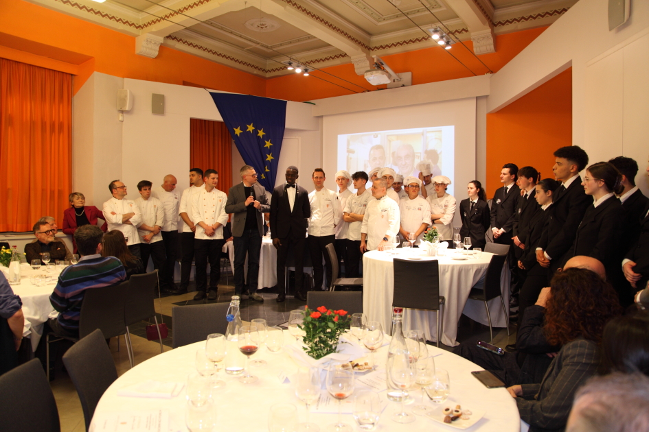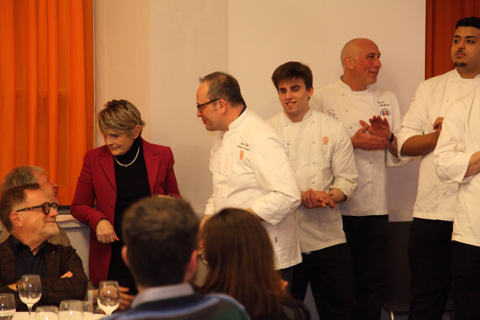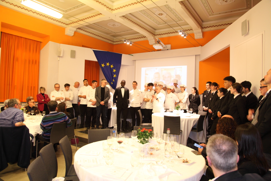 Photo Gallery Home Photo Gallery A TAVOLA CON MARCHESI - III EDIZIONE A TAVOLA CON MARCHESI - III EDIZIONE Serata d’eccezione al Centro di Formazione Professionale della Provincia di Como. Lo Chef del Grand Hotel Tremezzo Osvaldo Presazzi e il suo staff di sala e cucina, con il supporto degli studenti del IV ANNO del settore alberghiero del CFP, hanno preparato i piatti ideati dal grande Maestro della cucina italiana “Gualtiero Marchesi”.La serata ha visto la partecipazione del tesoriere e rappresentante della Fondazione Enrico Dandolo, che ha coordinato l’evento in nome della Fondazione Gualtiero Marchesi, nata con l’obiettivo di divulgare e promuovere le idee e le scoperte gastronomiche del suo mentore.La cena è realizzata grazie alla disponibilità della proprietà del Grand Hotel Tremezzo, con il suo celebre ristorante La Terrazza Gualtiero Marchesi, unico ristorante al mondo che oggi può vantarsi di proseguire l’impareggiabile eredità gastronomica del grande Maestro, riproponendone i piatti iconici nel rispetto dello stile e della codificazione.Circa settantina gli ospiti presenti. Le prenotazioni si sono esaurite nel giro di qualche ora, vista l’eccezionalità della serata. Qui di seguito la gallery dell'evento Torna indietro Condividi Su E-mailFacebookTwitterLinkedIn Gallery